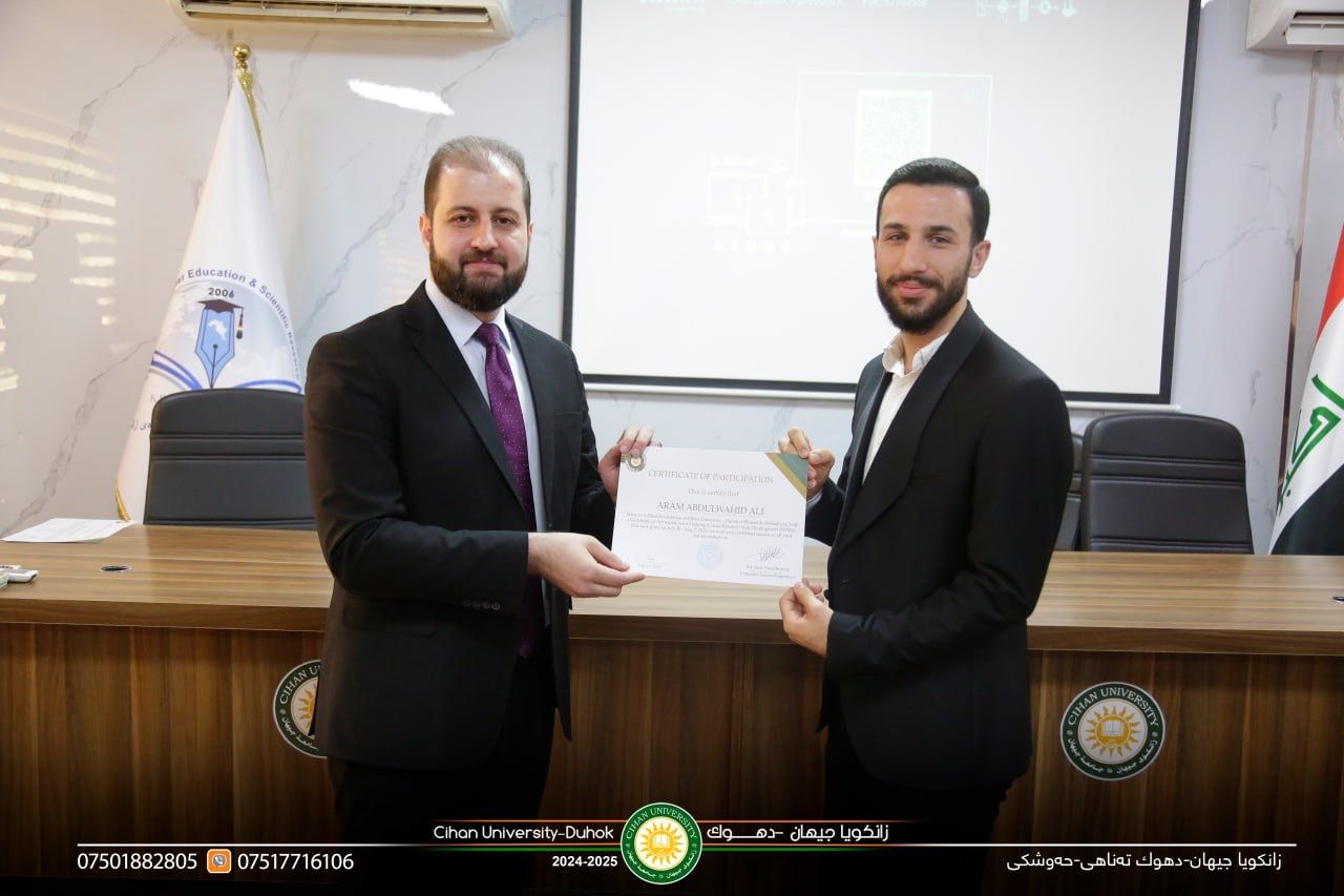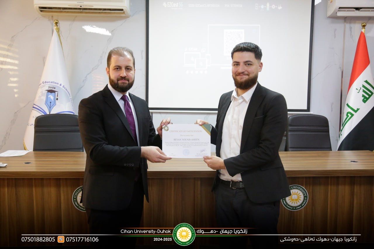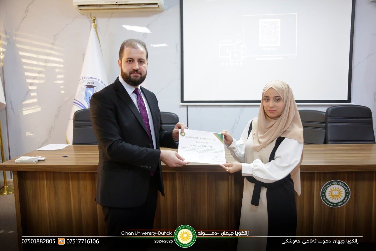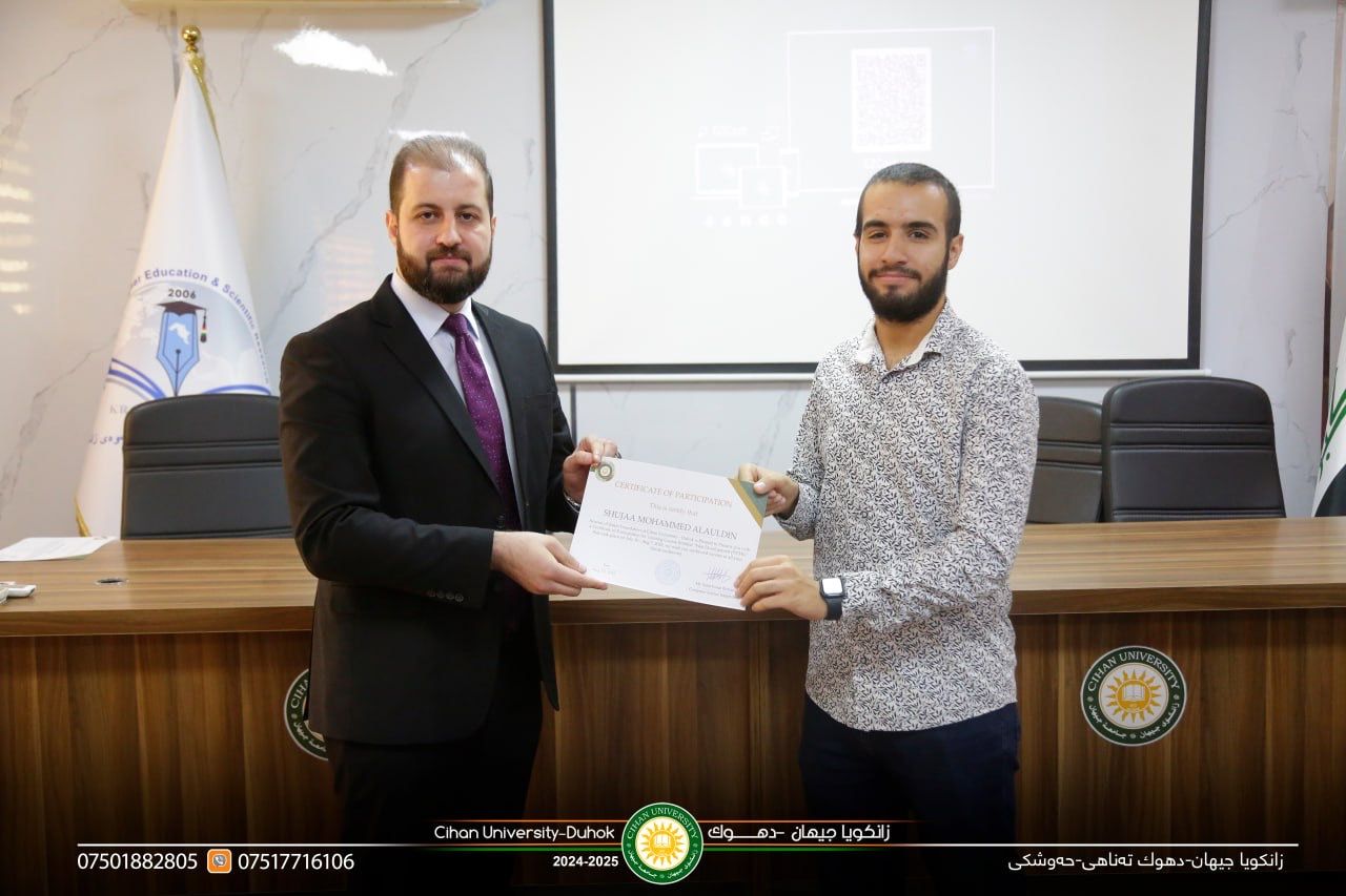 Today On Aug 18, 2025 and under the supervision of (Prof. Dr. Zeravan Abdulmuhsen Assad) President of Cihan University – Duhok, the Science of Zakat Foundation held a closing a Ceremony of Web Development Training Course conducted by (Mr. Salar Faisal Noori) Rapporteur of the Computer Science Department. During the ceremony the participants showcased the websites they had developed in various fields throughout the course. At the conclusion of the event, certificates of completion were awarded to all participants.