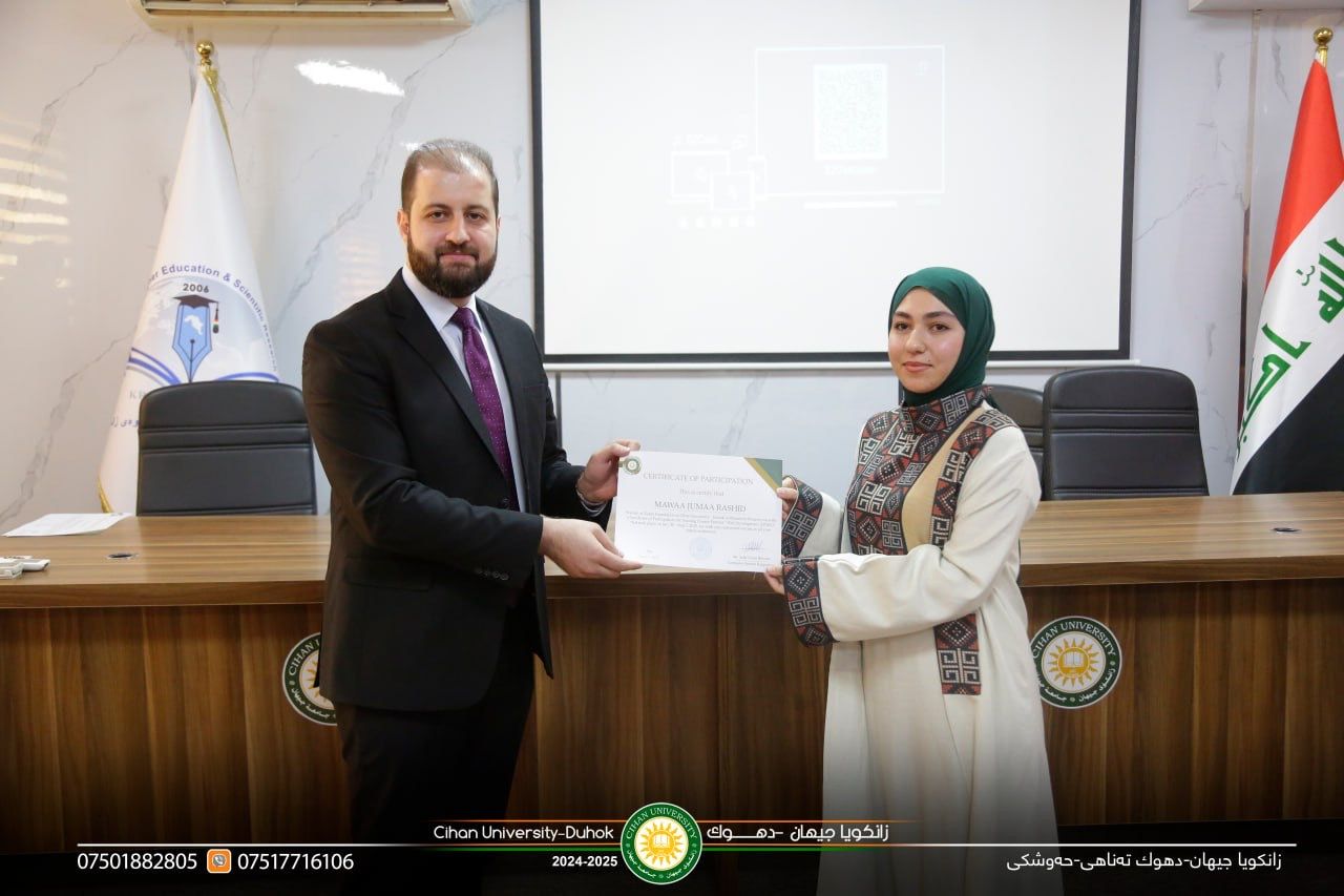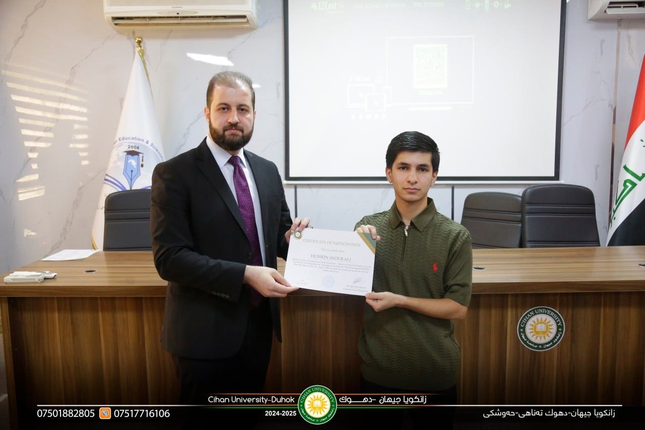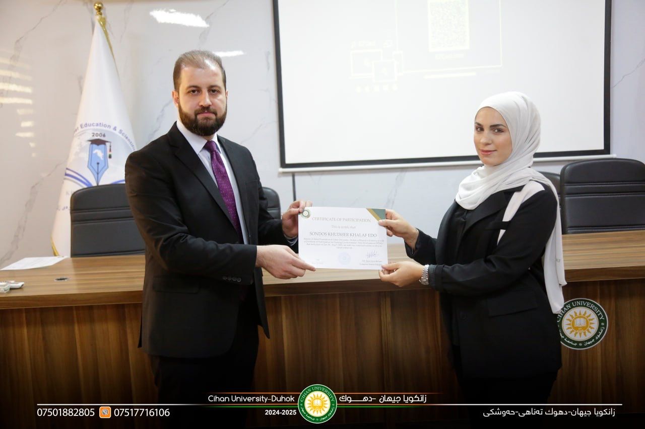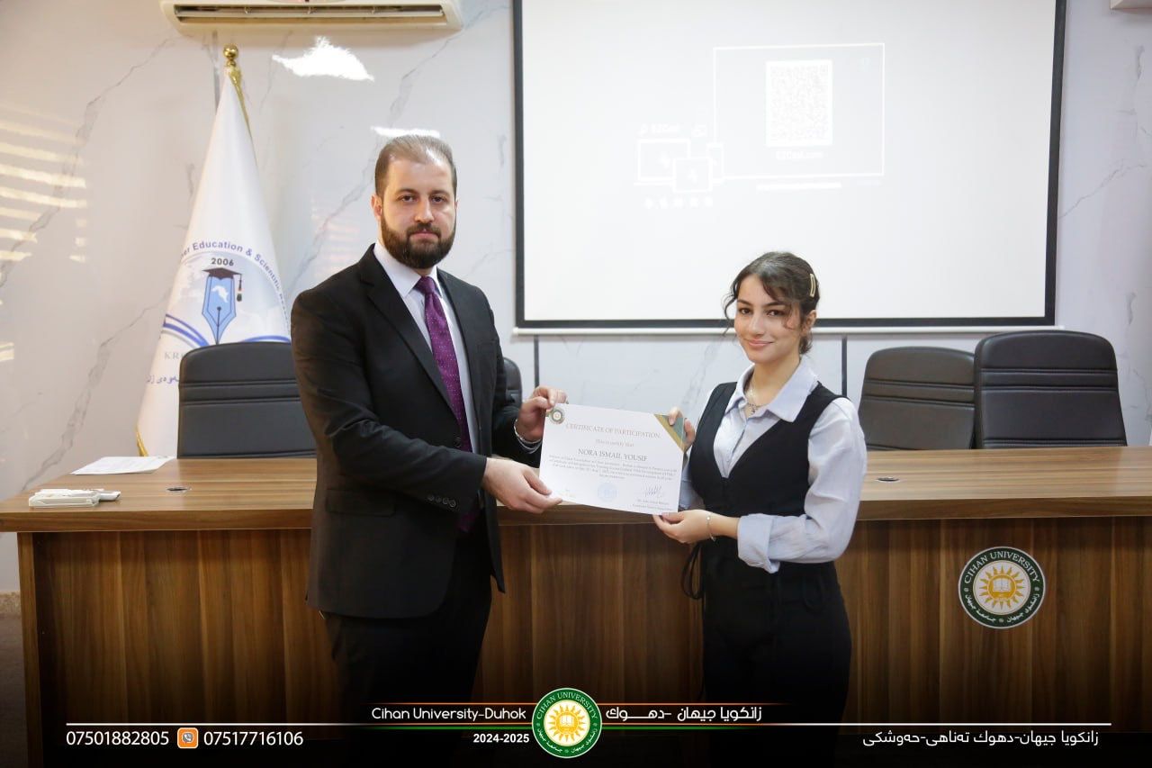 Today On Aug 18, 2025 and under the supervision of (Prof. Dr. Zeravan Abdulmuhsen Assad) President of Cihan University – Duhok, the Science of Zakat Foundation held a closing a Ceremony of Web Development Training Course conducted by (Mr. Salar Faisal Noori) Rapporteur of the Computer Science Department. During the ceremony the participants showcased the websites they had developed in various fields throughout the course. At the conclusion of the event, certificates of completion were awarded to all participants.
