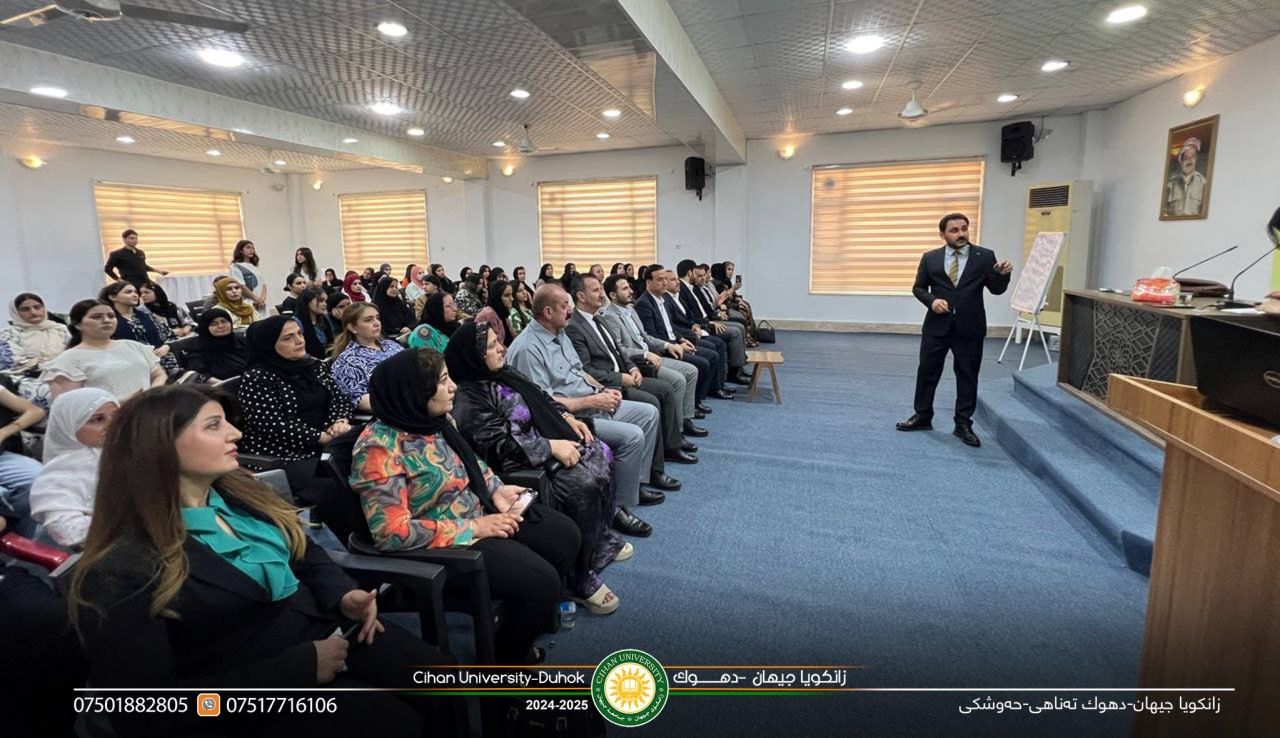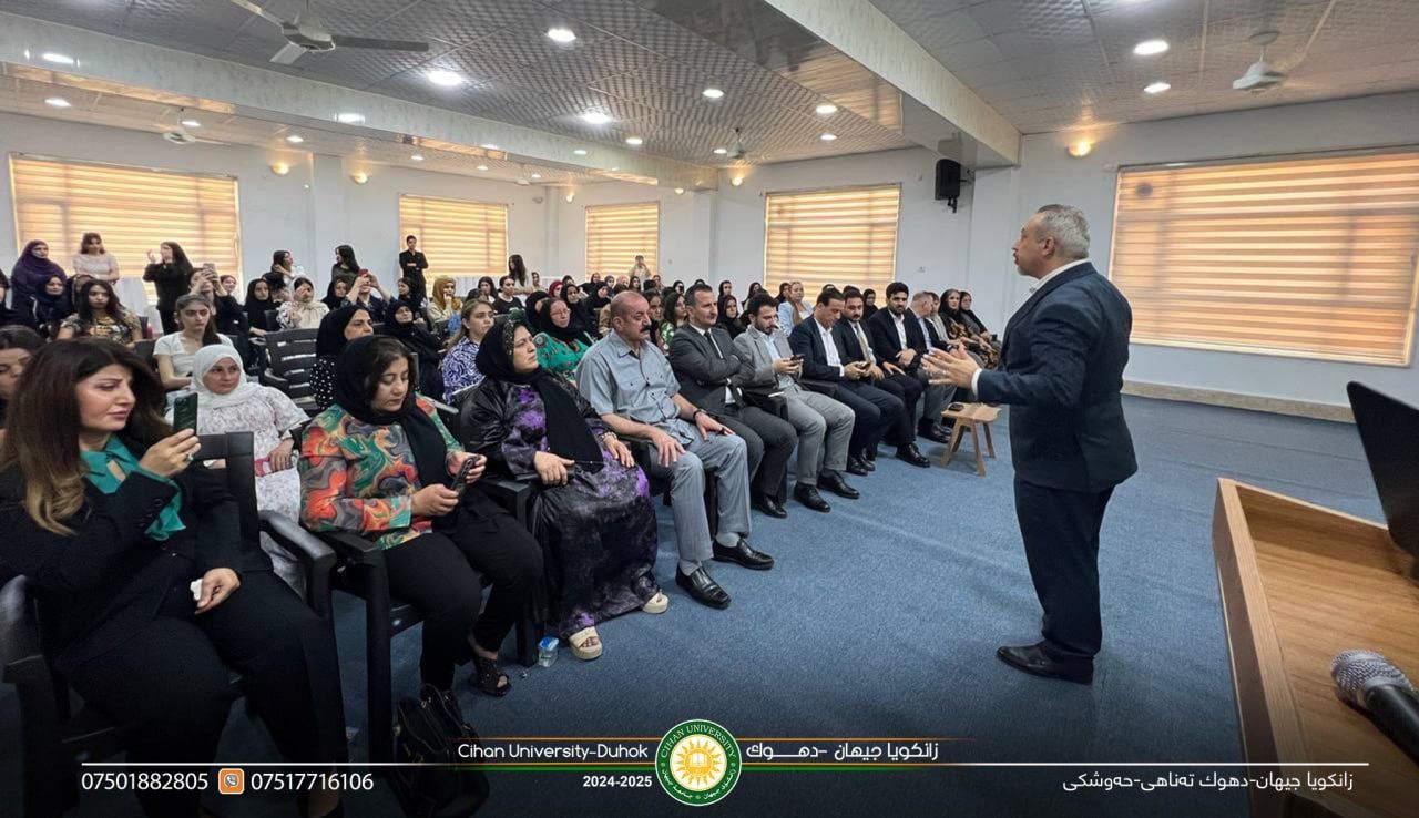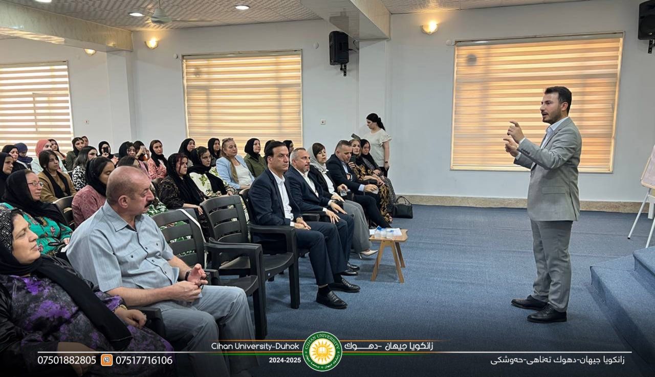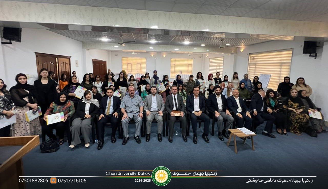 ل رێكه‌فتى (6/8/2025) ل دویف راسپاردێن به‌رێز (پ.د.زیرڤان عبدالمحسن أسعد) سه‌رۆكێ زانكویێ، سه‌باره‌ت ئه‌نجامدانا چالاكیێن ده‌زگایێ زه‌كاتا زانستى و خزمه‌تكرنا جڤاكى، خۆله‌كا گه‌شه‌پێدانا مرۆڤى ب هه‌ماهه‌نگى دگه‌ل ناڤه‌ندا ئافره‌تێن ئیدارا سه‌ربخۆ یا زاخۆ ب دۆماهی هات، ل دور (هۆشیاریا ده‌روونى، ساخله‌مى، بنه‌مایێن به‌خته‌وه‌ریا خێزانێ و جڤاكى، ژلایێ به‌رێزان: