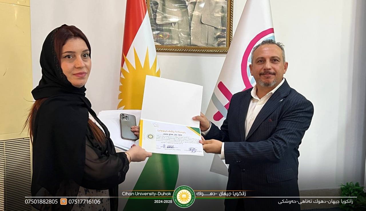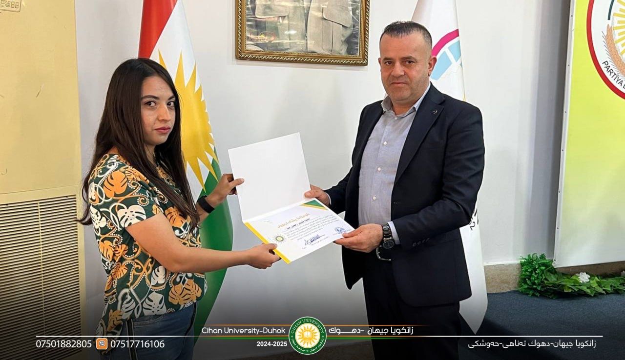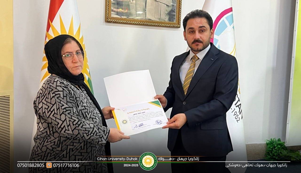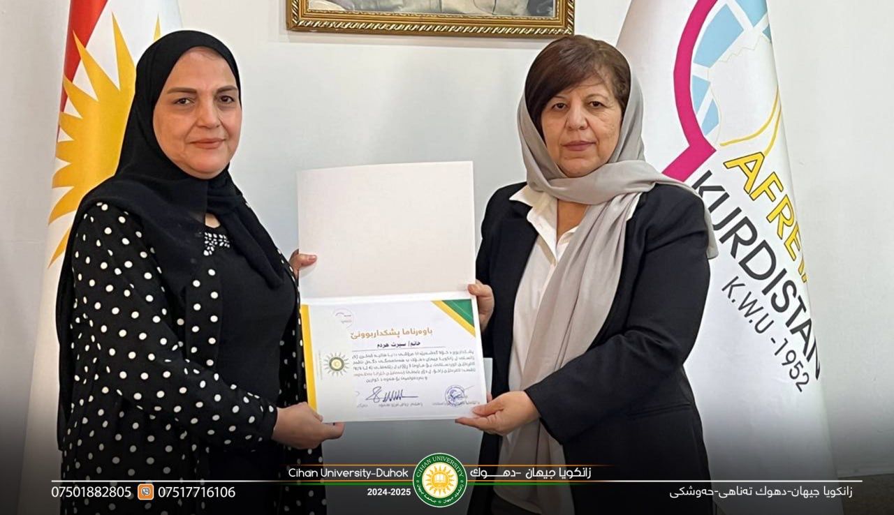 ل رێكه‌فتى (6/8/2025) ل دویف راسپاردێن به‌رێز (پ.د.زیرڤان عبدالمحسن أسعد) سه‌رۆكێ زانكویێ، سه‌باره‌ت ئه‌نجامدانا چالاكیێن ده‌زگایێ زه‌كاتا زانستى و خزمه‌تكرنا جڤاكى، خۆله‌كا گه‌شه‌پێدانا مرۆڤى ب هه‌ماهه‌نگى دگه‌ل ناڤه‌ندا ئافره‌تێن ئیدارا سه‌ربخۆ یا زاخۆ ب دۆماهی هات، ل دور (هۆشیاریا ده‌روونى، ساخله‌مى، بنه‌مایێن به‌خته‌وه‌ریا خێزانێ و جڤاكى، ژلایێ به‌رێزان: