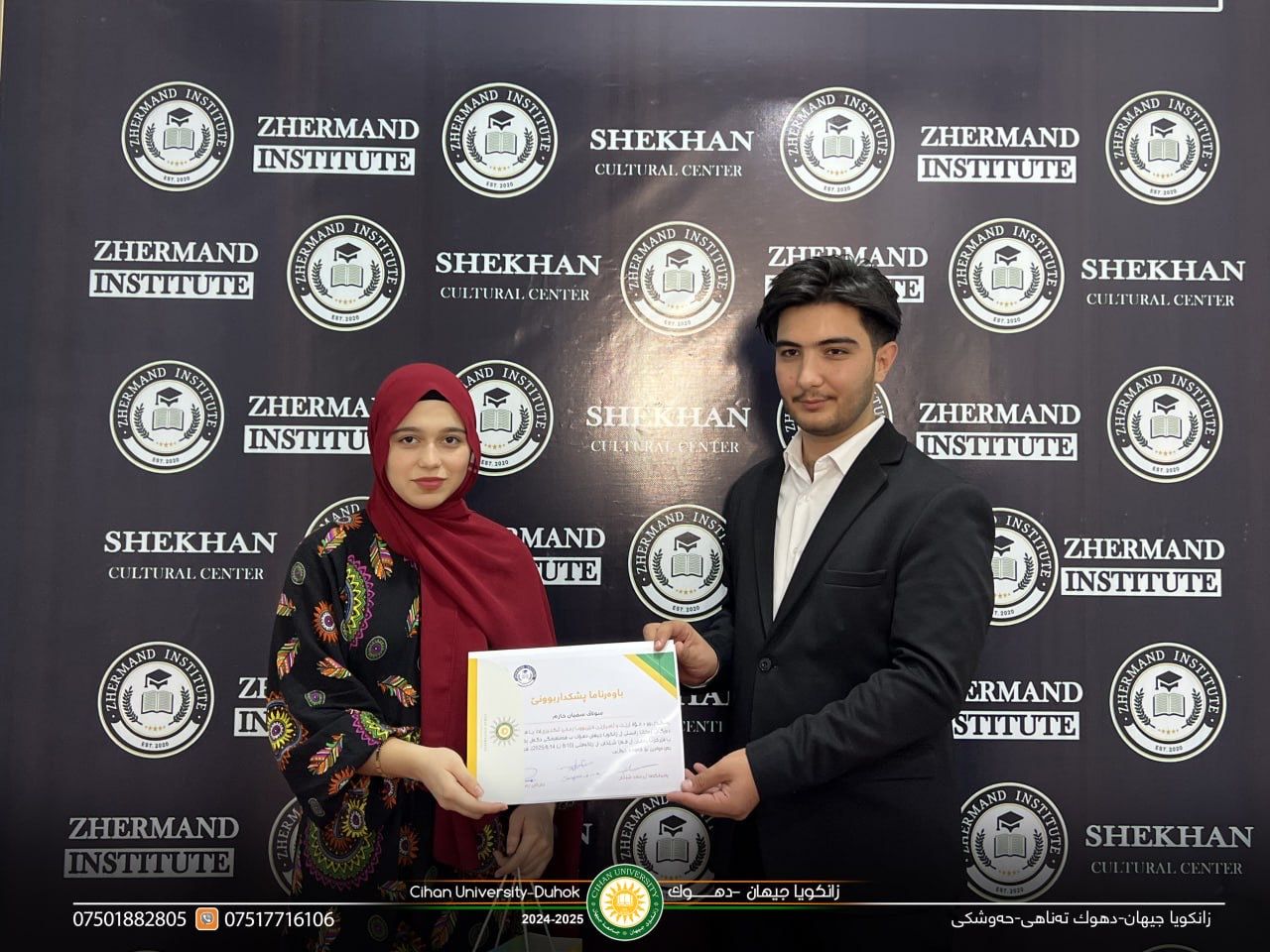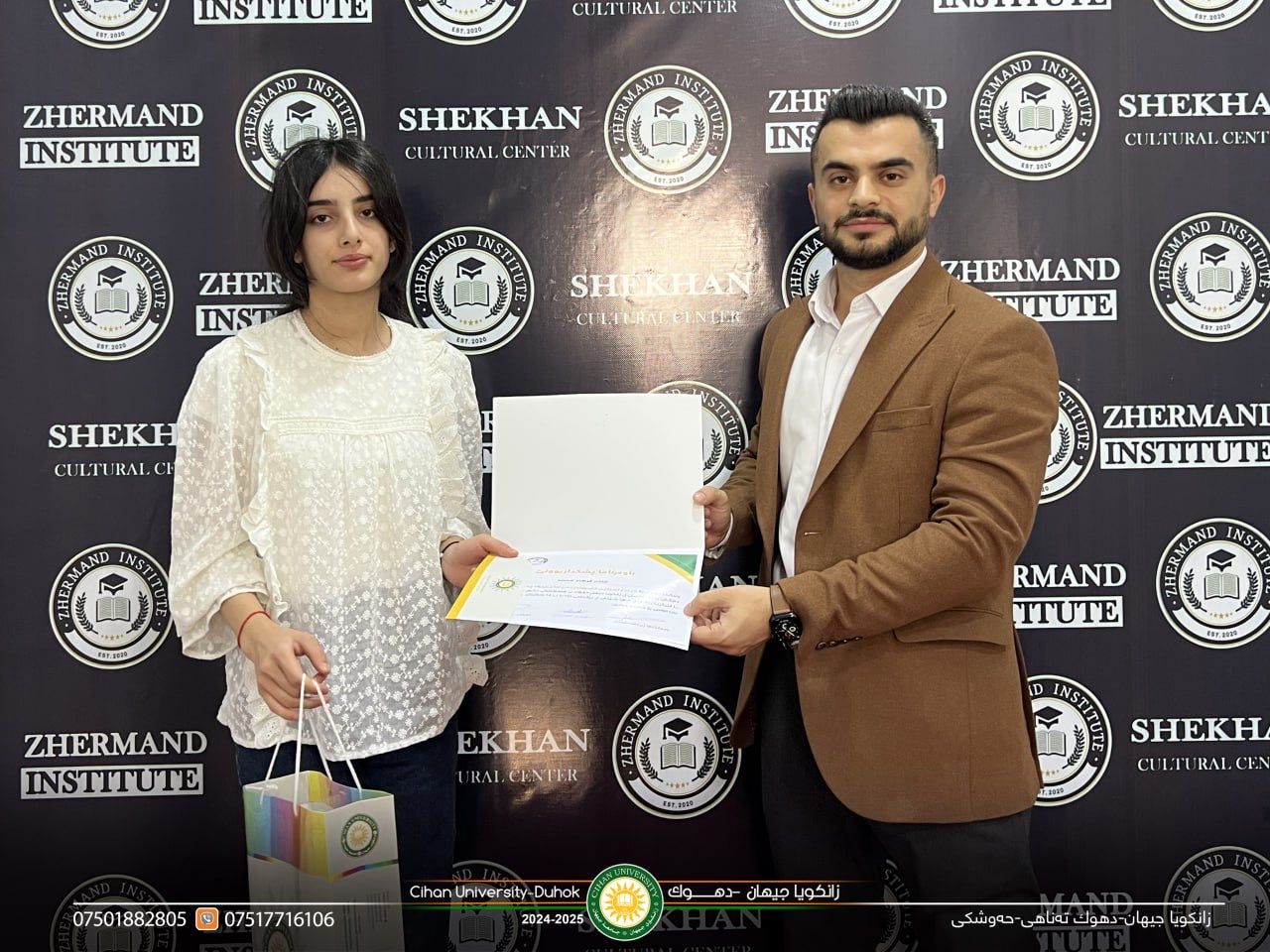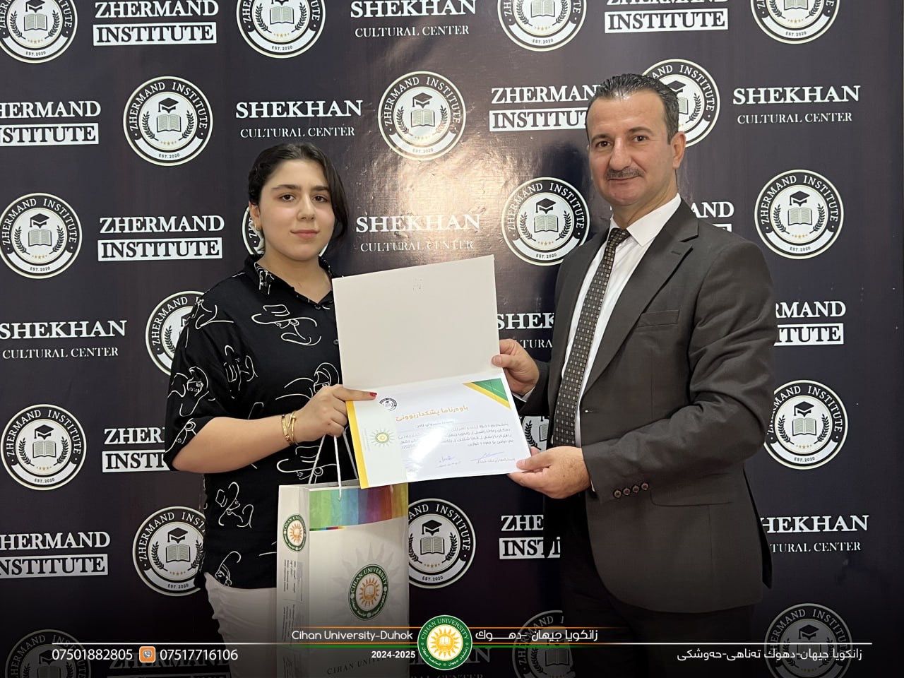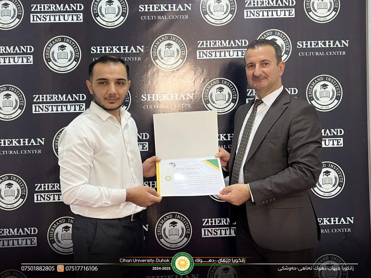 ل رێكهفتى 14/8/2025، د چارچووڤێ بهرنامێ دهزگایێ زهكاتا زانستى ل زانكویا جیهان-دهۆك، و ل دویف راسپاردێن بهردهوام یێن بهرێز (پ.د.زیرڤان عبدالمحسن أسعد) سهرۆكێ زانكویێ، ب مهرهما خزمهتكا تهخ و چینێن جودا یێن جڤاكى، پێشكێشكرنا وانا بهردهوامه ل خۆلا رێك و ئامرازێن فێربوونا زمانێ ئنگلیزى یا هاتیه ڤهكرن ژلایێ دهزگایێ زهكاتا زانستى ب ههماههنگى دگهل پهیمانگهها ژیرمهند یا فێركرنا زمانان ل قهزا شێخان، خۆل بۆ ماوێ حهفتیهكێ یا بهردهوام بوو، و چهندین وانێن تیورى و پراكتیكى هاتنه پێشكێشكرن ژلایێ: