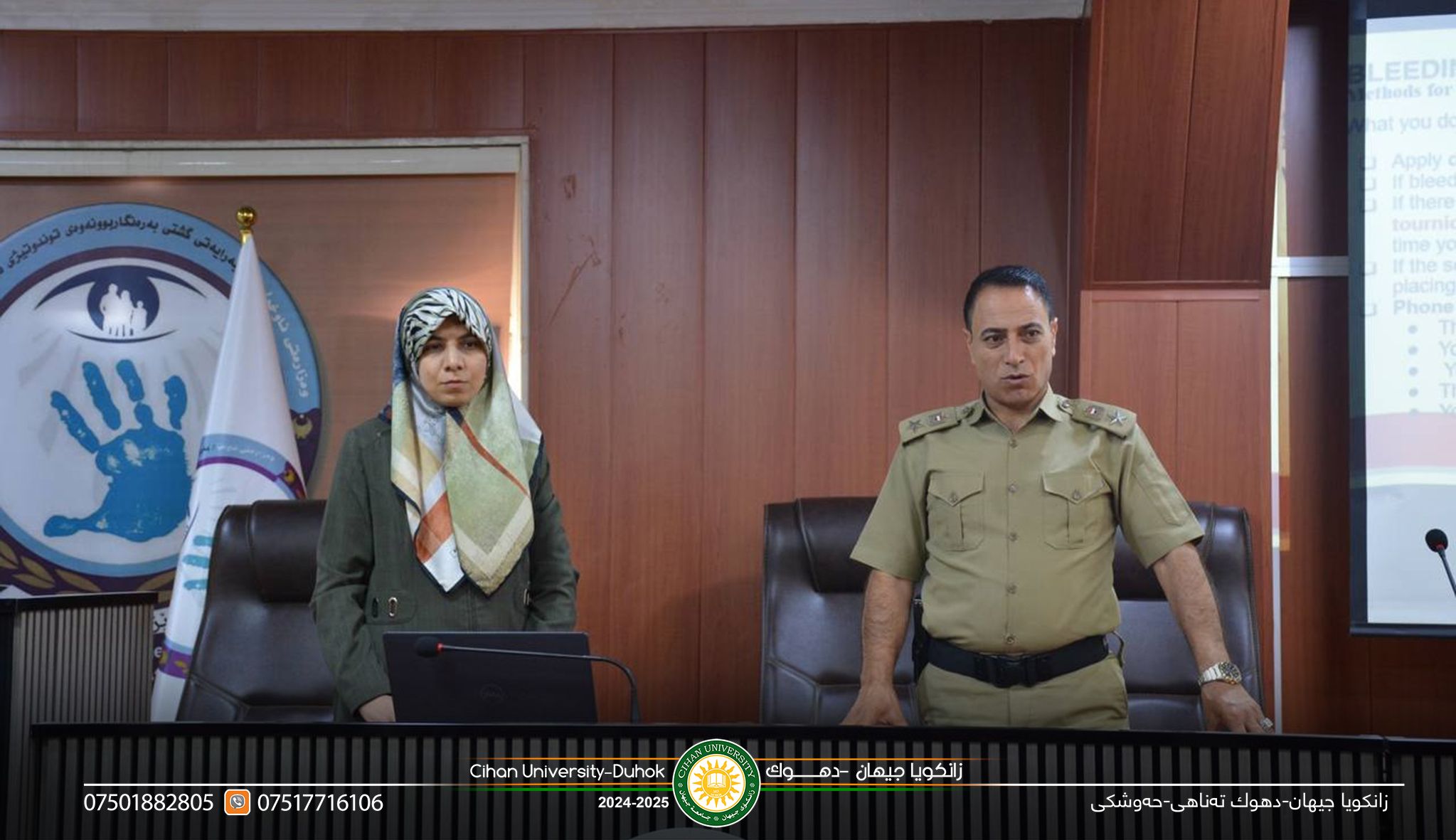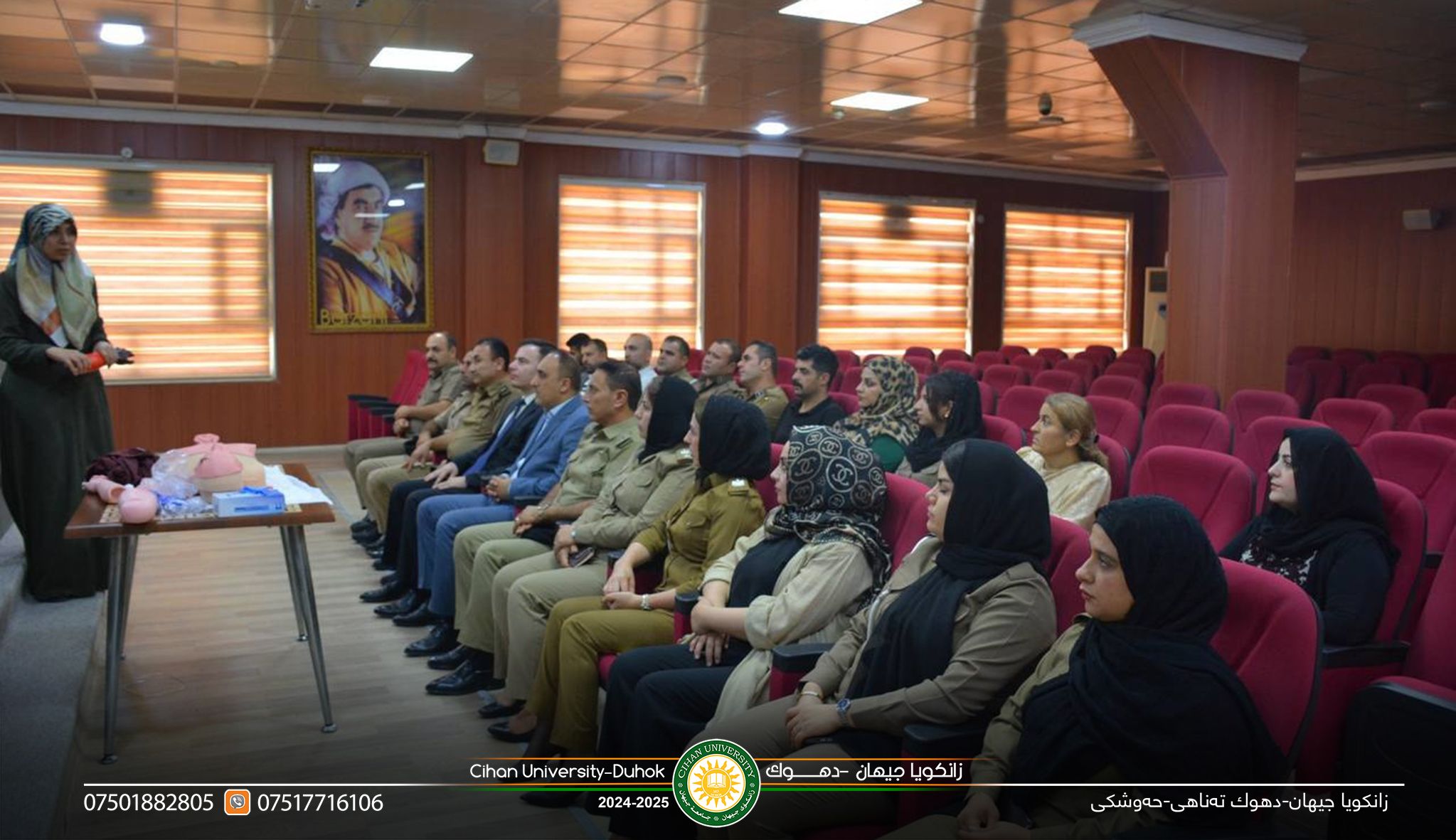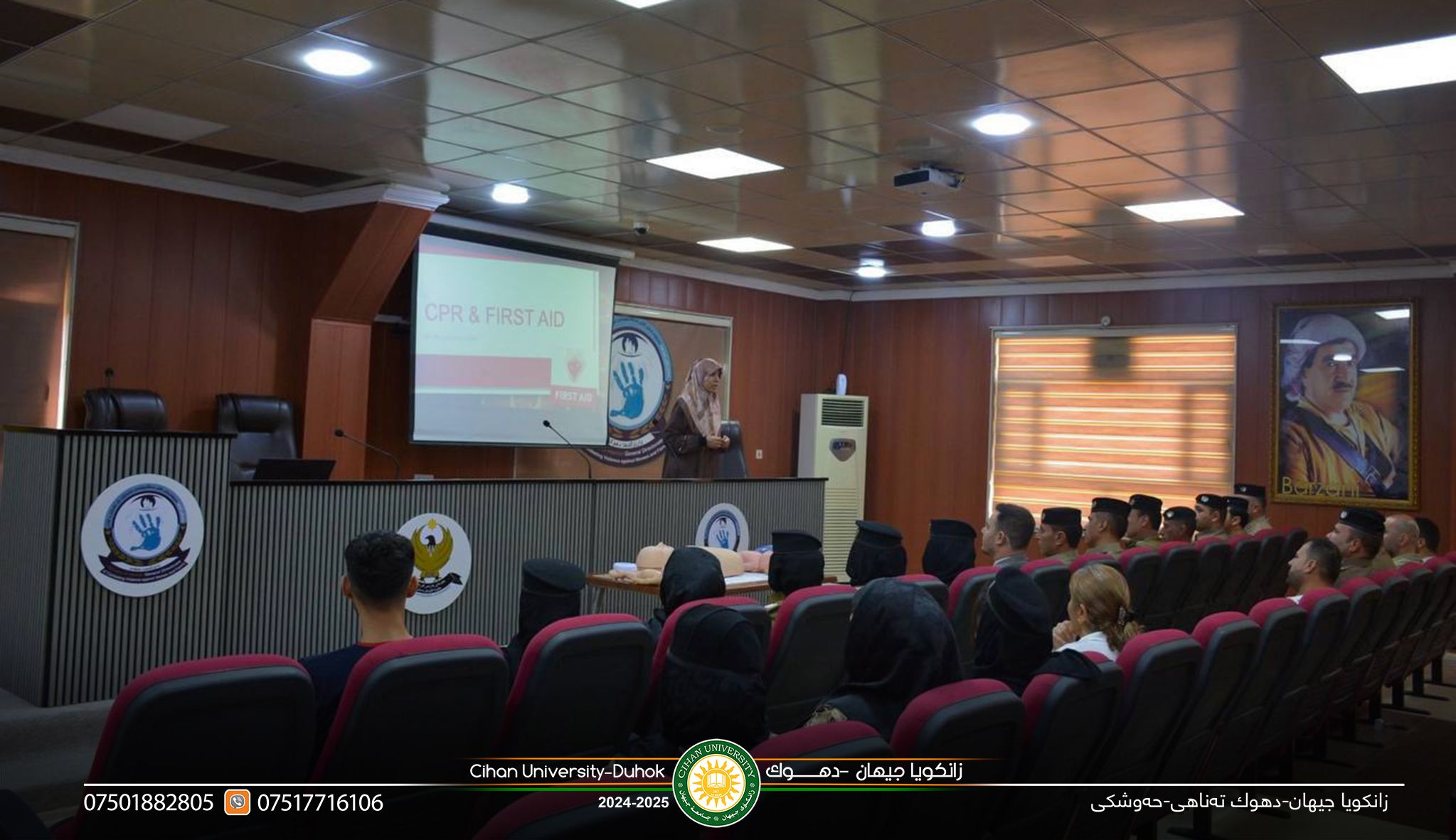 ضمن اطار التوصيات المسترمة للسيد (أ.د. زيرفان عبدالمحسن أسعد) رئيس جامعة جيهان – دهوك، وفي إطار الجهود المستمرة لخدمة المجتمع، نظمت مؤسسة زكاة العلم دورة تدريبية بعنوان "الإسعافات الأولية" بتاريخ (6/8/2025)، لموظفي مديرية مناهضة العنف ضد المرأة والأسرة في محافظة دهوك.