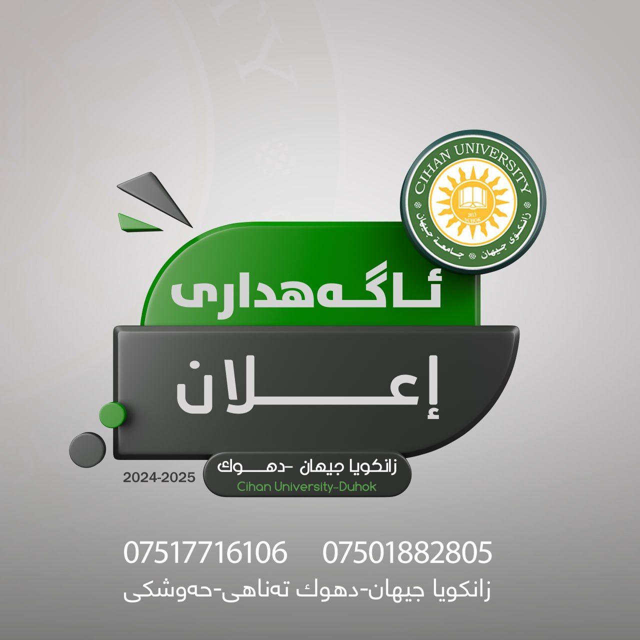 هولێن تاقيكرنا يێن دوماهيا سمسته رێ دووێ (قوناغا ئێکێ سیستەمێ پولونی) بو پشکێن زانستى (کارگێری کار، یاسا، پەروەردا گشتی، زانستێن کومپیوتەری، زمانێ ئینگلیزی) بو سالا خواندنێ (2024 - 2025) کو دێ هێنە ئەنجام دان ل دەمژمێر 11:00 سپێدێ.