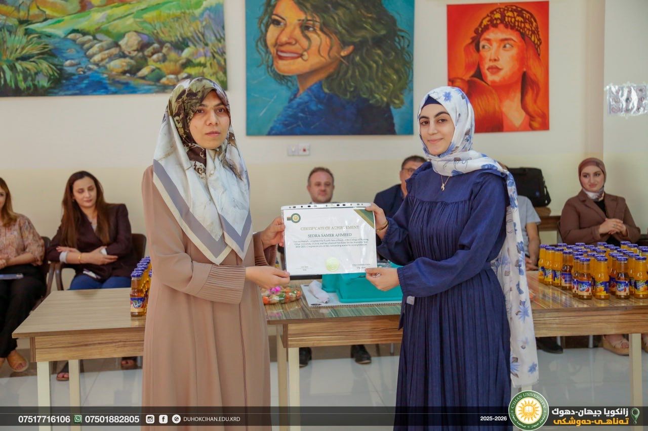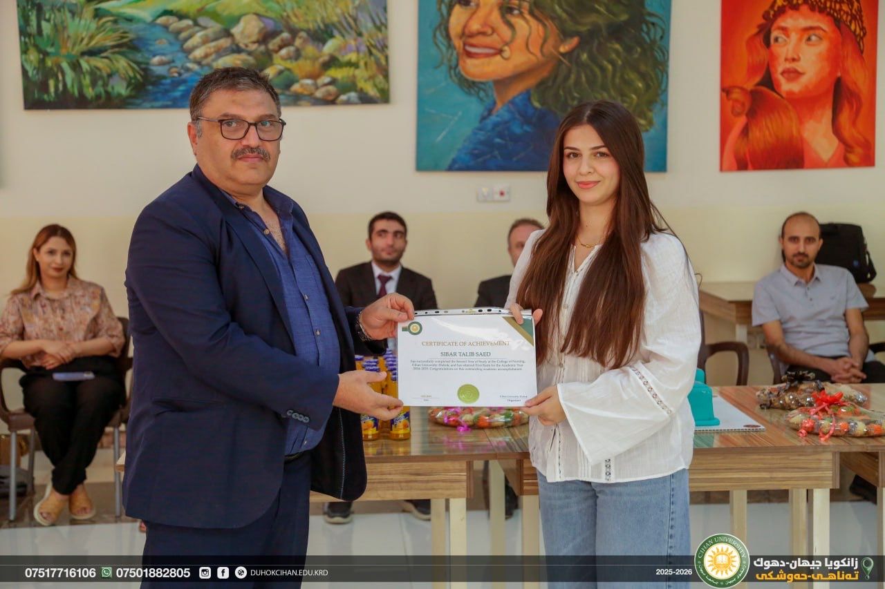 In September 17th, 2025, the College of Nursing, Cihan University- Duhok, organized a recognition ceremony to honor the top three high-achieving students from each academic stage.