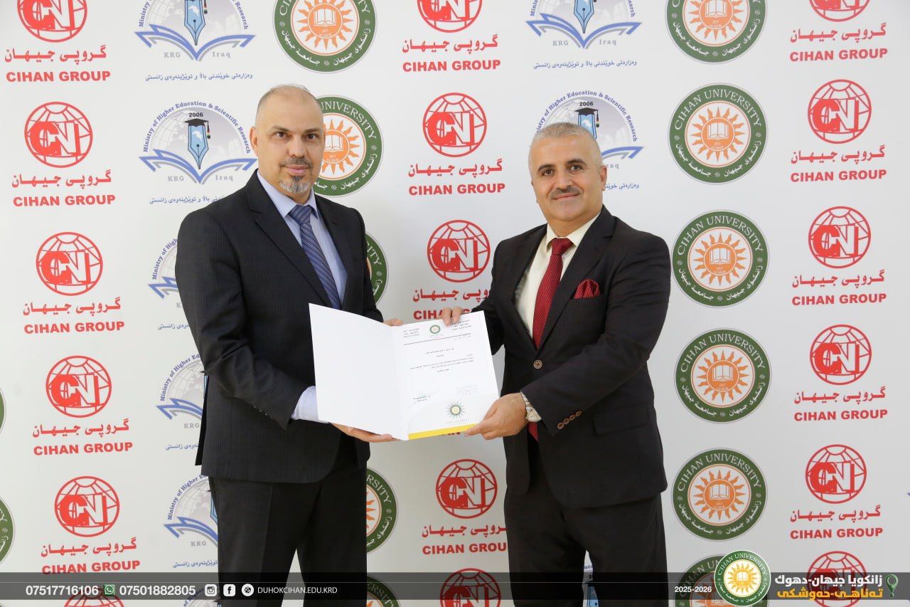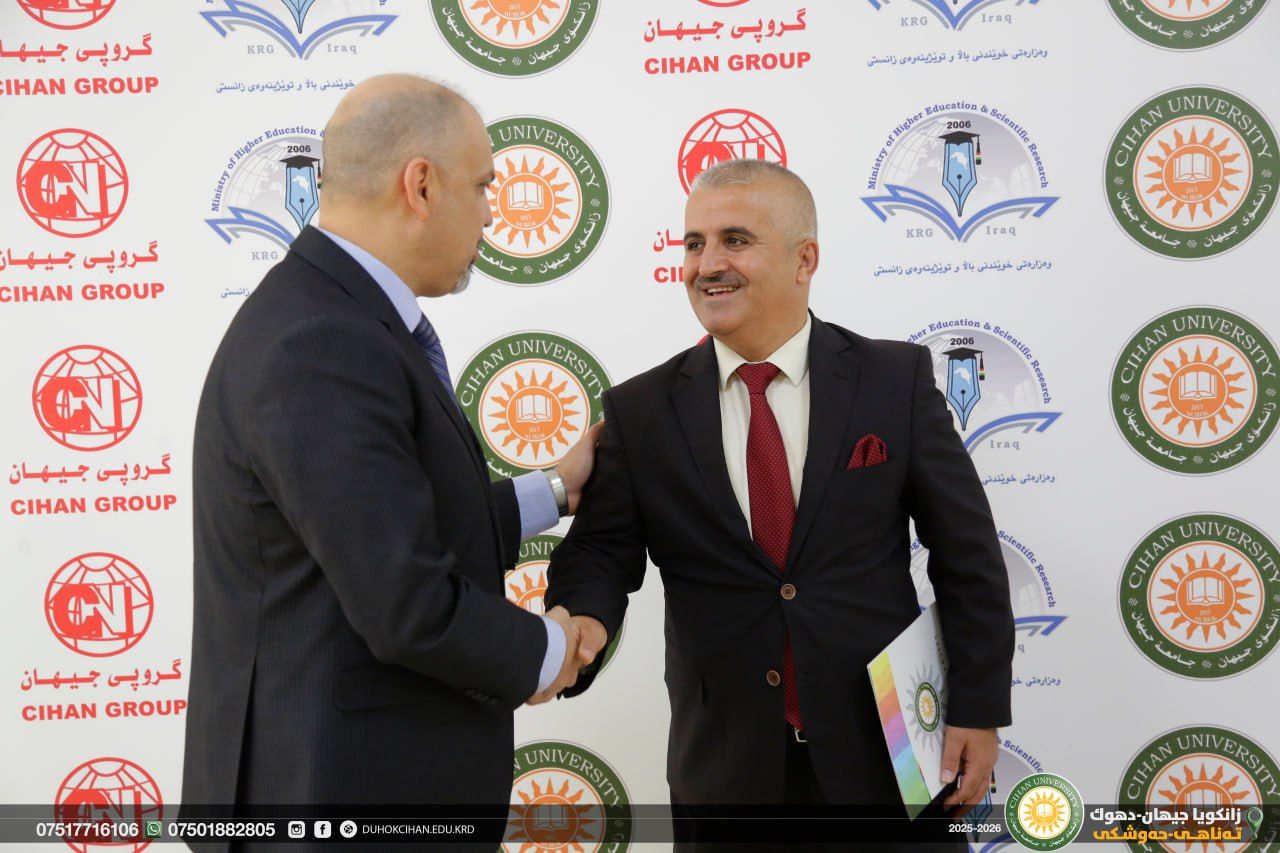 في يوم الأربعاء الموافق 8/10/2025، وجّه الأستاذ الدكتور (زيرفان عبدالمحسن أسعد)، رئيس جامعة جيهان – دهوك، كتاب شكر وتقدير إلى المحامي (الدكتور صادق عبدالرحمن حسن) تقديراً لجهوده المتميزة في تدريب طلبة كلية القانون على المحكمة النموذجية، وإسهامه الفاعل في تطوير مهارات الطلبة القانونية وتعزيز الجانب العملي في مسيرتهم الأكاديمية.