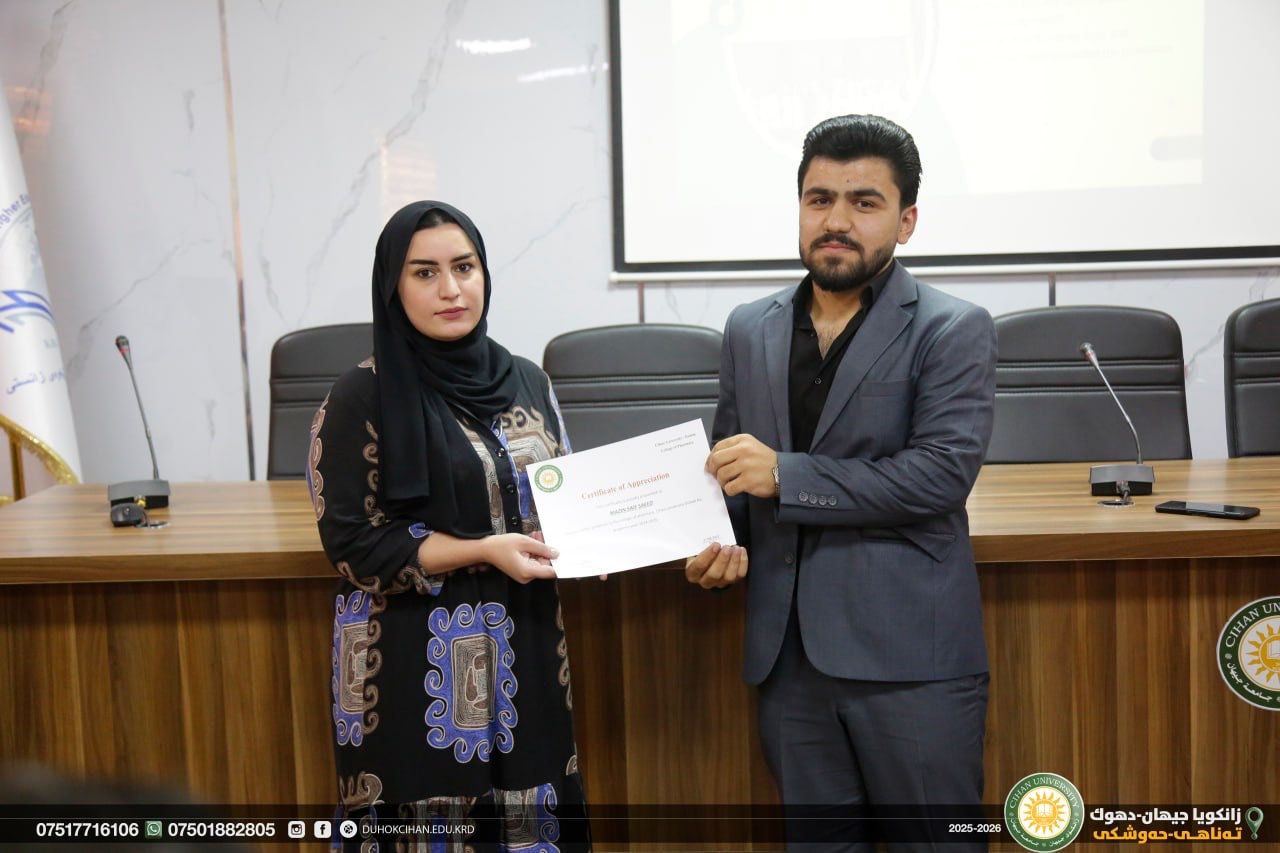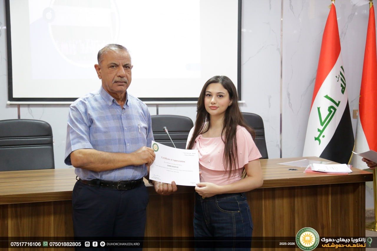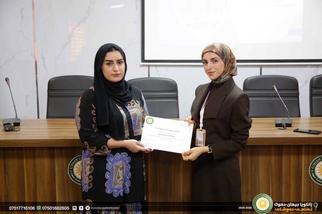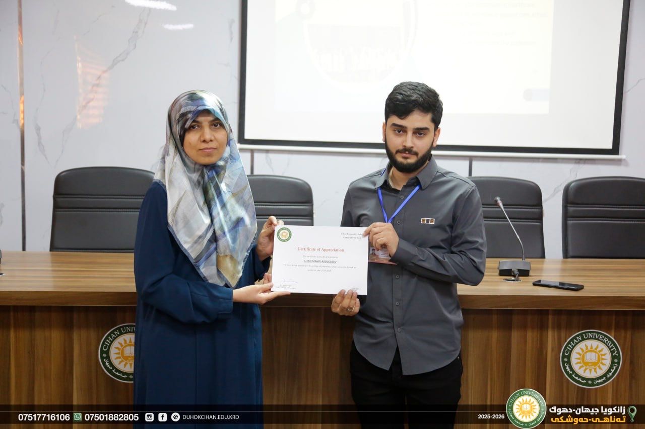 The College of Pharmacy at Cihan University–Duhok celebrated World Pharmacists Day by organizing a workshop that highlighted the history of pharmacy, the ethics of the profession, and the major branches of the field, along with pathways for specialization in various pharmacy-related careers. The workshop also emphasized the vital roles pharmacists play in different scientific and professional sectors. In recognition of their outstanding efforts and achievements, certificates of appreciation were awarded to top-performing and active students of the college. In recognition of their efforts and achievements during the 2024/2025 academic year, certificates of appreciation were awarded to the top-performing and most active students of the college.