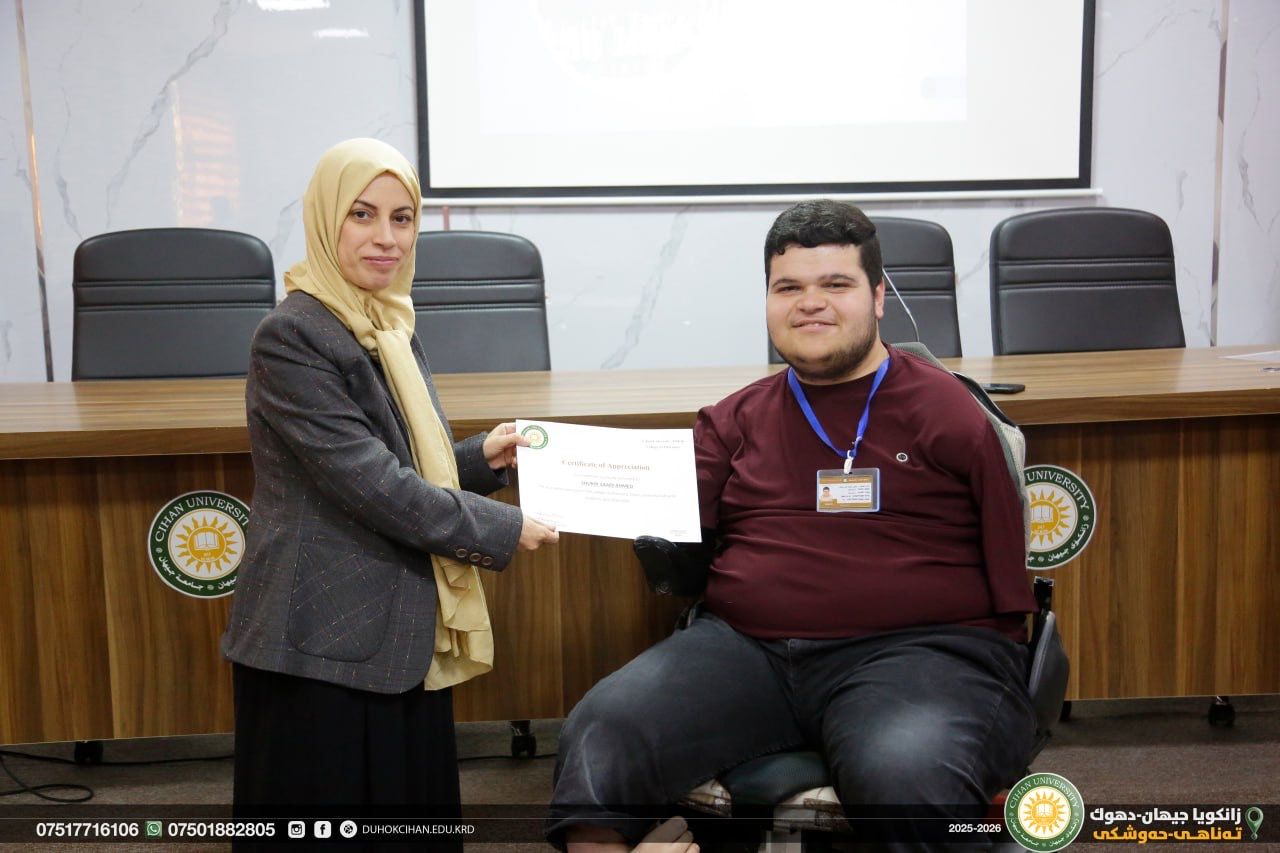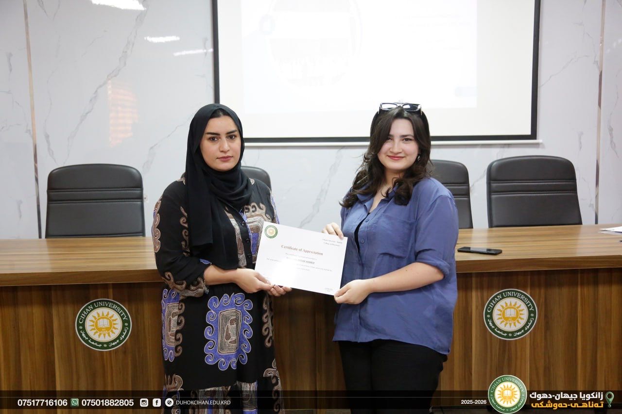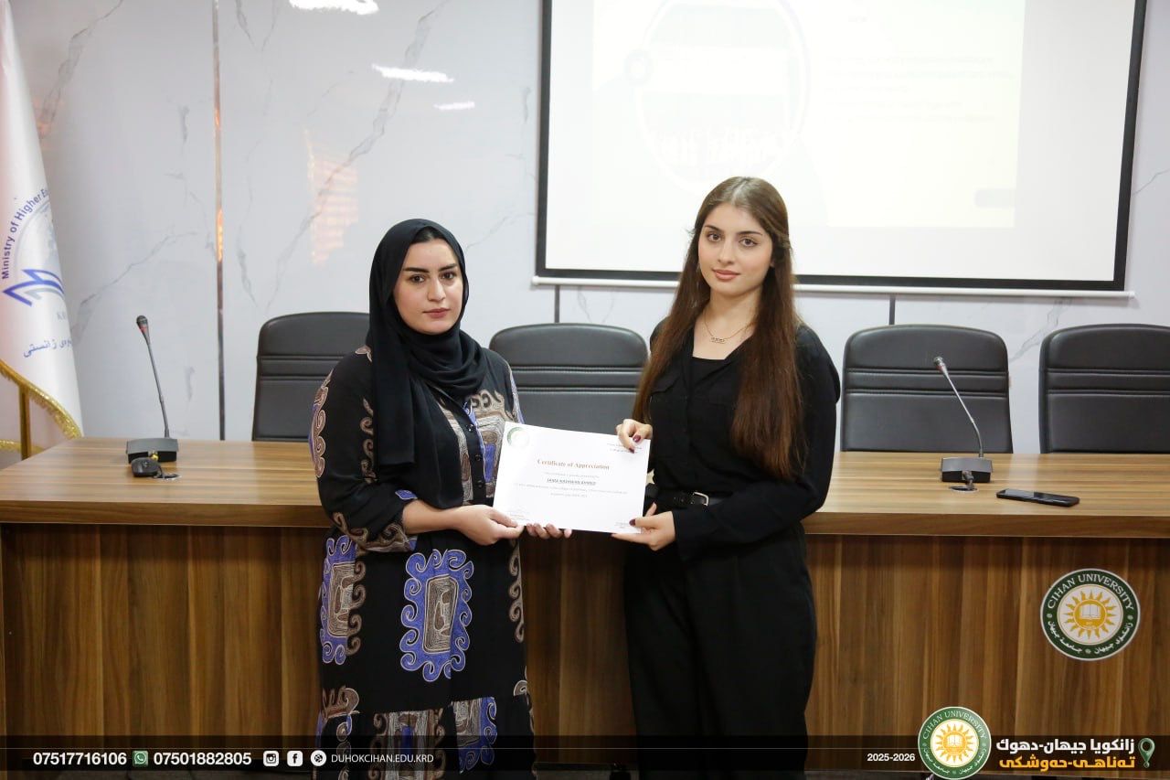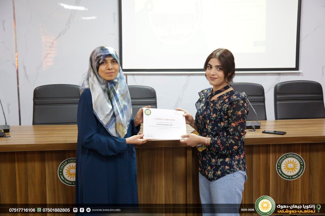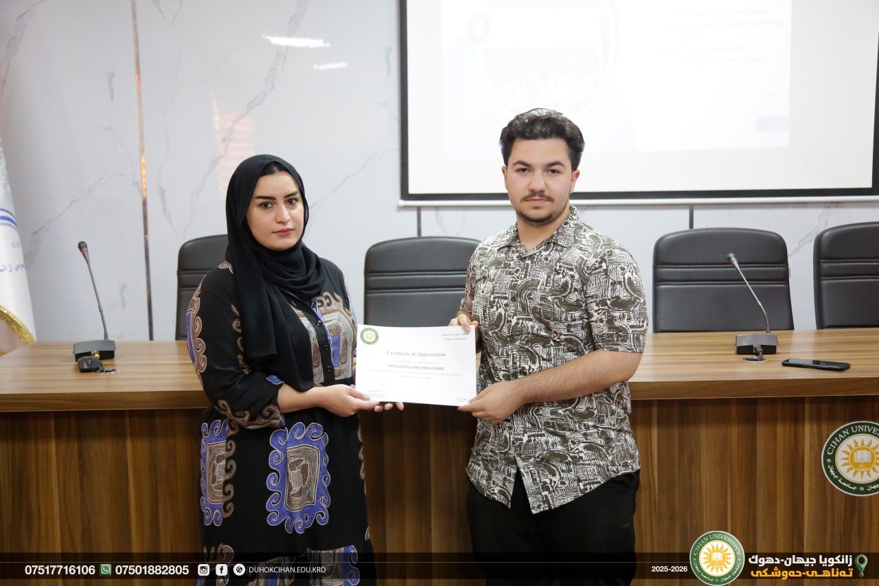 The College of Pharmacy at Cihan University–Duhok celebrated World Pharmacists Day by organizing a workshop that highlighted the history of pharmacy, the ethics of the profession, and the major branches of the field, along with pathways for specialization in various pharmacy-related careers. The workshop also emphasized the vital roles pharmacists play in different scientific and professional sectors. In recognition of their outstanding efforts and achievements, certificates of appreciation were awarded to top-performing and active students of the college. In recognition of their efforts and achievements during the 2024/2025 academic year, certificates of appreciation were awarded to the top-performing and most active students of the college.