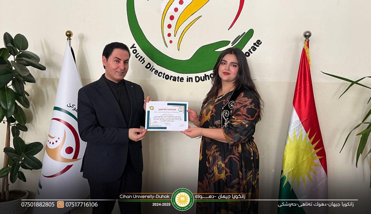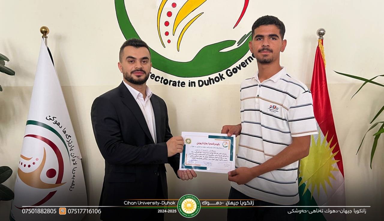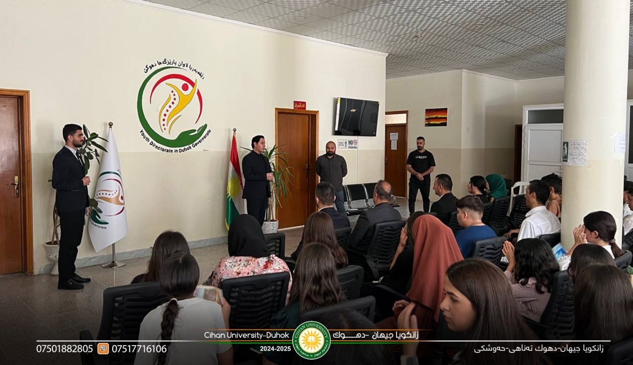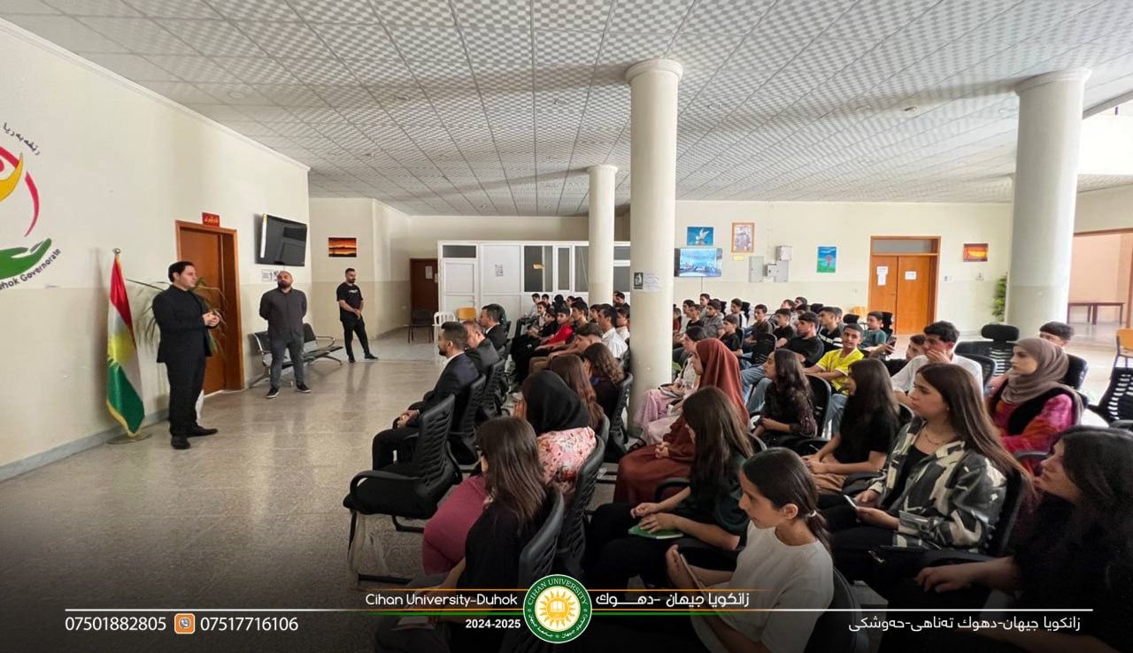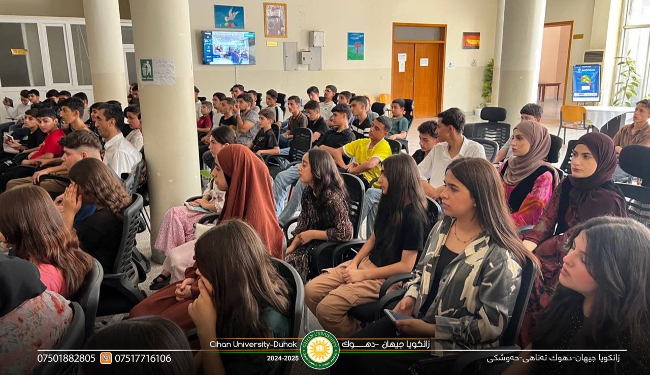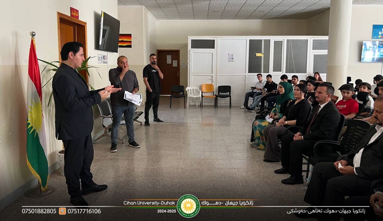 ل دویف راسپاردێن به‌رێز (پ.د.زیرڤان عبدالمحسن أسعد) سه‌رۆكێ زانكویێ، و د چارچووڤێ هه‌ولێن به‌رده‌وام یێن پێشڤه‌برنا به‌رنامێ هۆشیارى و پێگه‌هاندن و ره‌وشه‌نبیریا گشتى بۆ ته‌خ و چینێن جودا یێن جڤاكى بتایبه‌ت ته‌خا گه‌نجان، ل رێكه‌فتى (31/7/2025)ده‌زگایێ زه‌كاتا زانستى ب هه‌ماهه‌نگى دگه‌ل رێڤه‌به‌ریا لاوان ل پارێزگه‌ها دهۆكێ خۆله‌كا بێ به‌رامبه‌ر یا رێك و ئامرازێن فێربوونا زمانێ ئنگلیزى بۆ 72 گه‌نجان ب دوماهى ئینا كو بۆ ماوێ دوو حه‌فتیان یا به‌رده‌وام بوو، و هاته‌ پێشكێشكرن ژلایێ به‌رێز (م.حسام نزار) ماموستایێ به‌شێ زمانێ ئنگلیزى، دگه‌ل ئه‌نجامدانا دوو سمیناران ژلایێ به‌رێزان: