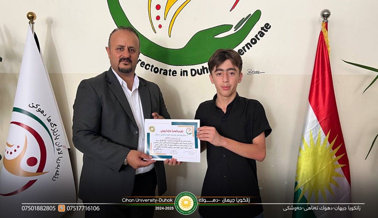 ل دوماهیێ پشتى خۆل ب سه‌ركه‌فتیانه‌ ب دوماهى هاتى د ریۆره‌سمه‌كێ ژ هه‌ژى دا، باوه‌رنامێن پشكداربوونێ هاتنه‌ پێشكێشكرن، ب ئاماده‌بوونا ستافێ رێڤه‌به‌ریا وه‌رزش و لاوان ل پارێزگه‌ها دهۆكێ و ستافێ ده‌زگایێ زه‌كاتا زانستى-دهۆك.