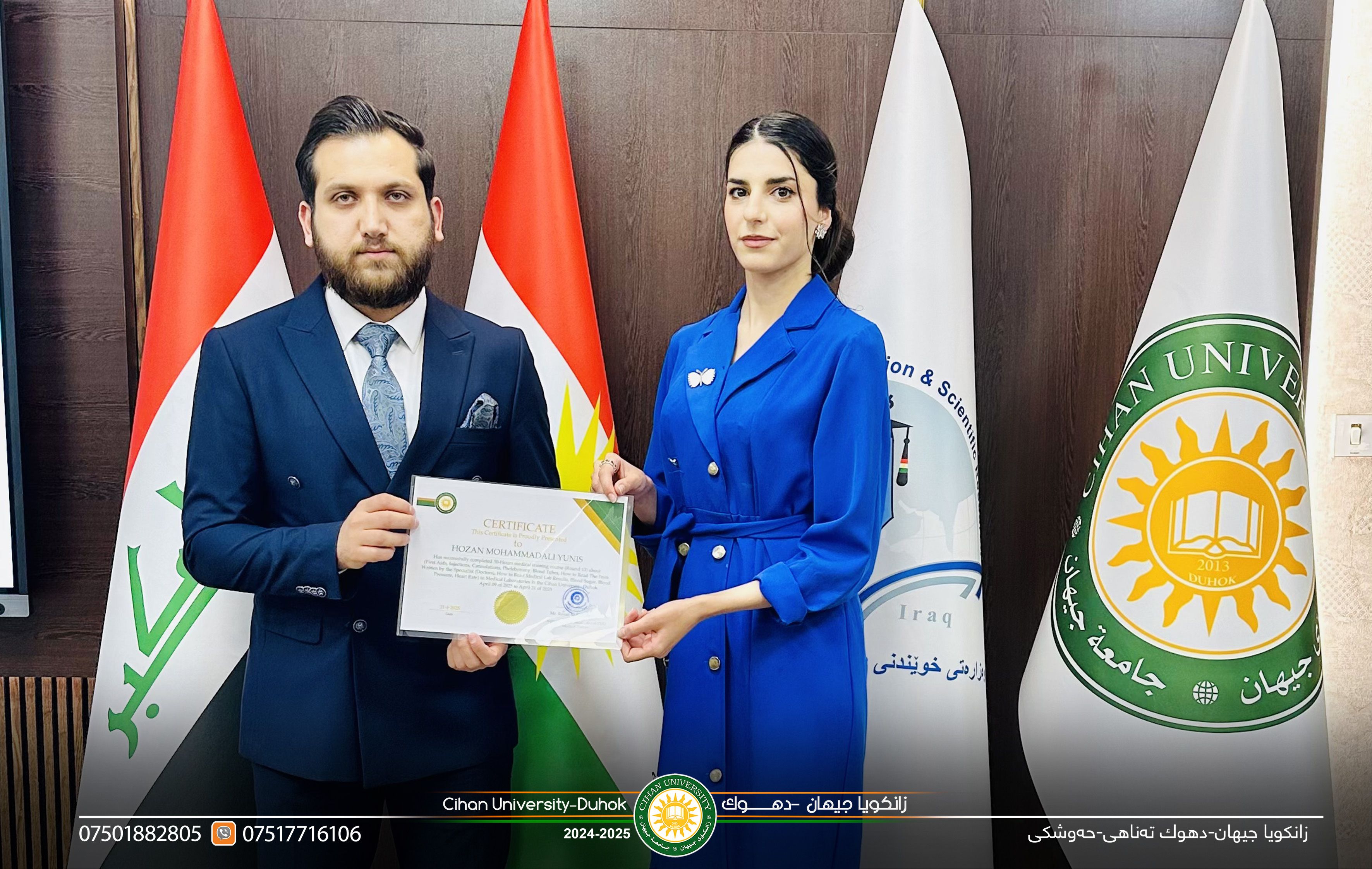 On 2025/04/21 the closing ceremony of the medical course (Round 13) under the supervision of the course trainer Mr. (Rayan Sadeeq Ahmad) Supervisor of Medical Laboratory at Cihan University - Duhok, it is worth mentioning that after 30 hours of teaching and training, certificates were distributed to the participants..