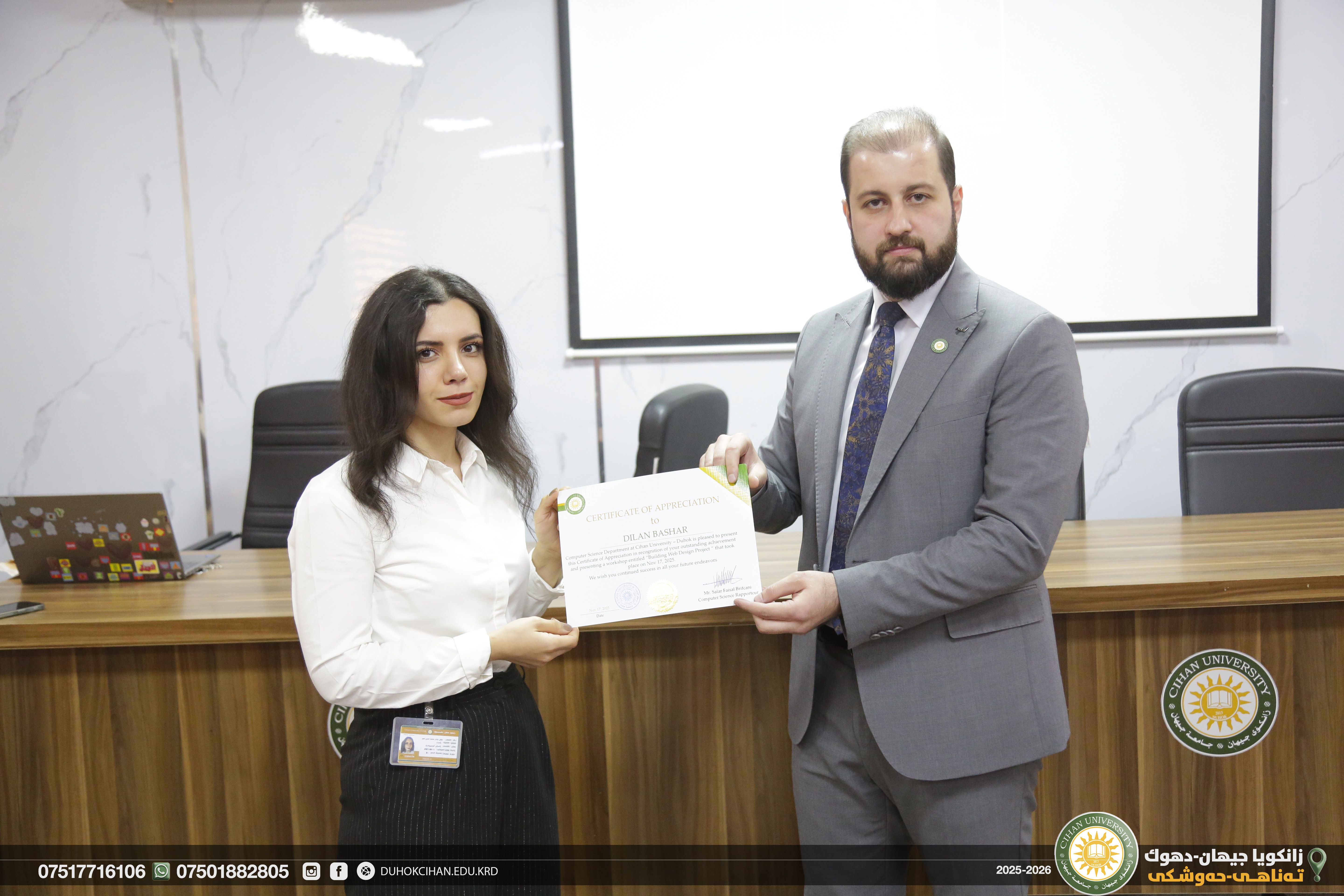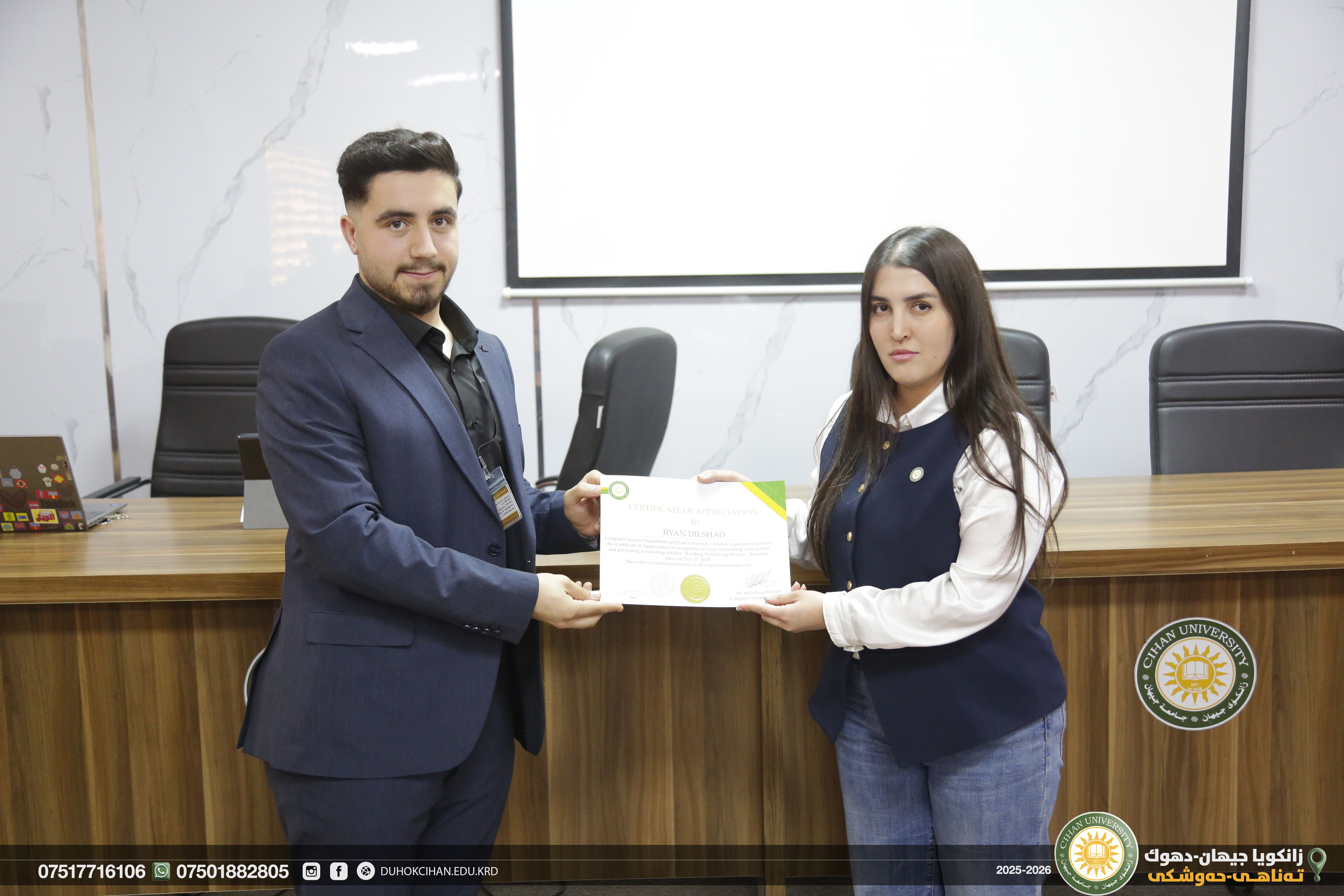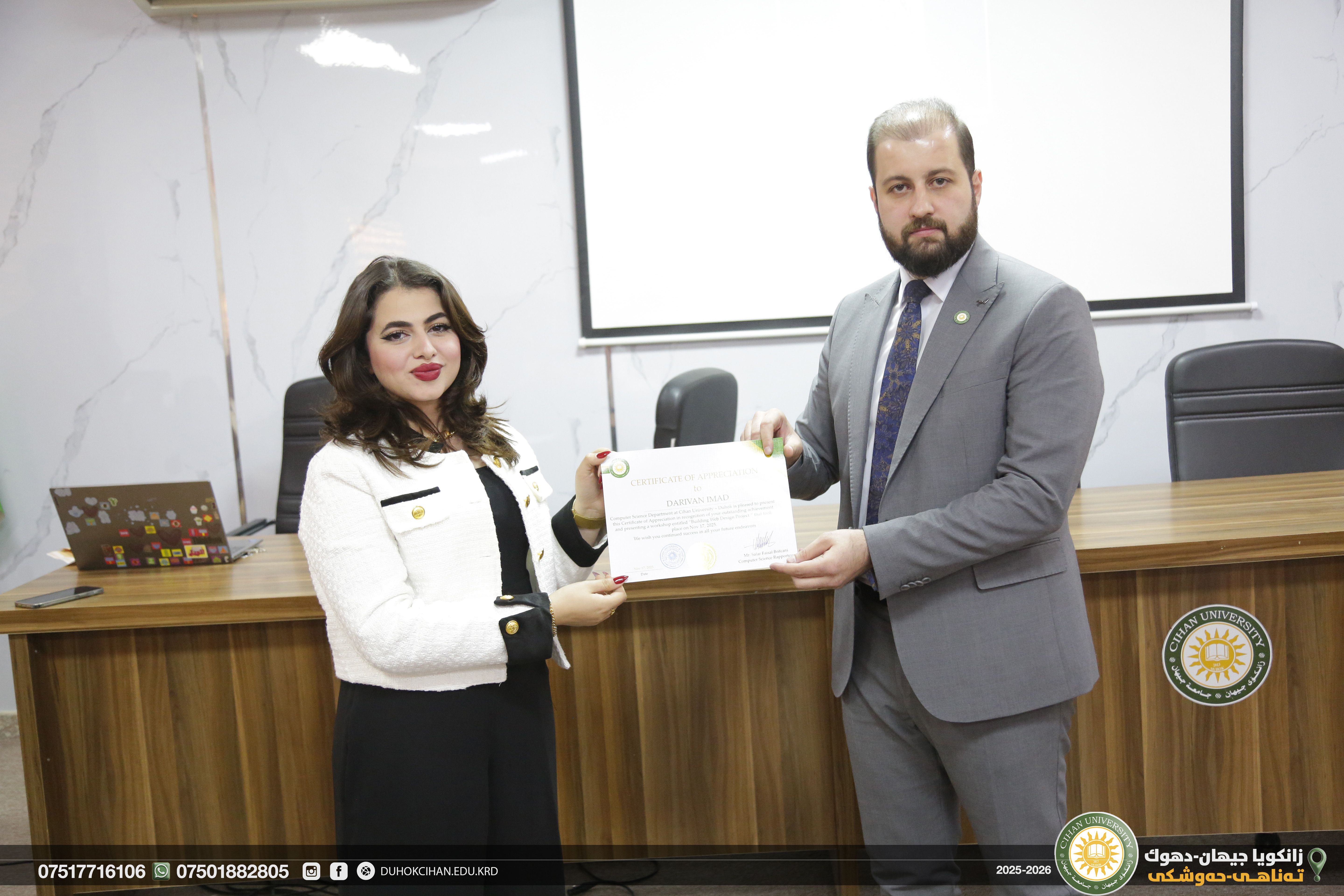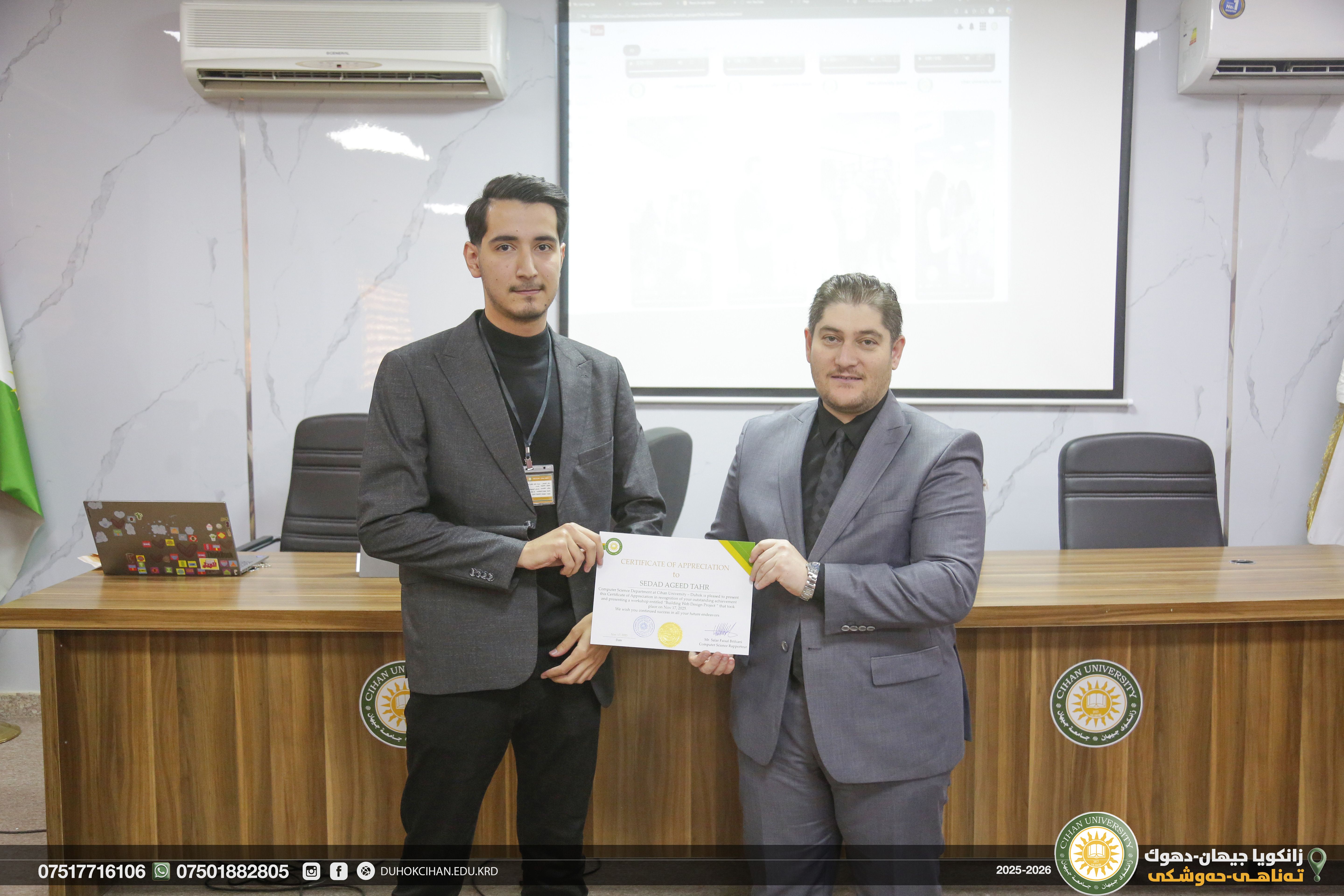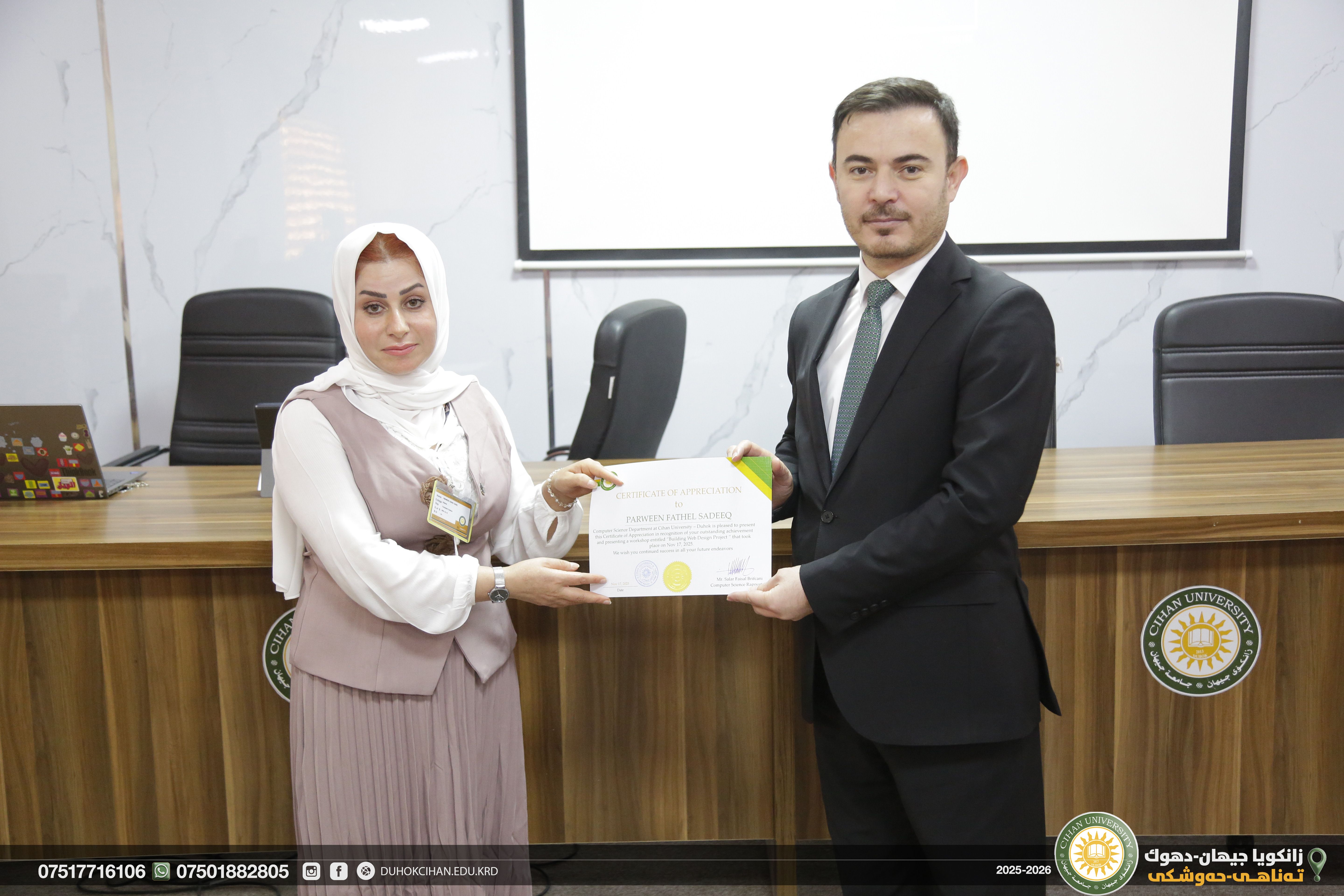 On Nov 17, 2025, under the supervision of (Mr. Salar Faisal Noori) the Department Rapporteur. The students designed and developed academic websites as part of the workshop activities and were divided into 6 groups to complete their projects. At the end of the workshop, the department instructors acknowledged their efforts and presented certificates of appreciation for their outstanding work.