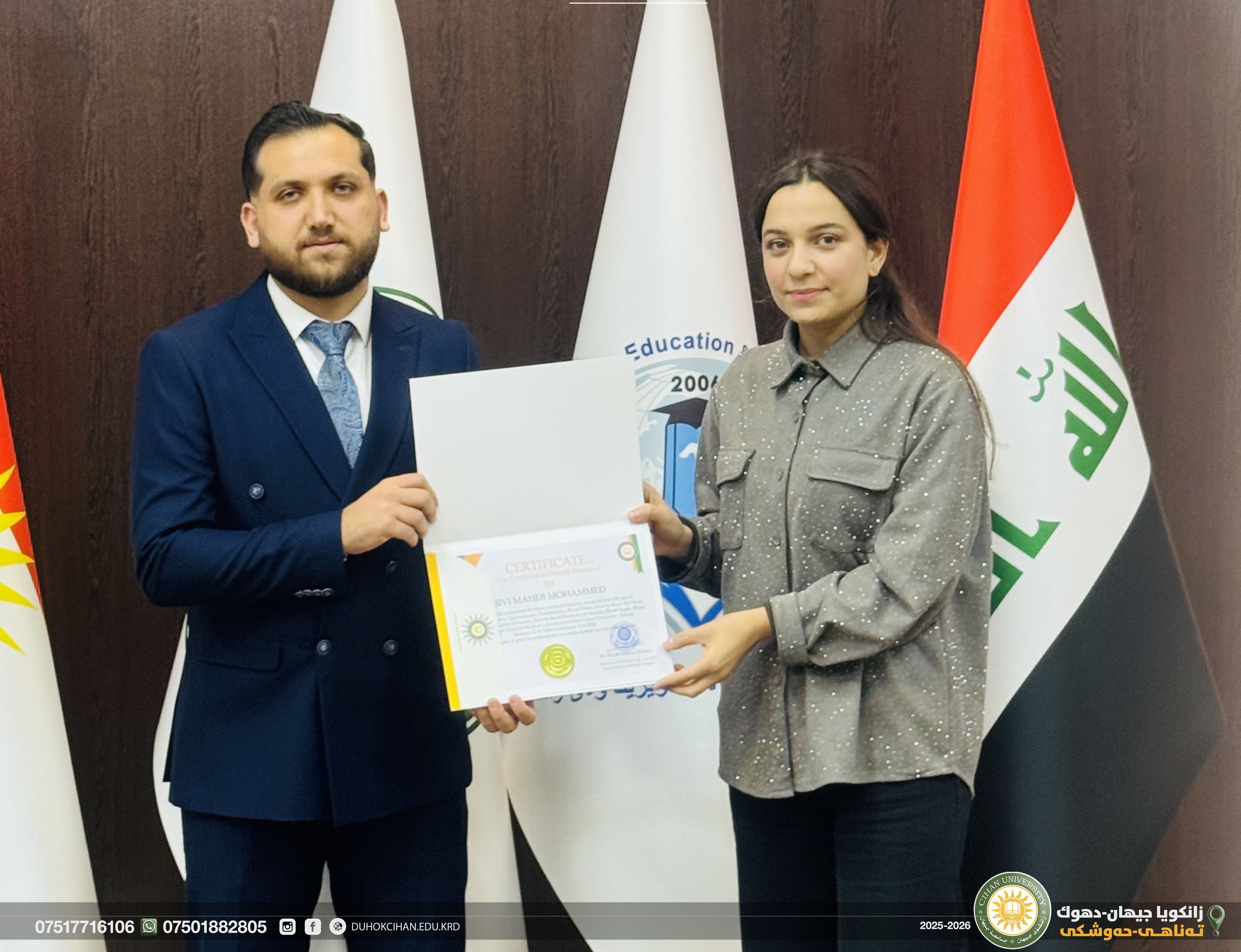 On February 06, 2026 the closing ceremony of the Medical Course (Round 28) was held under the supervision of International Medical Trainer Mr. Rayan Sadeeq Ahmad, Director of the Medical Laboratories at Cihan University – Duhok and author of several medical publications.