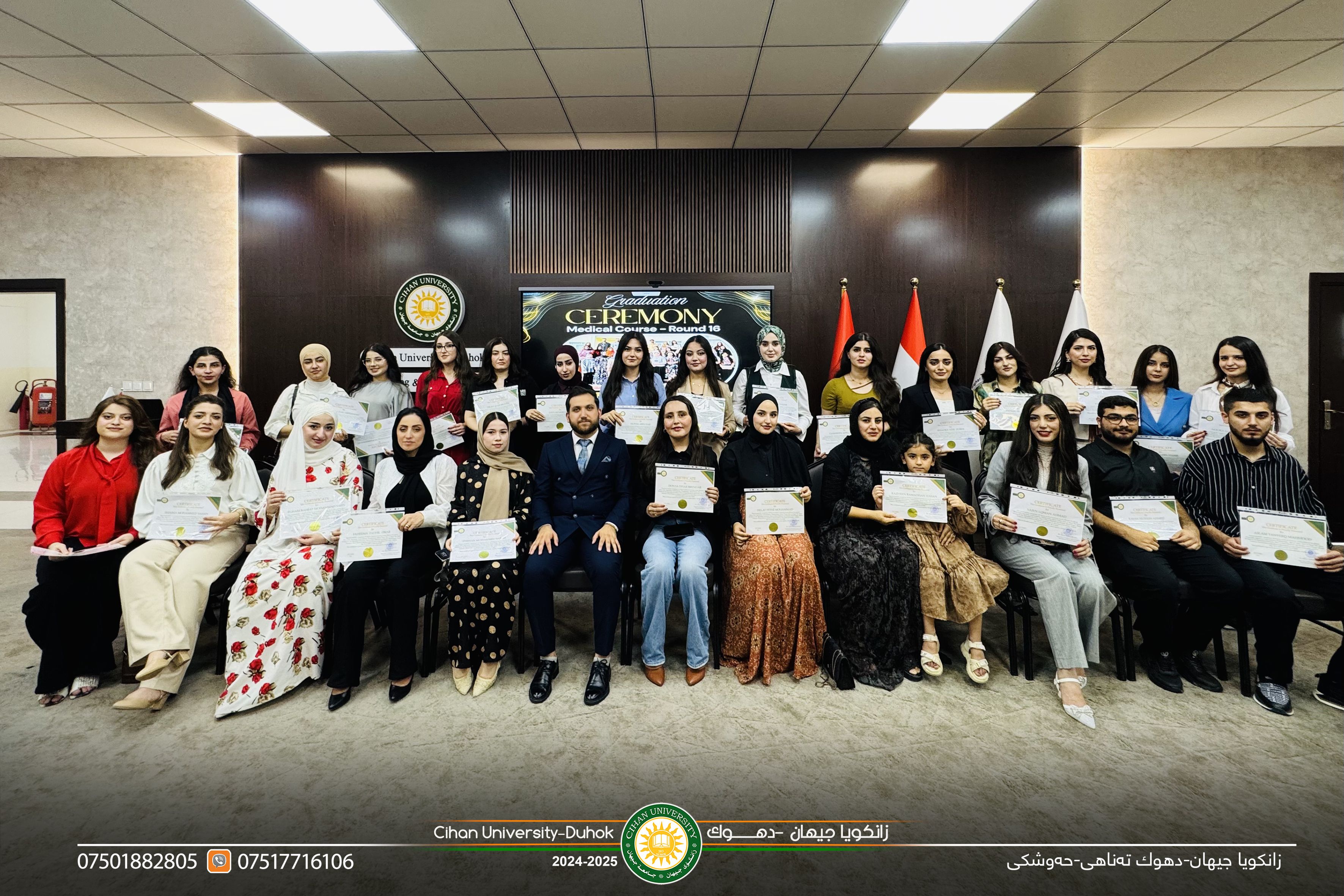 On 2025/07/23 the closing ceremony of the medical course (Round 17 ) under the supervision of international medical trainer (Mr. Rayan Sadeeq Ahmad) Decision Maker and Supervisor of Medical Laboratories at Cihan University - Duhok, after 30 hours of teaching and training and conducting evaluation experience Level of students Graduation certificates were distributed to the participants.