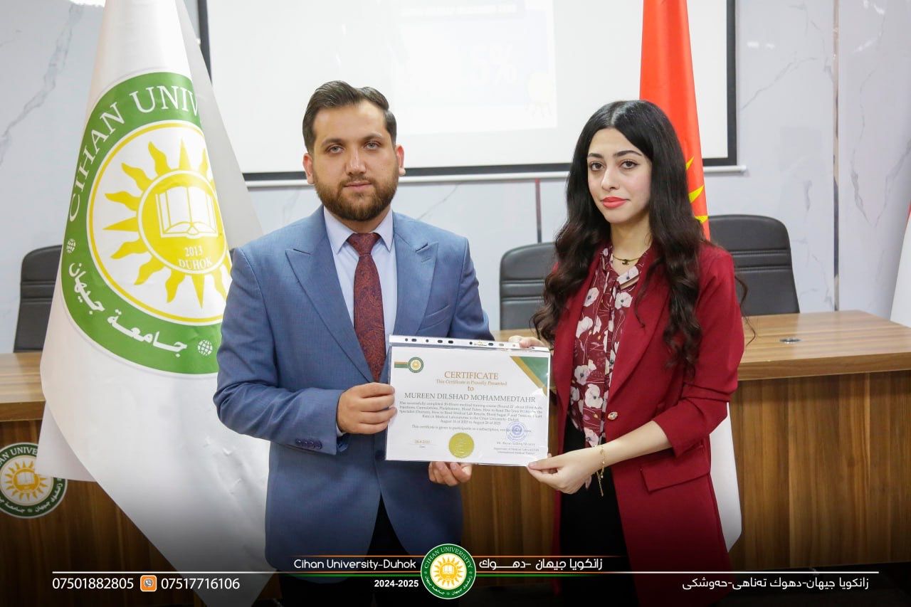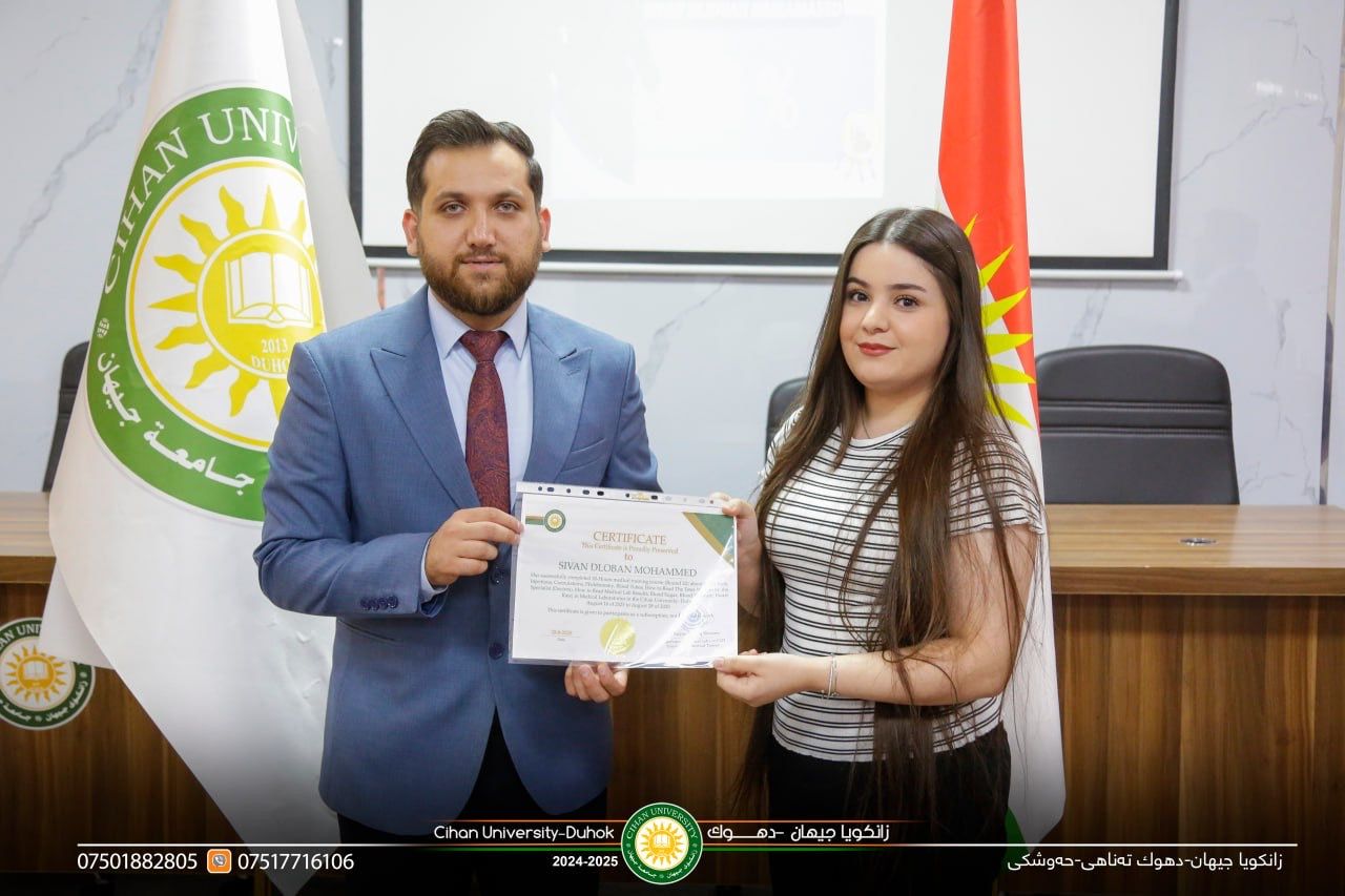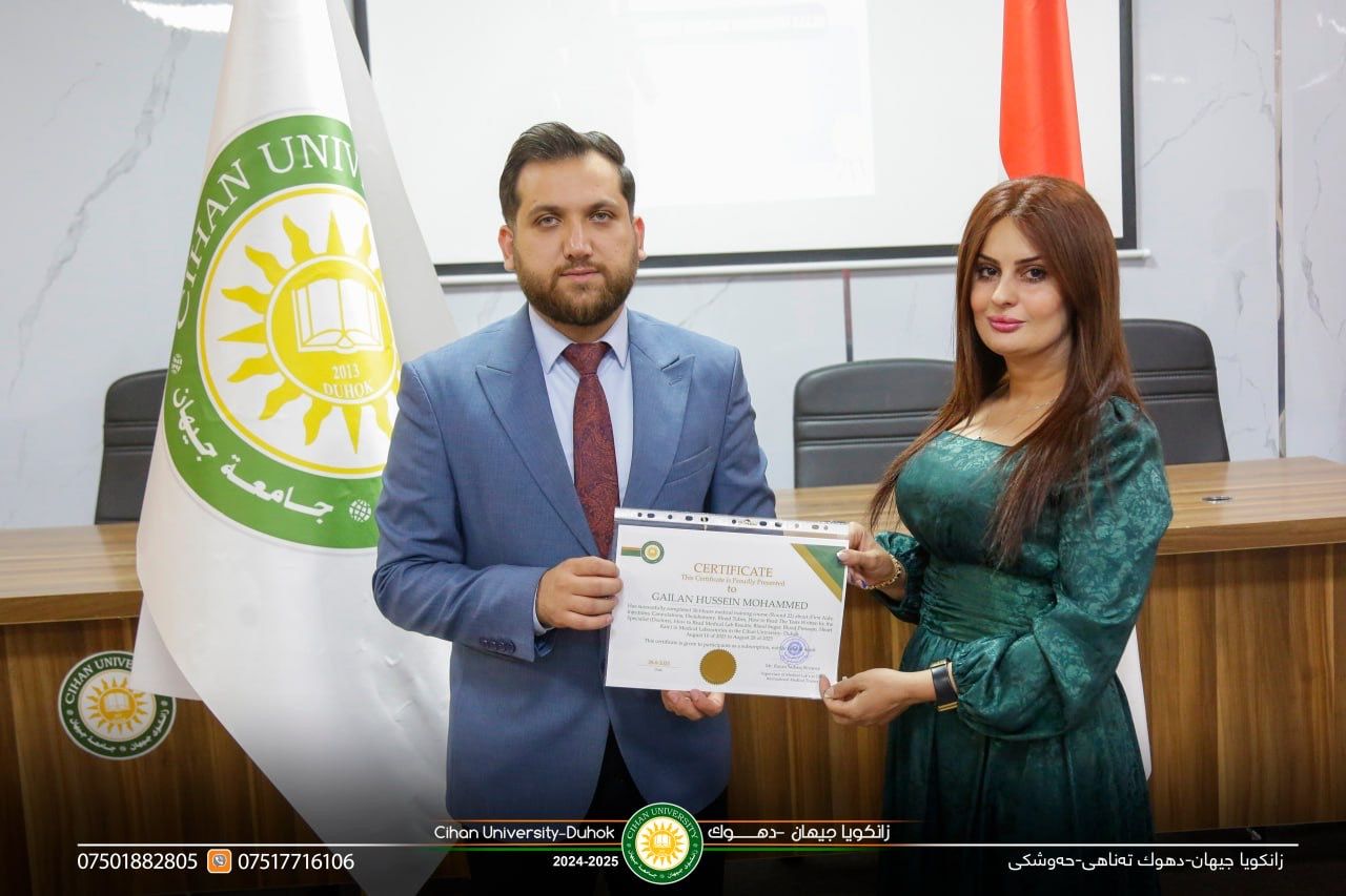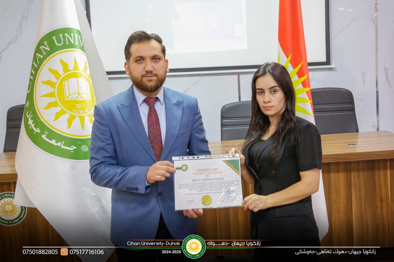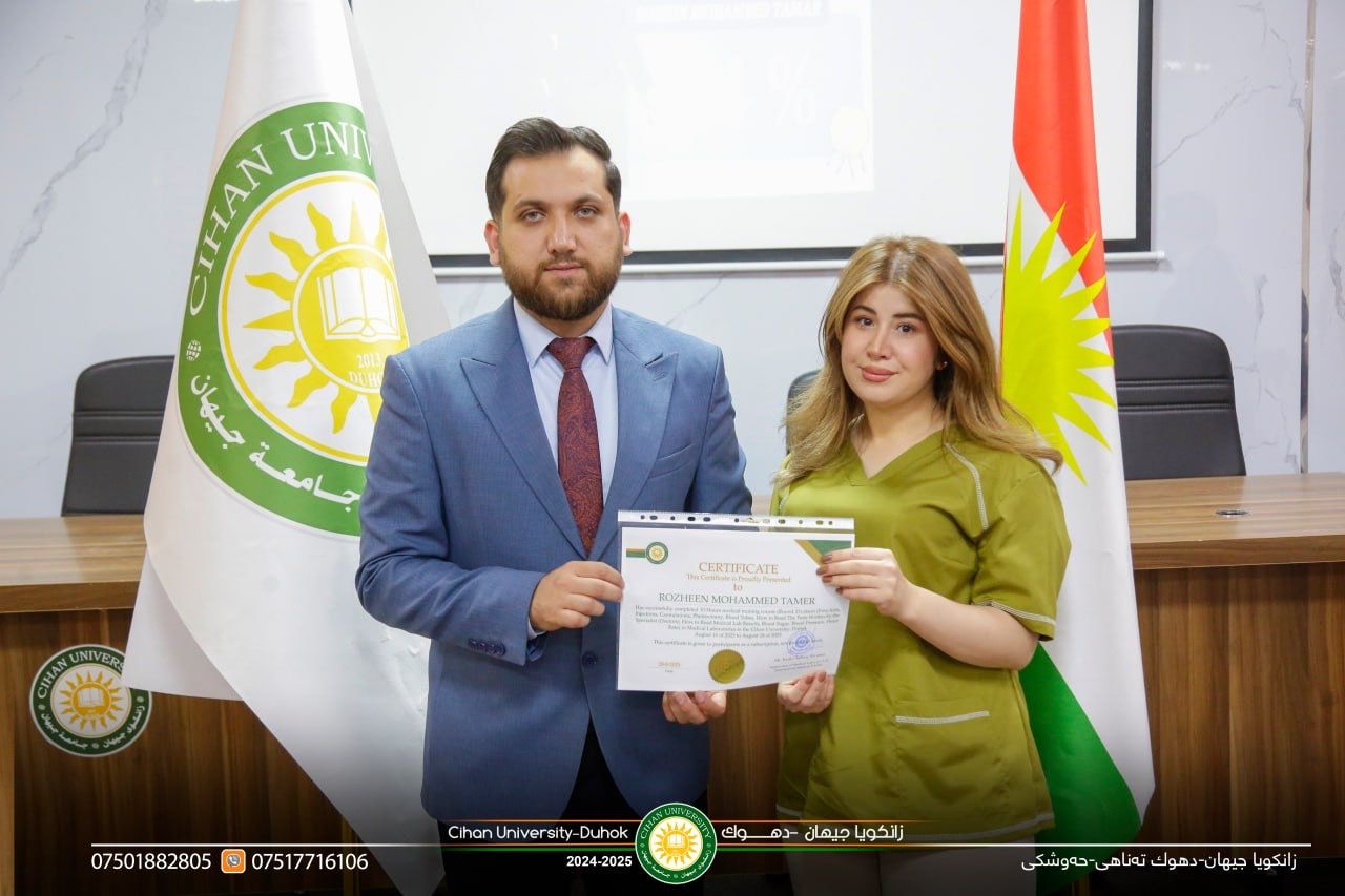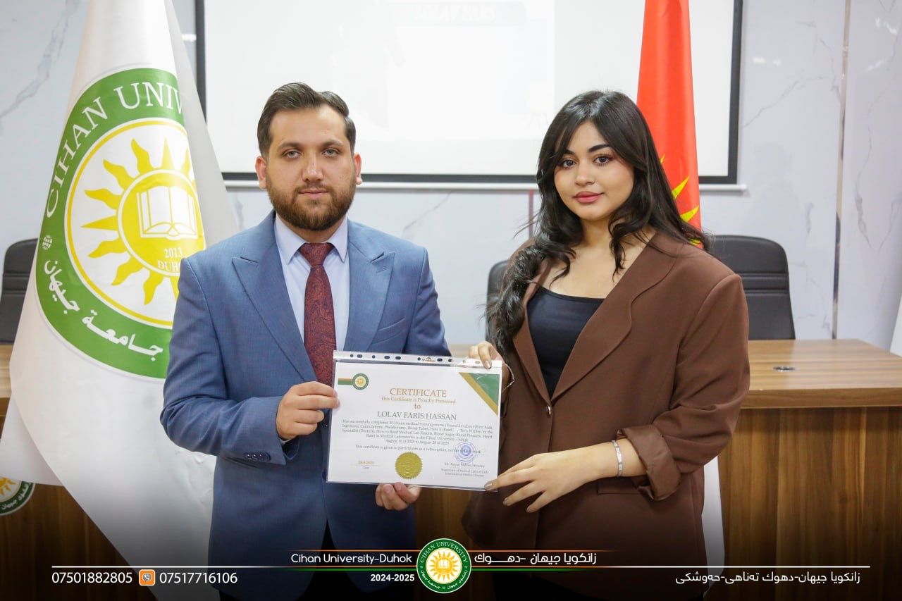On 2025/08/28 the closing ceremony of the medical course (Round 21 & 22) under the supervision of international medical trainer (Mr. Rayan Sadeeq Ahmad) Decision Maker and Supervisor of Medical Laboratories at Cihan University - Duhok and author of medical books, after 30 hours of teaching and training and conducting evaluation experience Level of students Graduation certificates were distributed to the participants.