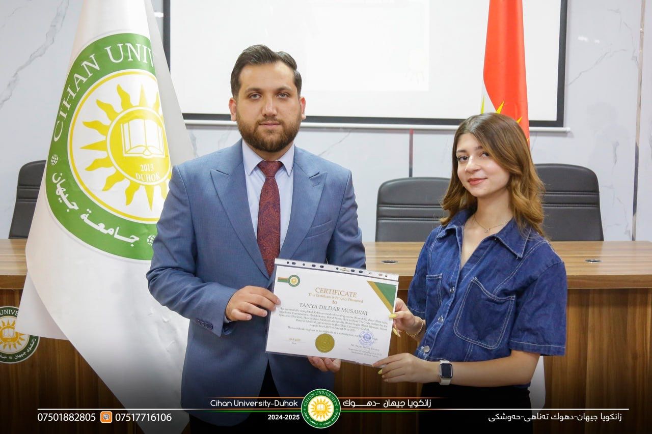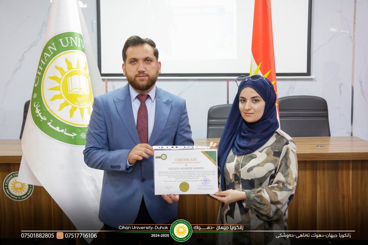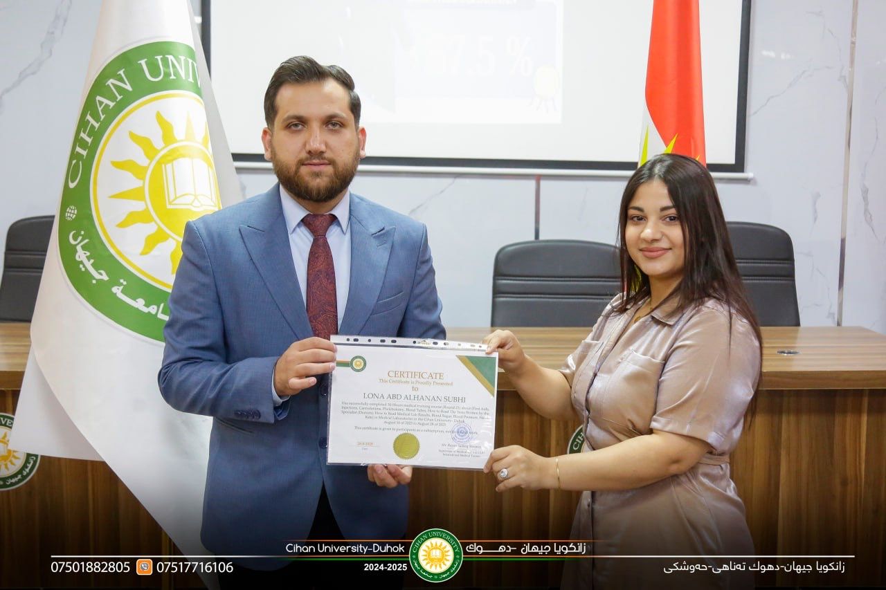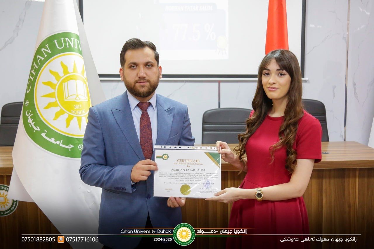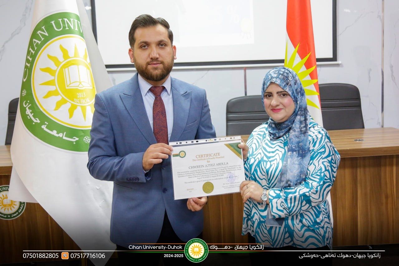 On 2025/08/28 the closing ceremony of the medical course (Round 21 & 22) under the supervision of international medical trainer (Mr. Rayan Sadeeq Ahmad) Decision Maker and Supervisor of Medical Laboratories at Cihan University - Duhok and author of medical books, after 30 hours of teaching and training and conducting evaluation experience Level of students Graduation certificates were distributed to the participants.