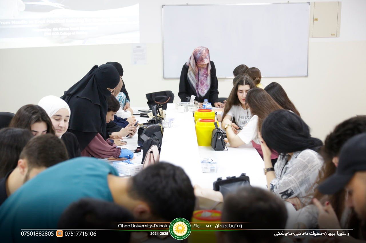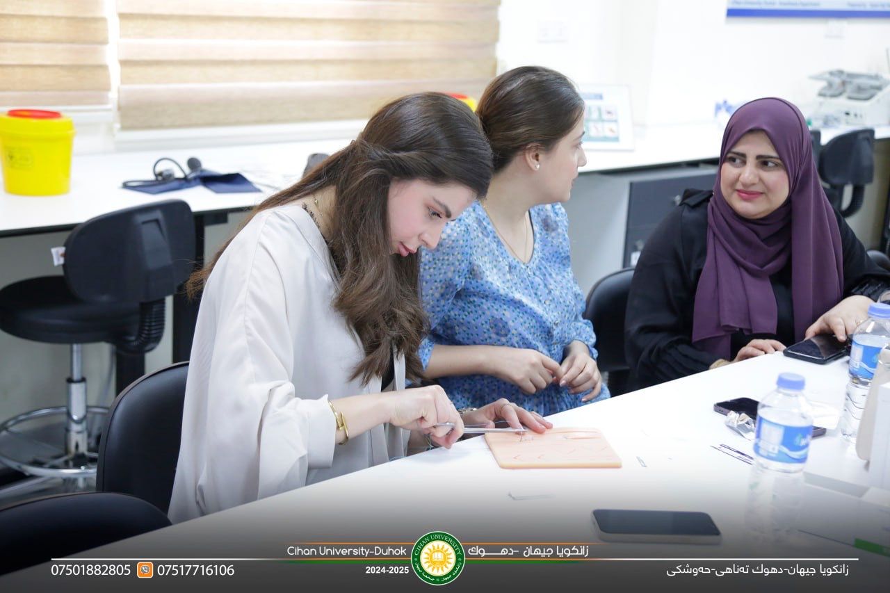 On July 17, 2025, the training course titled “From Needle to Knot: Wound Suturing Techniques” concluded successfully. The course was delivered by Mr. Karzan Ismail Mohammed under the direct supervision of Dr. Layla Mohammed Salih, Dean of the College of Nursing at Cihan University.
