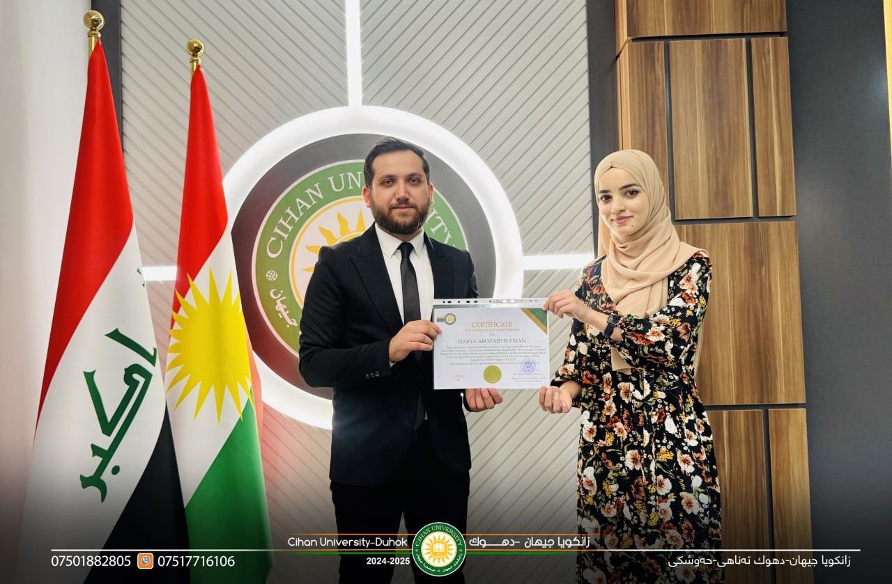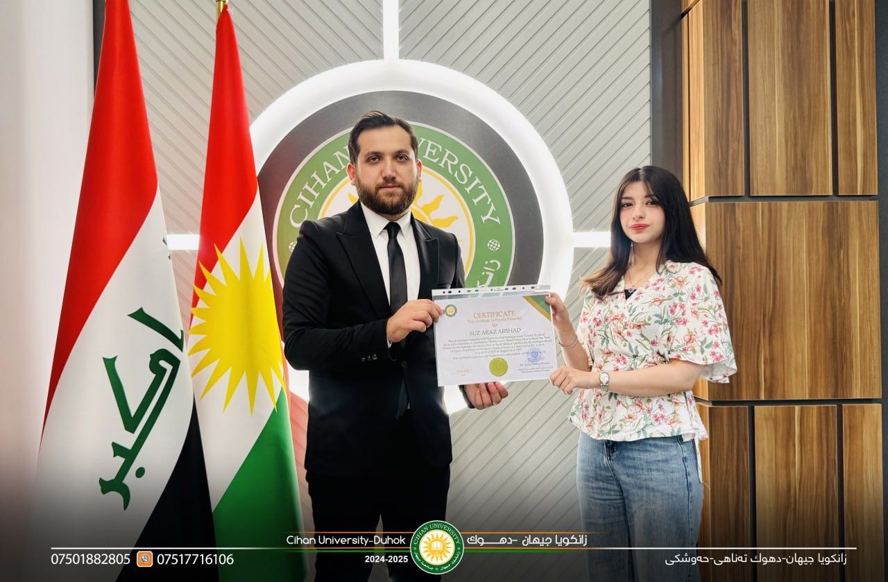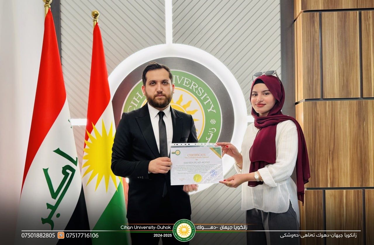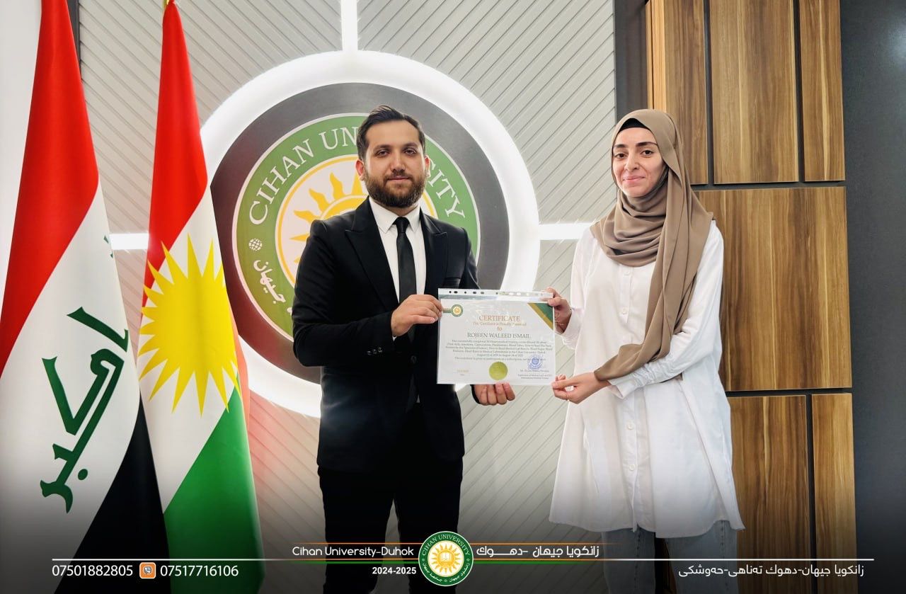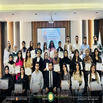 On 2025/08/14 the closing ceremony of the medical course (Round 19) under the supervision of international medical trainer (Mr. Rayan Sadeeq Ahmad) Decision Maker and Supervisor of Medical Laboratories at Cihan University - Duhok, after 30 hours of teaching and training and conducting evaluation experience Level of students Graduation certificates were distributed to the participants.
