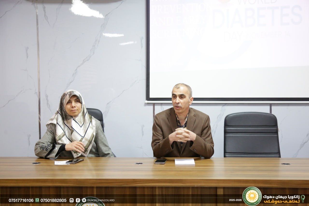 On November 15th, 2025, and in recognition of World Diabetes Day, the College of Nursing organized a panel discussion titled “Diabetes Awareness: Prevention and Early Screening.” The session was presented by Dr. Adris H. Ahmed, and Dr. Layla M. Salih, who focused on enhancing the audience’s understanding of diabetes as a major global health challenge and emphasized the critical importance of early detection and preventive strategies.