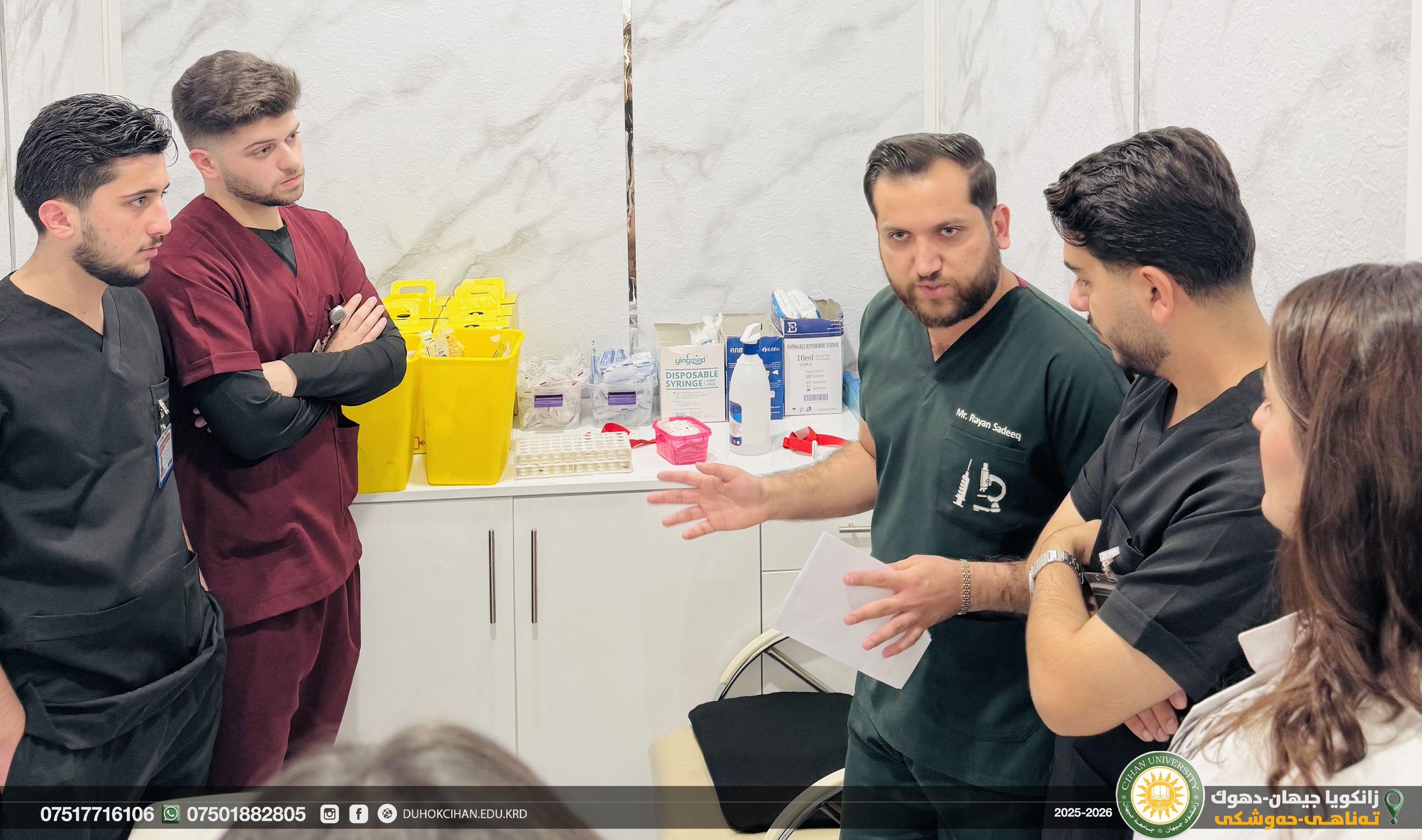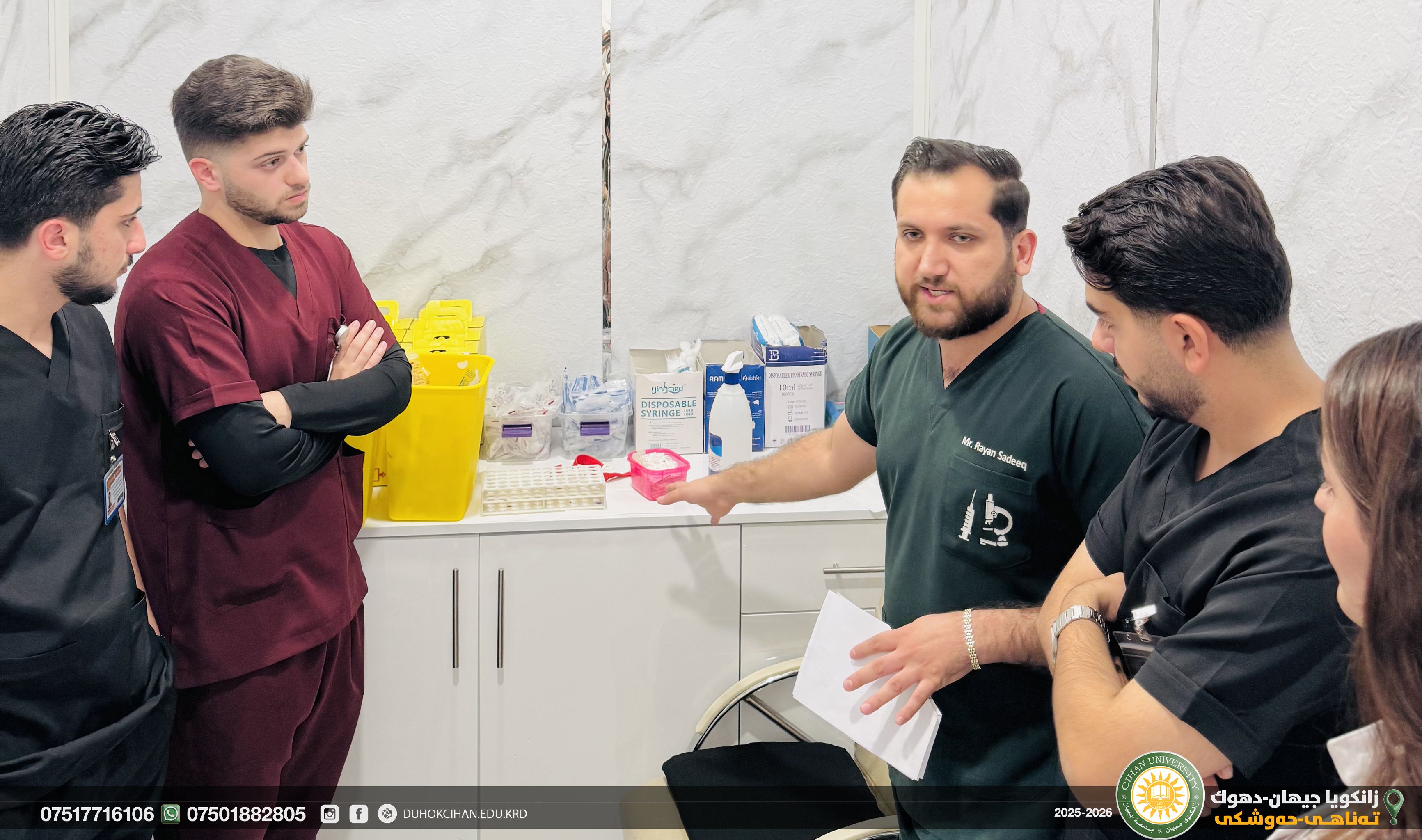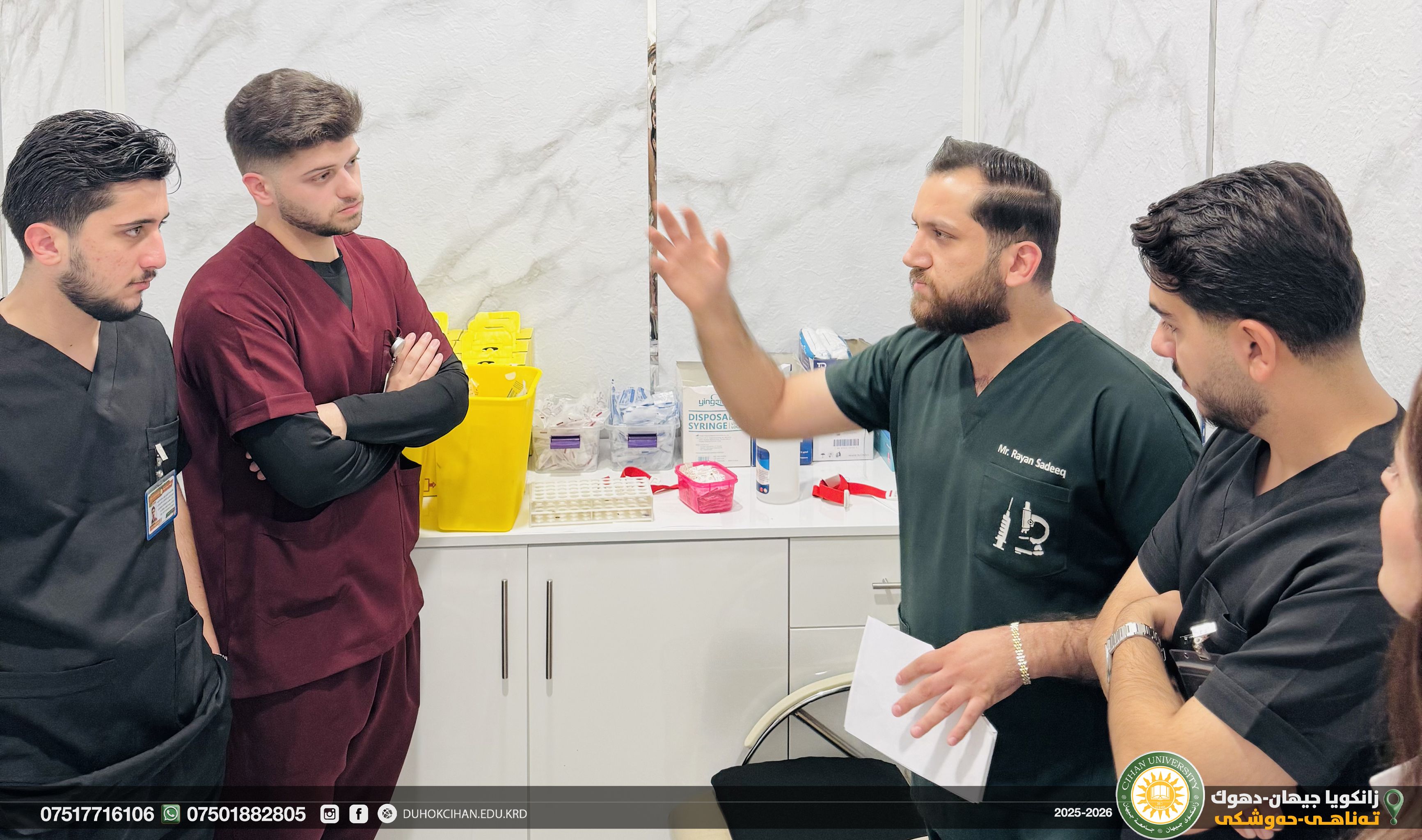 On November 3, 2025, the Department of Medical Laboratory Science (Second Stage), under the supervision of Mr. Rayan Siddiq Ahmad, Director of Medical Laboratories at Cihan University – Duhok, conducted a scientific visit to Jeen Specialized Laboratories. The purpose of the visit was to familiarize students with practical laboratory work and introduce them to modern equipment used in medical laboratories and hospitals.