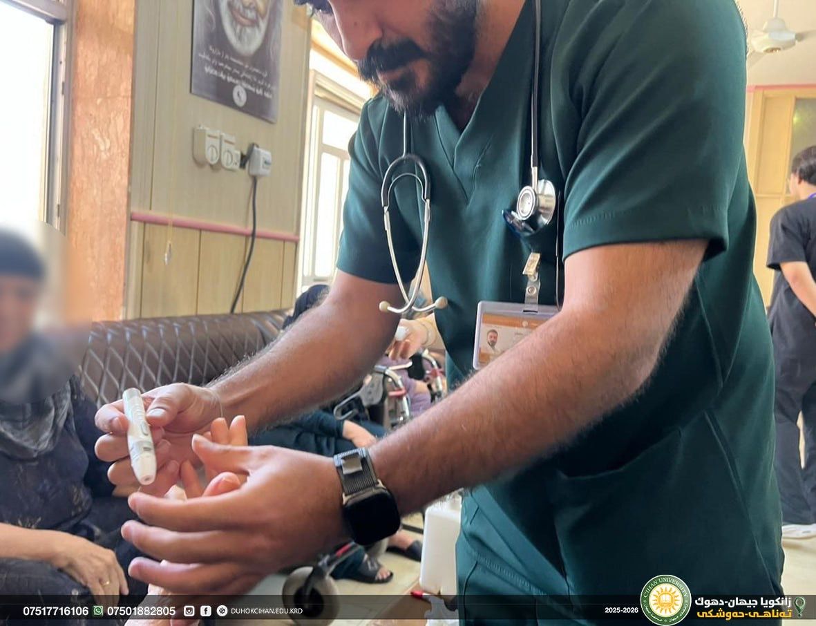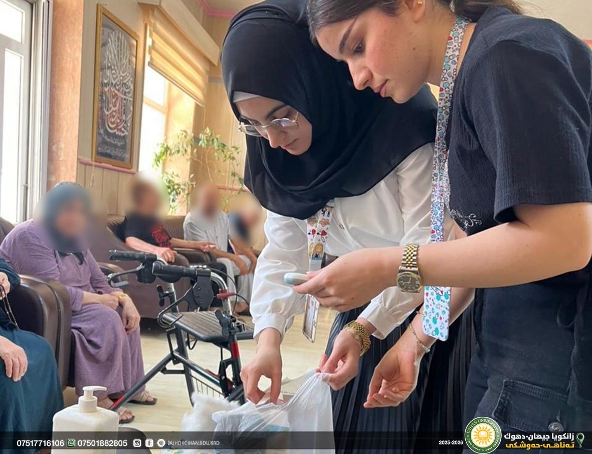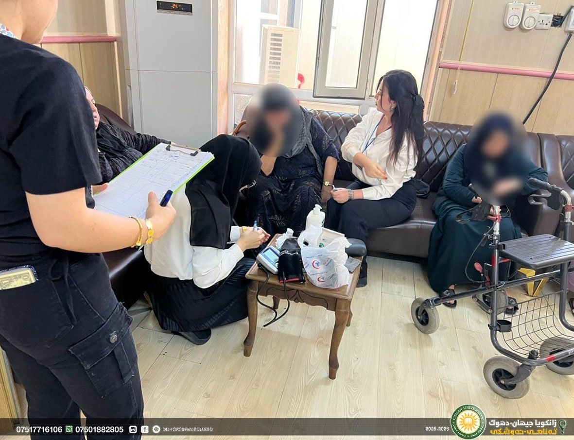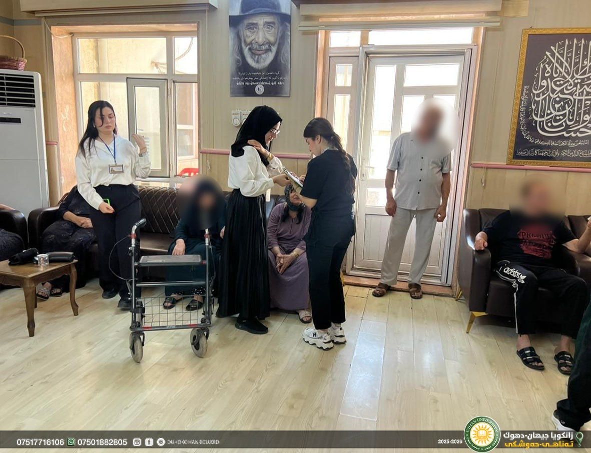 On September 21, 2025, the fourth-year nursing students from the College of Nursing at Cihan University, under the supervision of Mr. Ramadhan H. Teeli, conducted a community engagement visit to a senior home. During this visit, the students assessed the health status of the residents by measuring vital signs and check their blood glucose levels. In addition, they provided psychological support, aiming to promote both physical well-being and emotional health among the elderly residents.