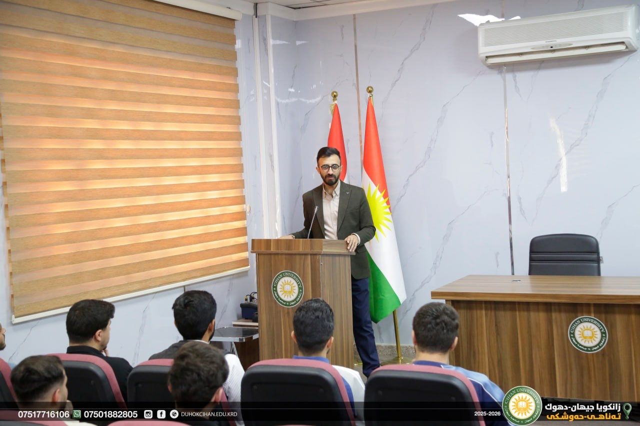On Monday, November 24, the Cihan-Duhok Academy, in cooperation with the Sports Unit of Cihan University-Duhok and the Bahdinan Institute, organized a seminar for "Mr. Agar Mohsin Ali", a first-degree judge in Kurdistan and Iraq, under the title The latest corrections of the football rules."In this seminar, the newest changes in judicial and traffic laws were discussed. The topics were presented clearly, vividly, and practically to the participants, along with a PowerPoint presentation.