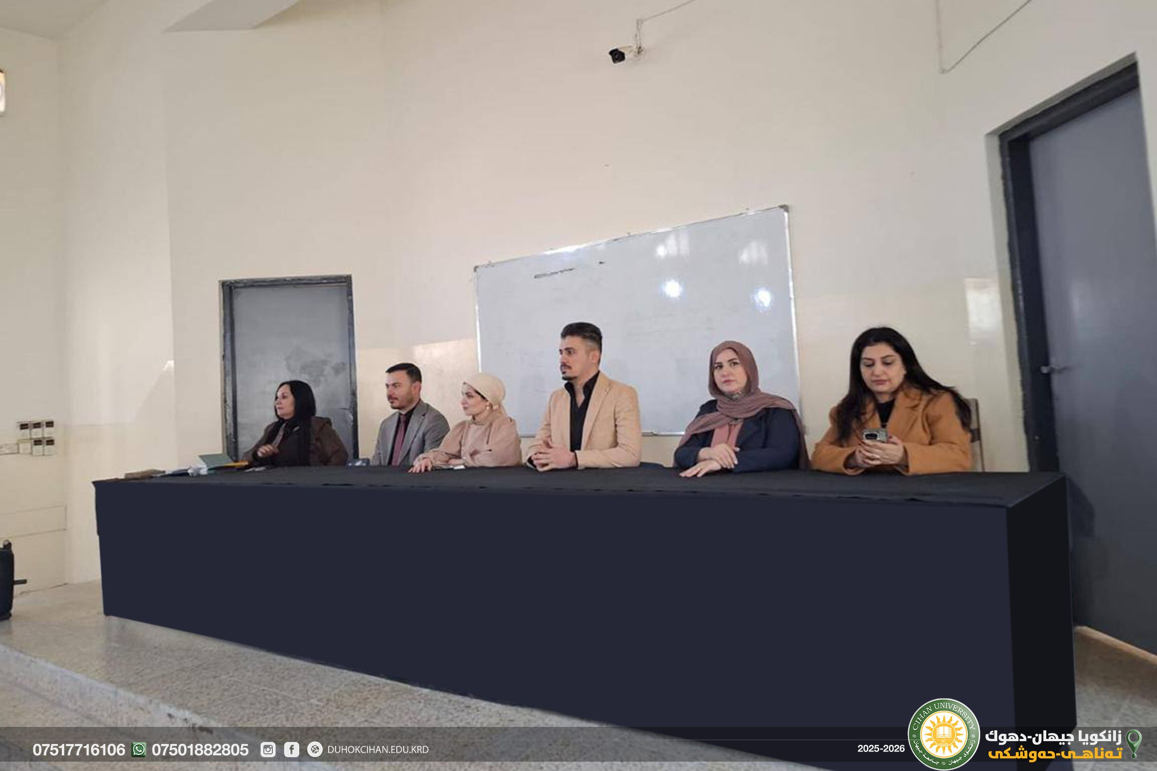 Under the patronage and supervision of the President of Cihan University – Duhok,On Thursday, December 4, 2025, under the scientific initiative "Zakat of Science" and the supervision of the committee formed by the president of Cihan University-Duhok, and for the purpose of "launching a campaign to raise awareness about violence against women and the family," as part of the 16 Days of Activism Against Gender-Based Violence, observed from 25 November 2025 to 10 December 2025.a seminar was presented by Ms. Dozdar Mahdi, Mr. Khalid Ibrahim and Mr. Ammar Jasim.