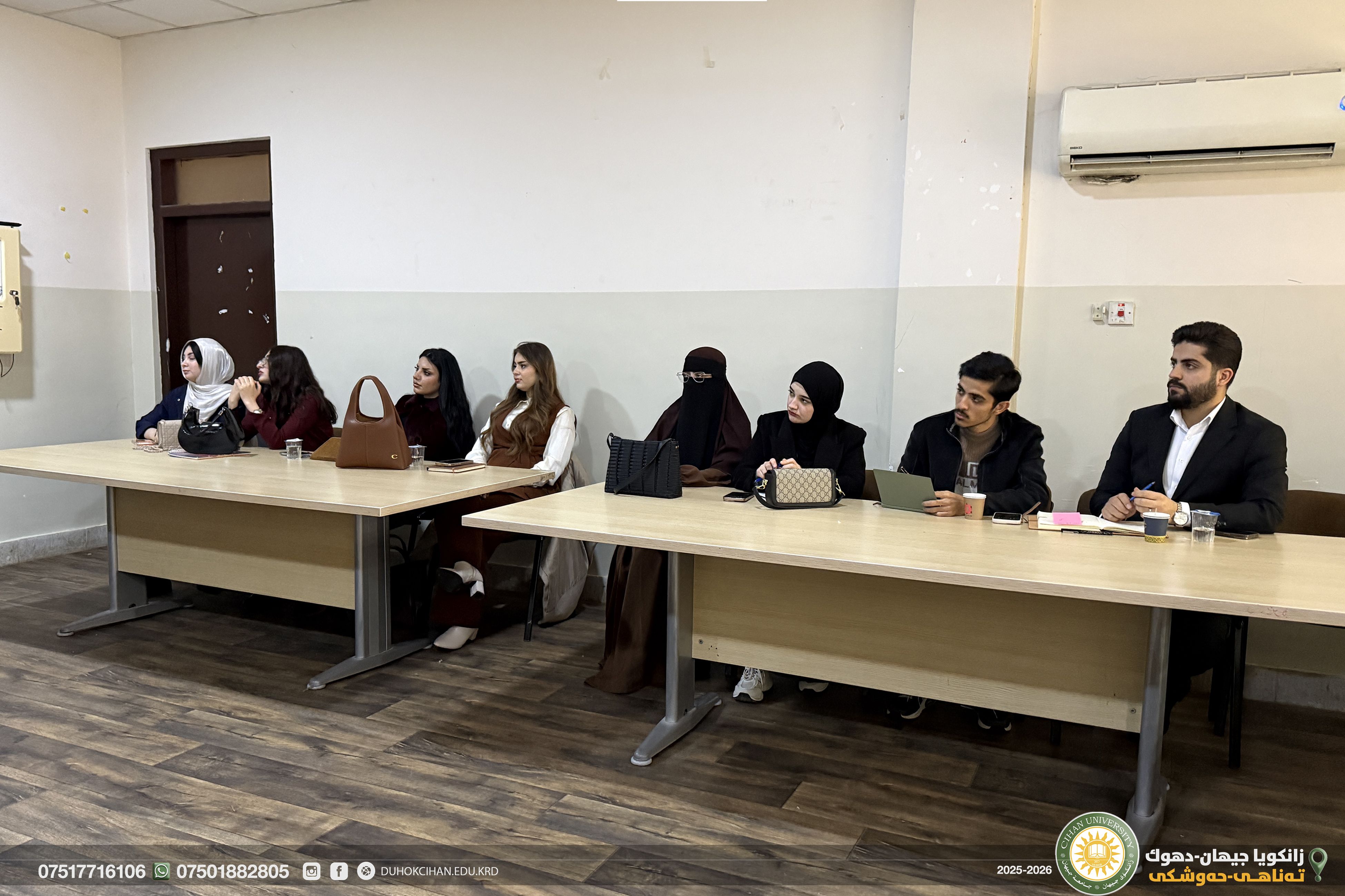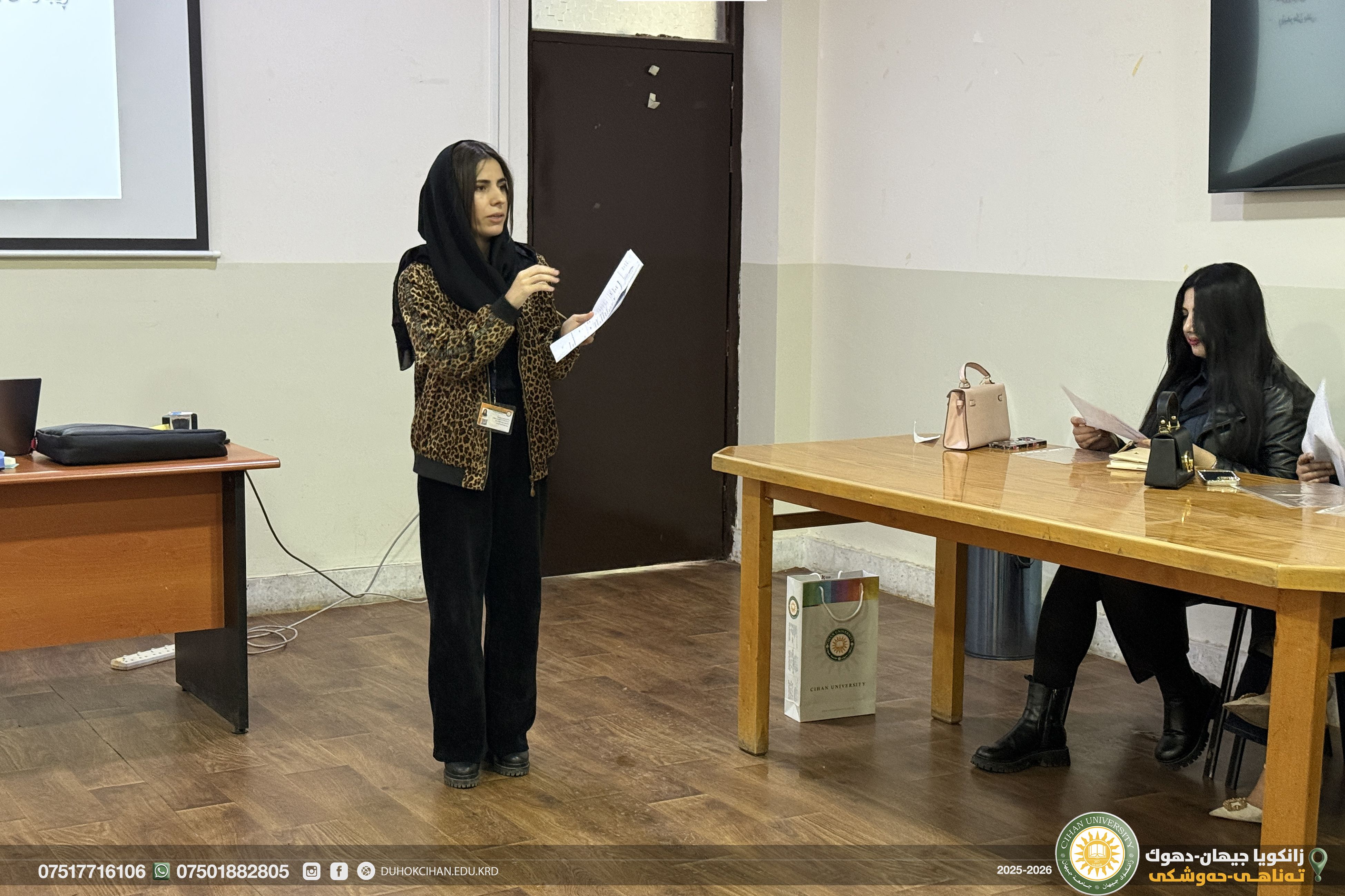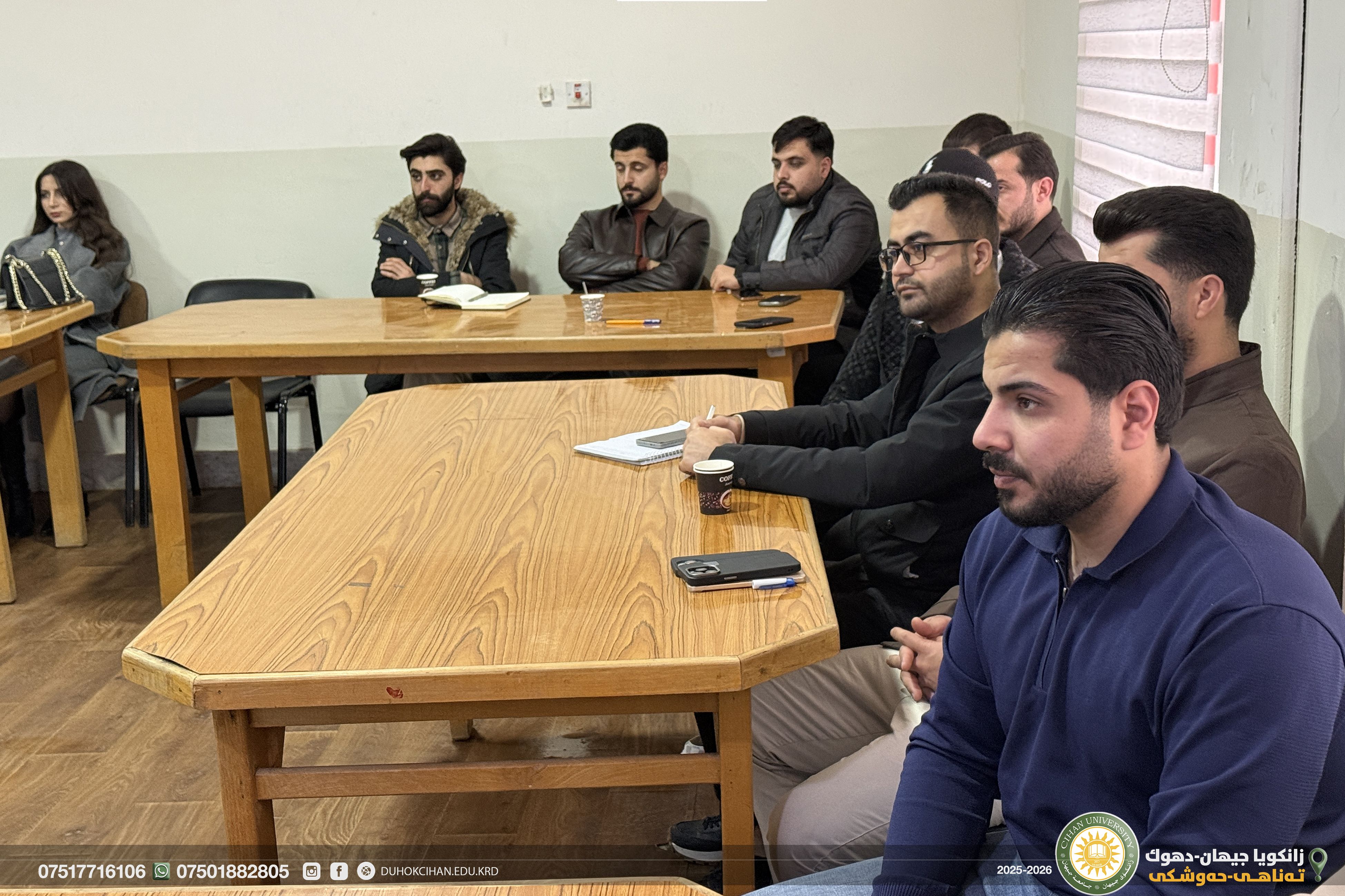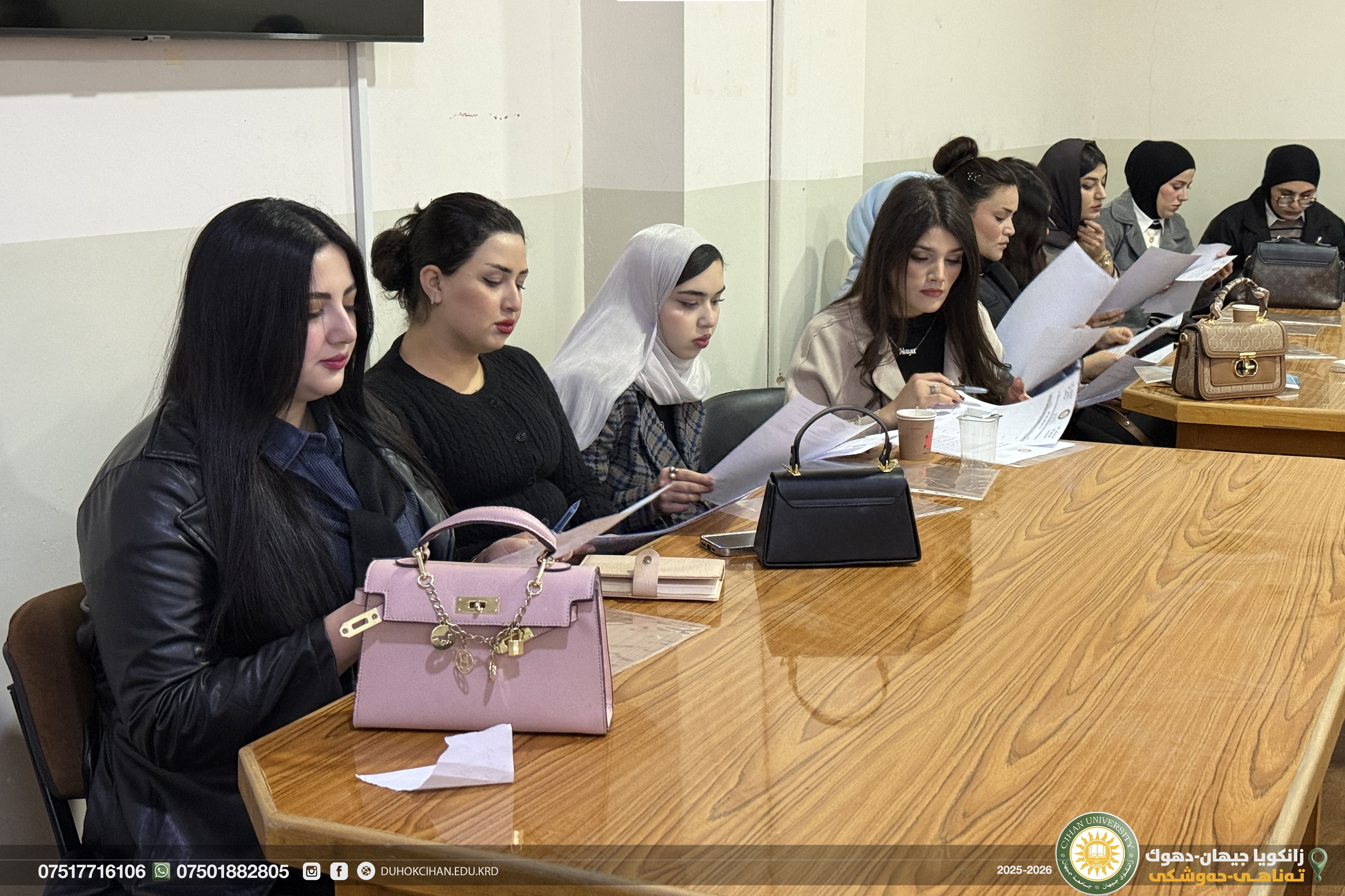 ضمن برامج مؤسسة زكاة العلم في جامعة جيهان-دهوك، أقيمت يوم الأحد الموافق 8/2/2026 ورشة عمل تخصصية لطلبة المرحلة الرابعة في قسمي (اللغة الإنجليزية وعلم النفس)، وذلك بالتعاون مع مديرية الإعداد والتدريب في دهوك.