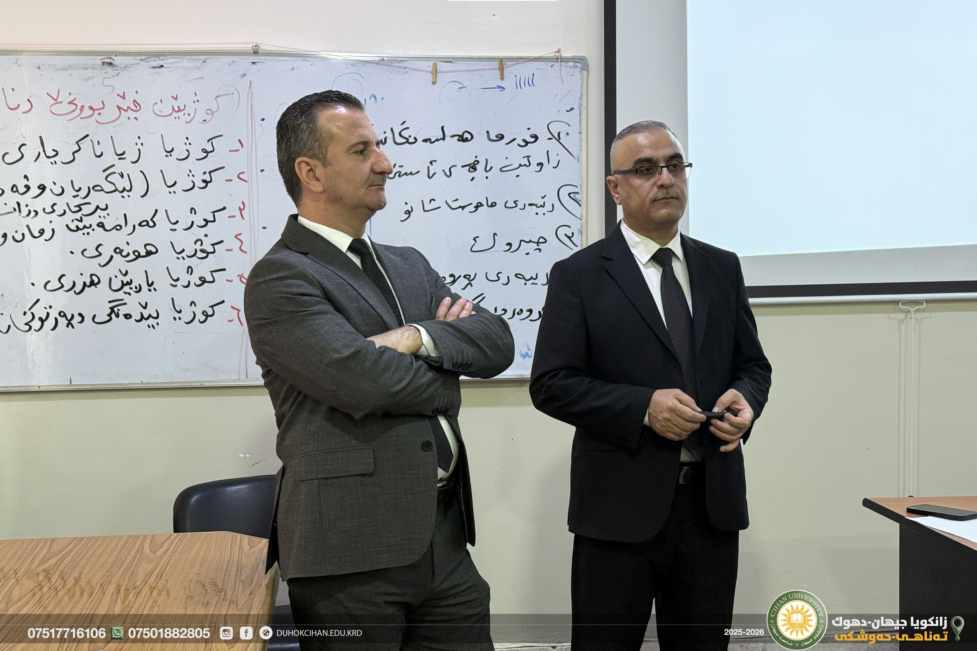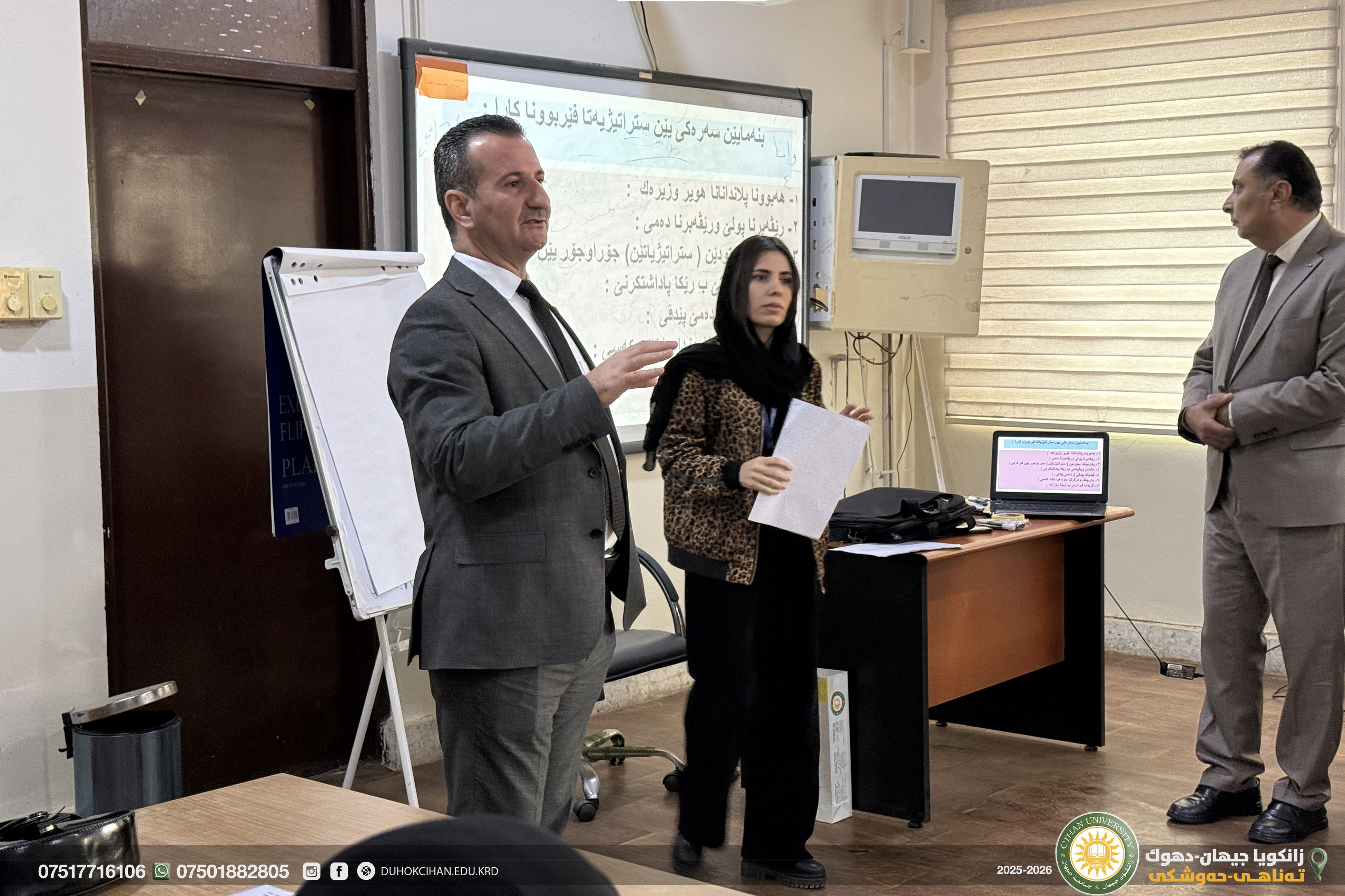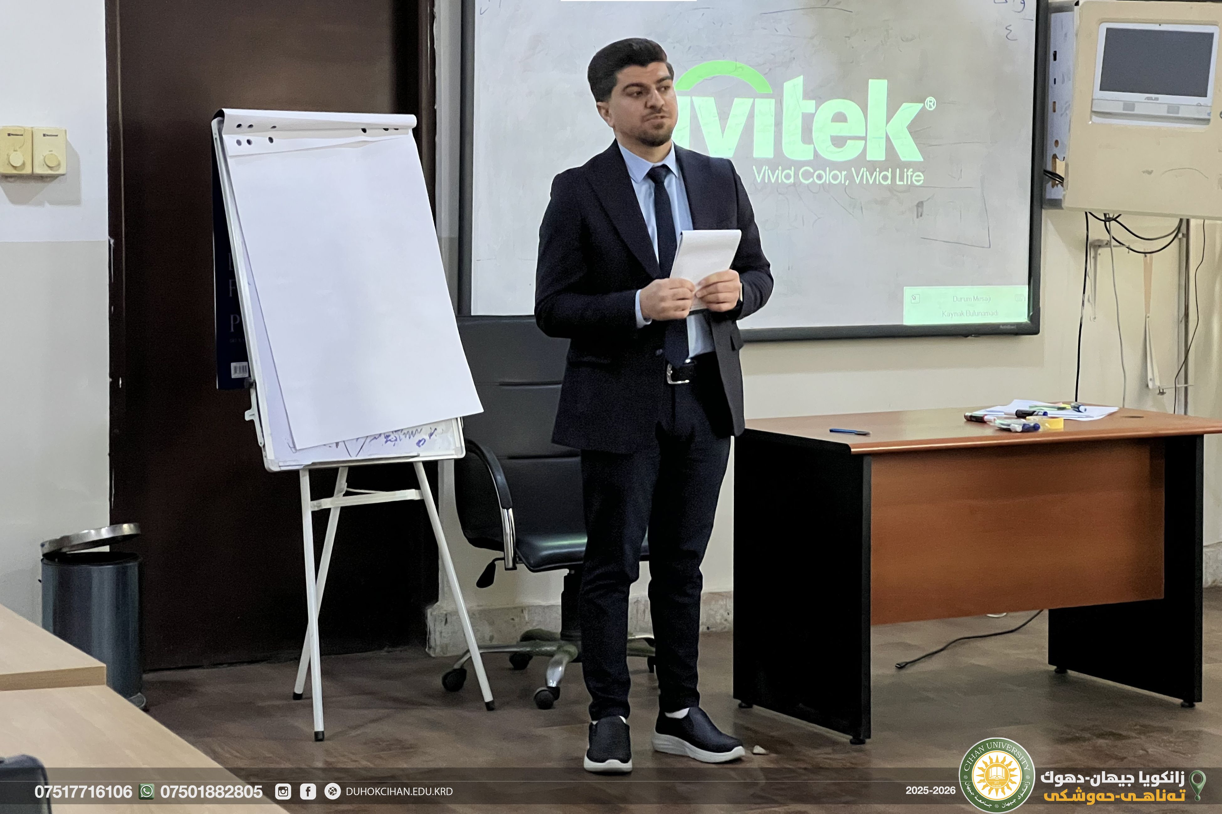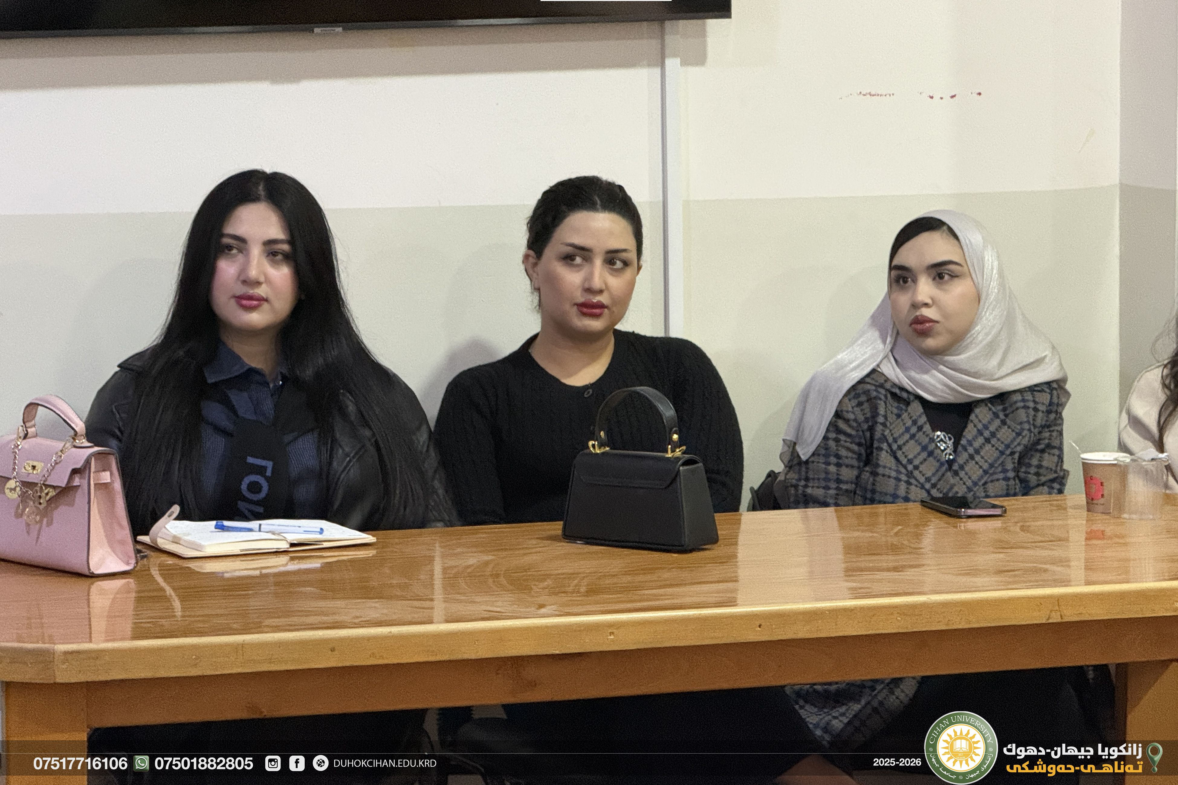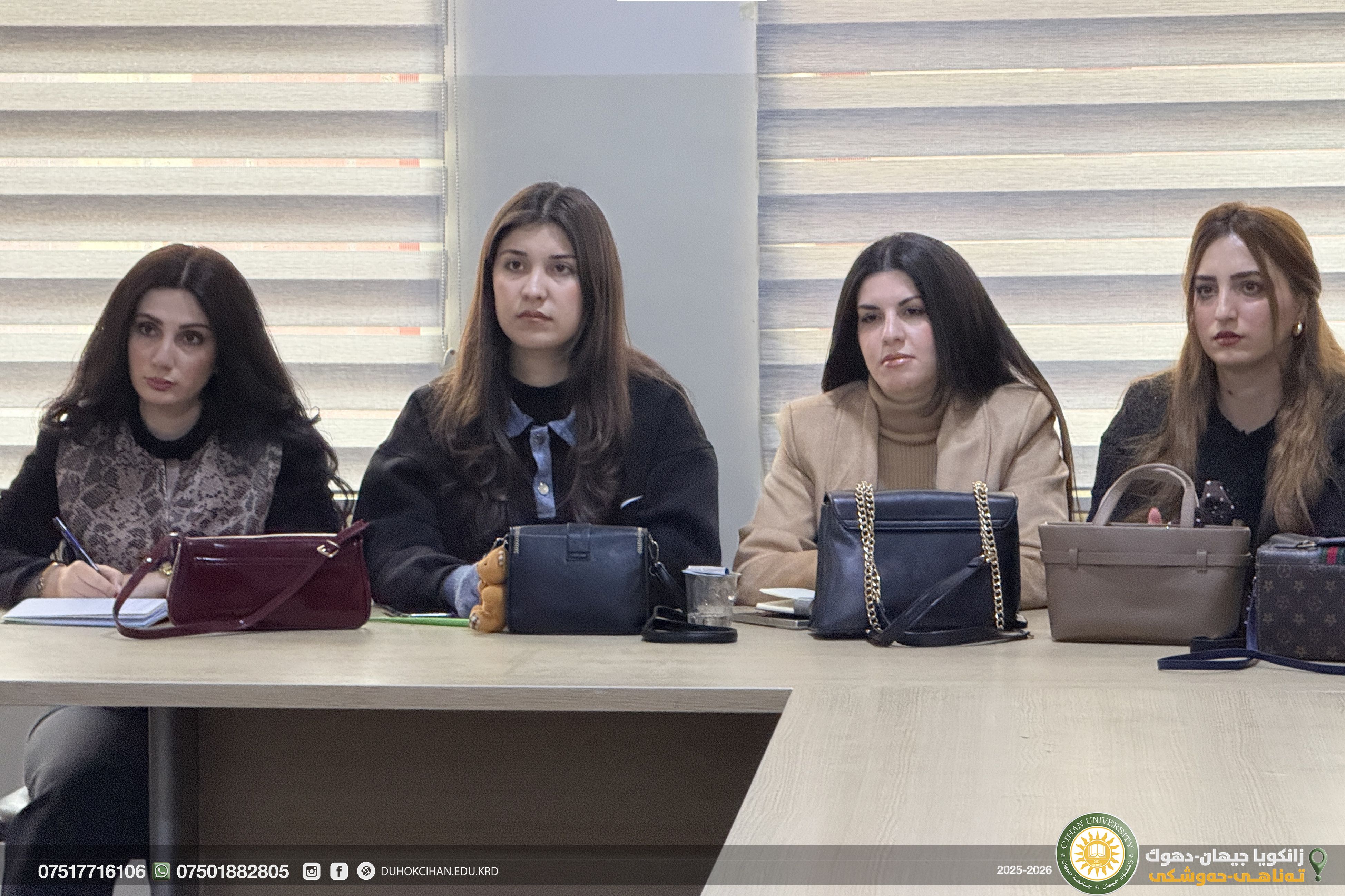 ضمن برامج مؤسسة زكاة العلم في جامعة جيهان-دهوك، أقيمت يوم الأحد الموافق 8/2/2026 ورشة عمل تخصصية لطلبة المرحلة الرابعة في قسمي (اللغة الإنجليزية وعلم النفس)، وذلك بالتعاون مع مديرية الإعداد والتدريب في دهوك.