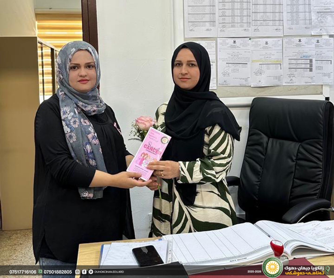 كما يتقدم قسم تكنولوجيا التصوير الإشعاعي بخالص الشكر والتقدير إلى مديرية صحة محافظة دهوك، ولا سيما إدارة مستشفى النسائية والتوليد، على تعاونهم المثمر وحسن استقبالهم، ودعمهم المستمر لمبادرات الجامعة الهادفة إلى خدمة المجتمع وتعزيز الوعي الصحي بين أفراده.