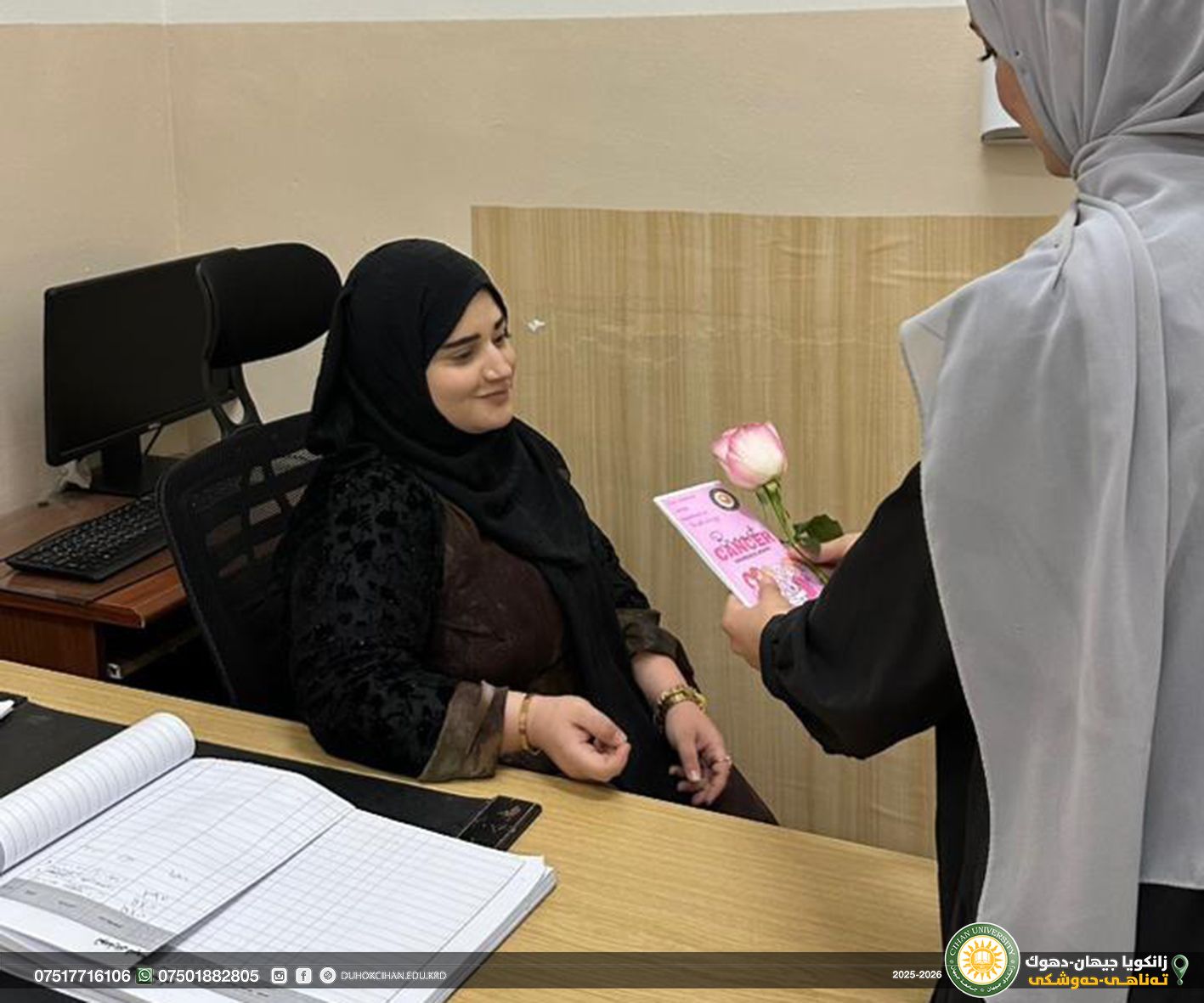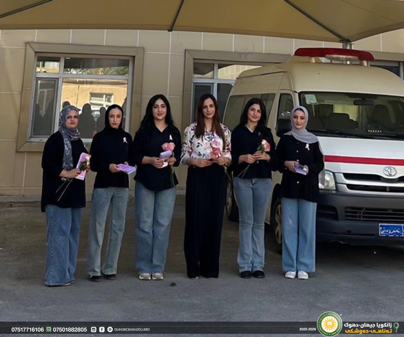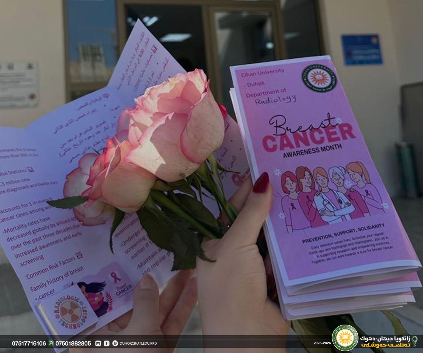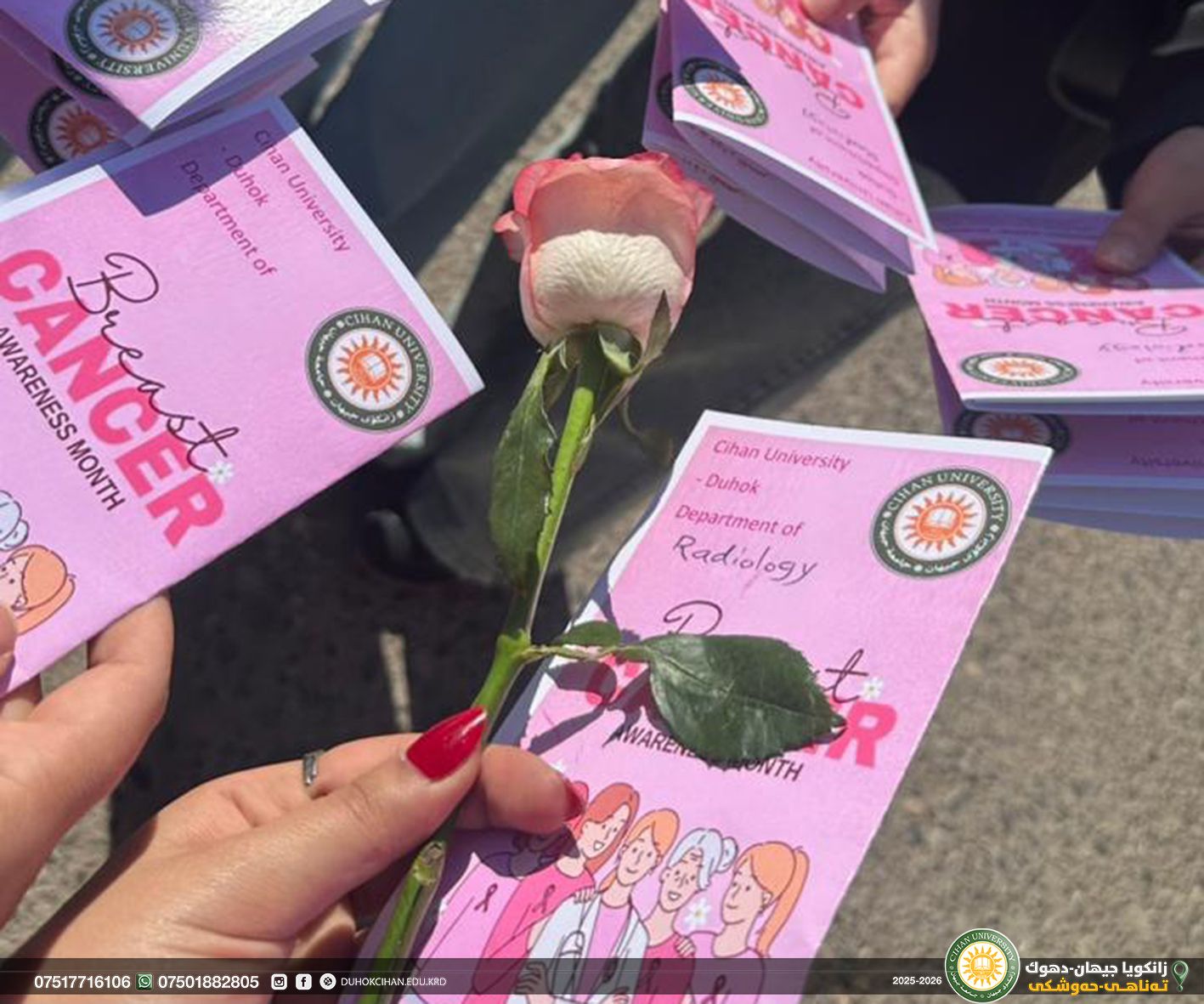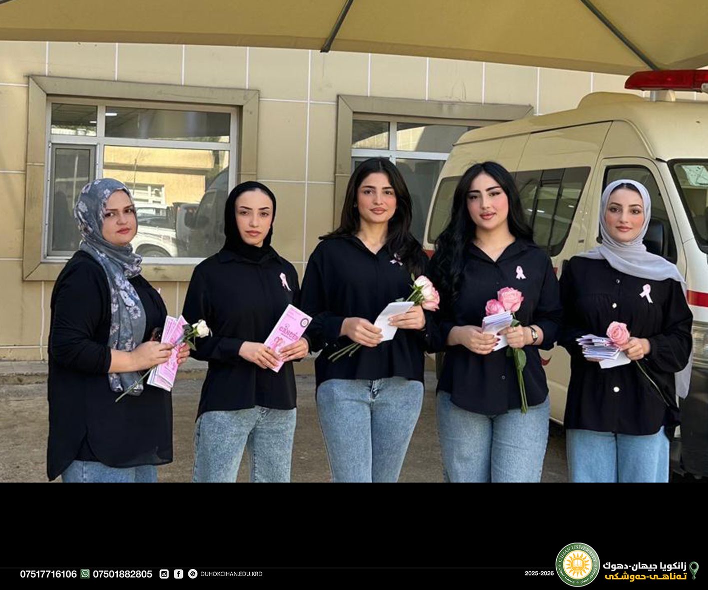 في إطار النشاطات العلمية والتوعوية المستمرة لقسم تكنلوجيا التصوير الاشعاعي، نظم طلبة القسم زيارة ميدانية إلى مستشفى النسائية والتوليد في دهوك، وذلك ضمن حملة التوعية لمكافحة سرطان الثدي.