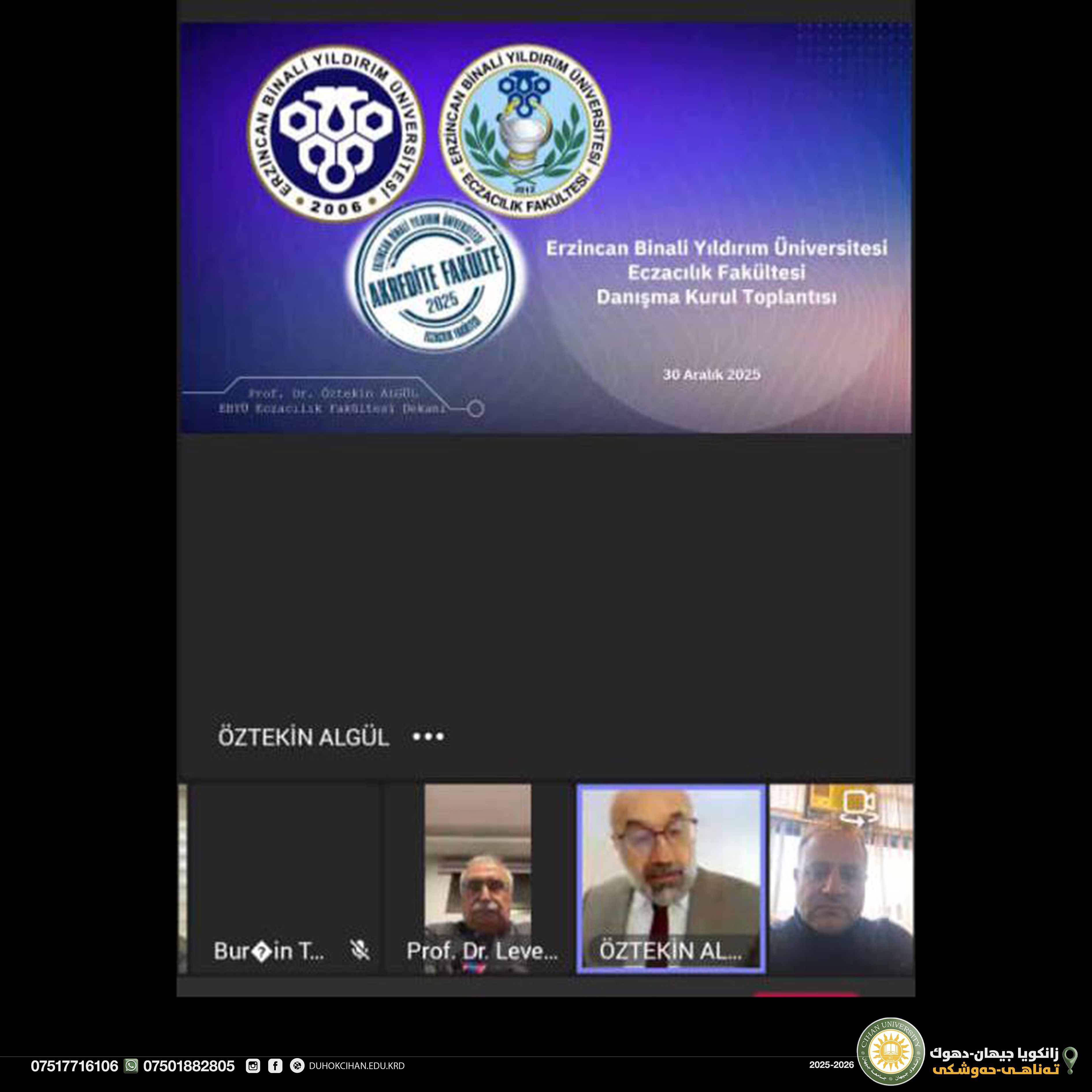 On 30/12/2025, the Advisory Board of the Faculty of Pharmacy at Erzincan University, Turkey, convened with the participation of Dr. Ronak Mohammed Sadiq, Dean of the Faculty of Pharmacy at our university, in his capacity as a member of the board.