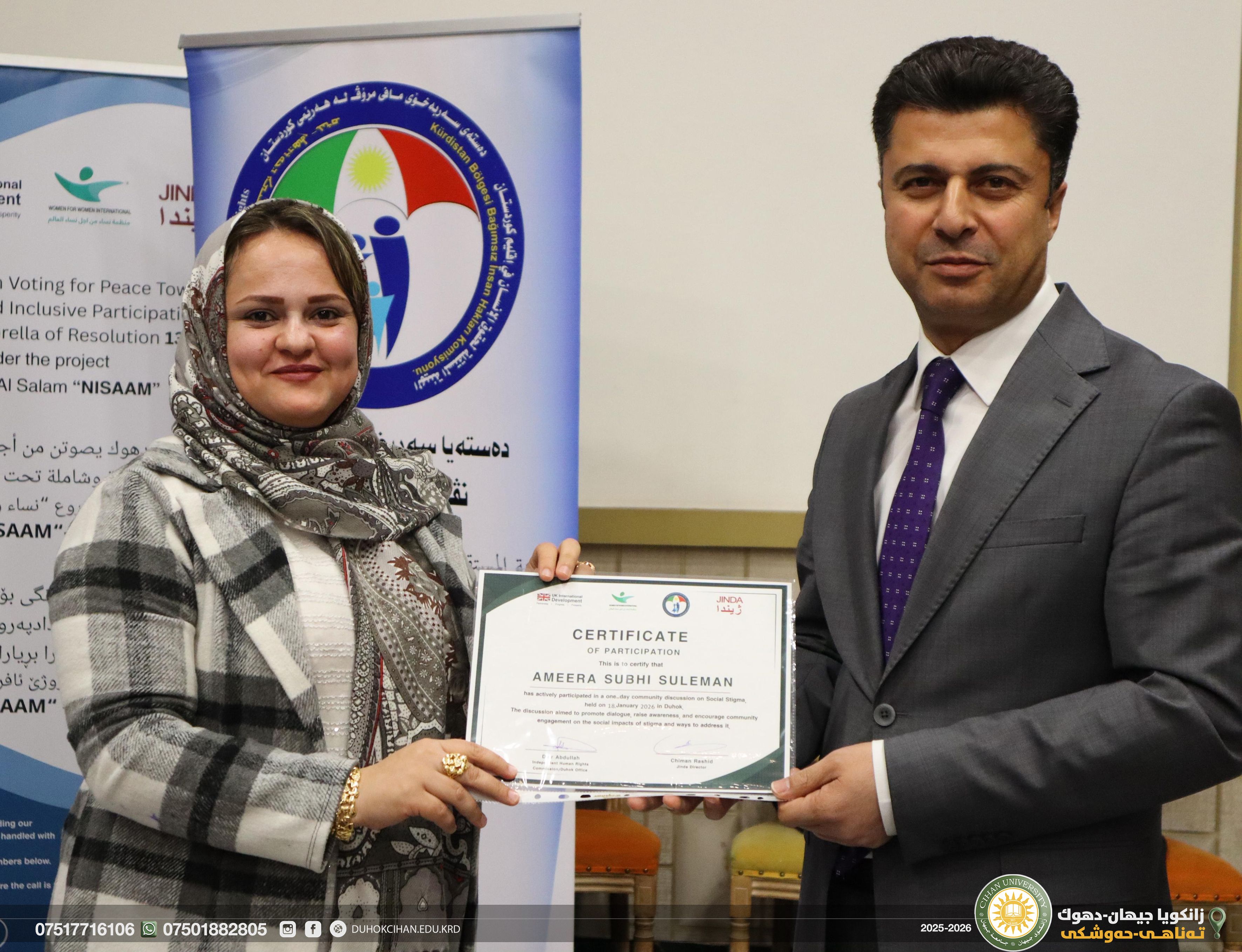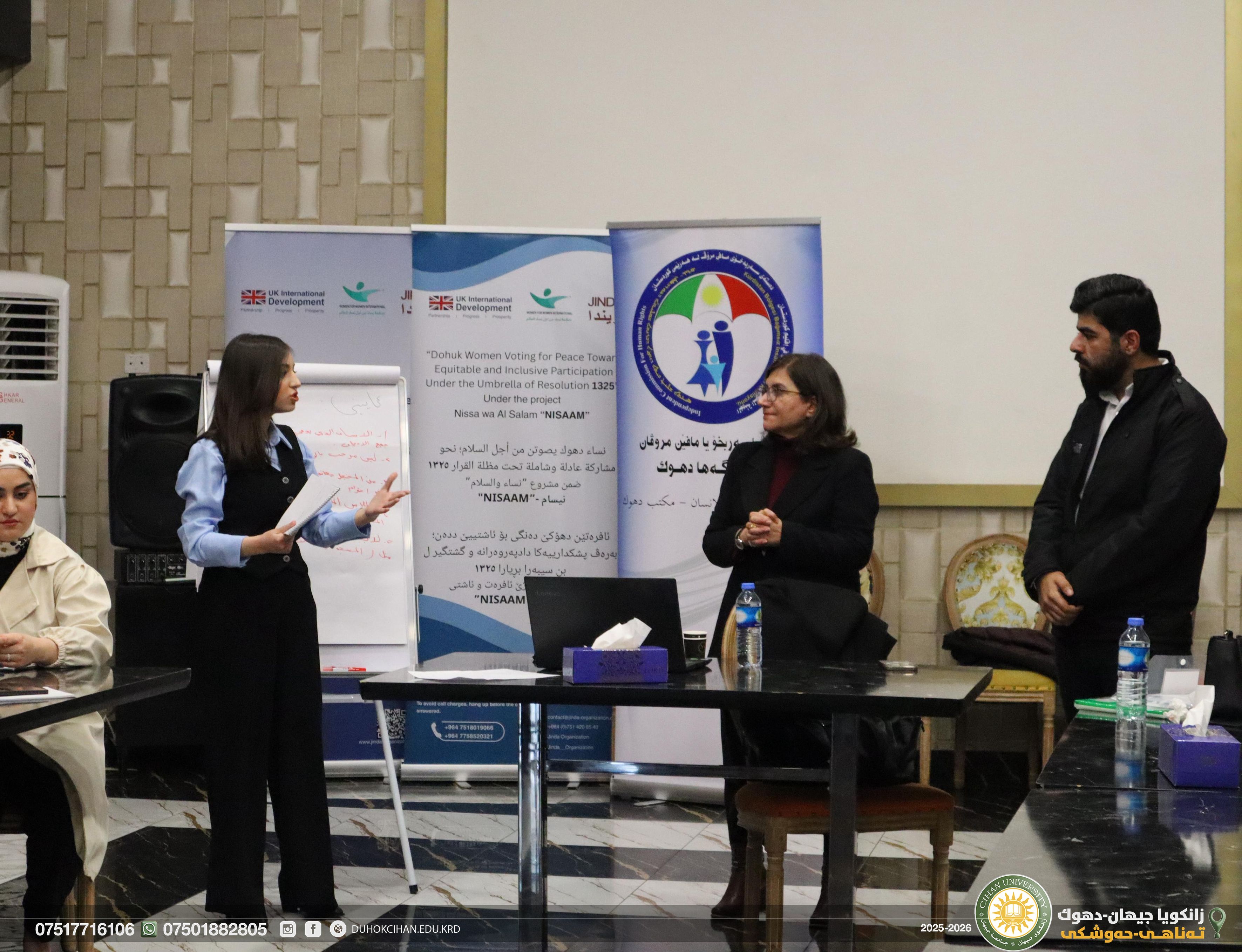 ل روژا ئێکشەمبی رێکەفتی (18/1/2026)، هژمارەکا قوتابیێن زانکویا جیهان-دهۆک ب دەستپێشخەریا راگرێ کولیژا یاسا بەرێز (د.رێبەر حسێن) و ب سەرپەرشتیا بەرپرسێ ئەکادیمیا جیهان-دهۆک "شیان مهدی" بەشداربوون د ورکشۆپەکا گرنگدا کو ژلایێ ڕێکخراوا "ژیندا" و دەستەیا سەربەخۆ یا مافێن مرۆڤان-نڤیسینگەها دهۆک و دیوانا ژنێن دهۆک بۆ ئاشتی و بەژداریێ و ب هەماهەنگی دگەل زانکویا جیهان-دهۆک هاتبوو ڕێکخستن.
