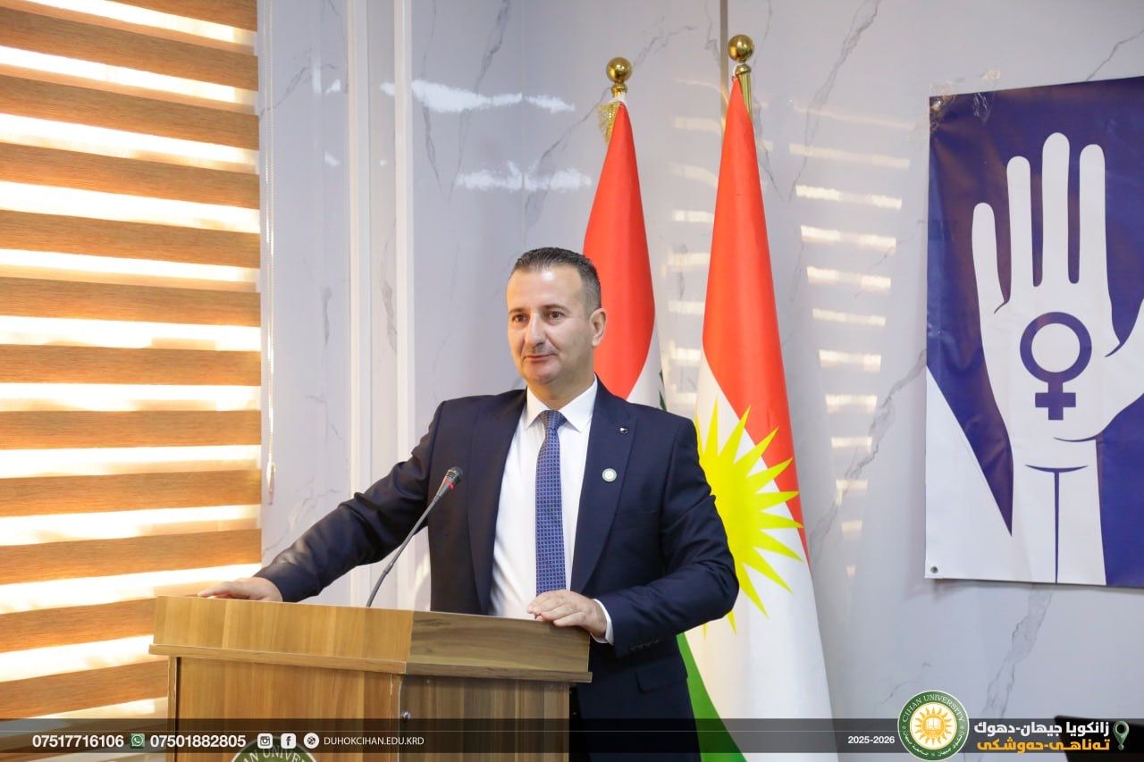 ئەڤرۆ رێكەفتی (2/12/2025) ل دویف راسپاردێن بەرێز (پ.د.زێرڤان عبدالمحسن أسعد) سەرۆكێ زانكویێ، سەبارەت گرنگی دان ب هەوا 16 رۆژی یا بەرهنگاربوونا تۆند و تیژیا دژی خێزان و ئافرەتێ، بەشێ پەروەردا گشتی ب هەماهەنگی دگەل سەنتەرێ ڤەکۆلینان و ناڤەندا ئافرەتێن سێمێلێ پانێلەکێ زانستی ئەنجامدا ل دۆر: