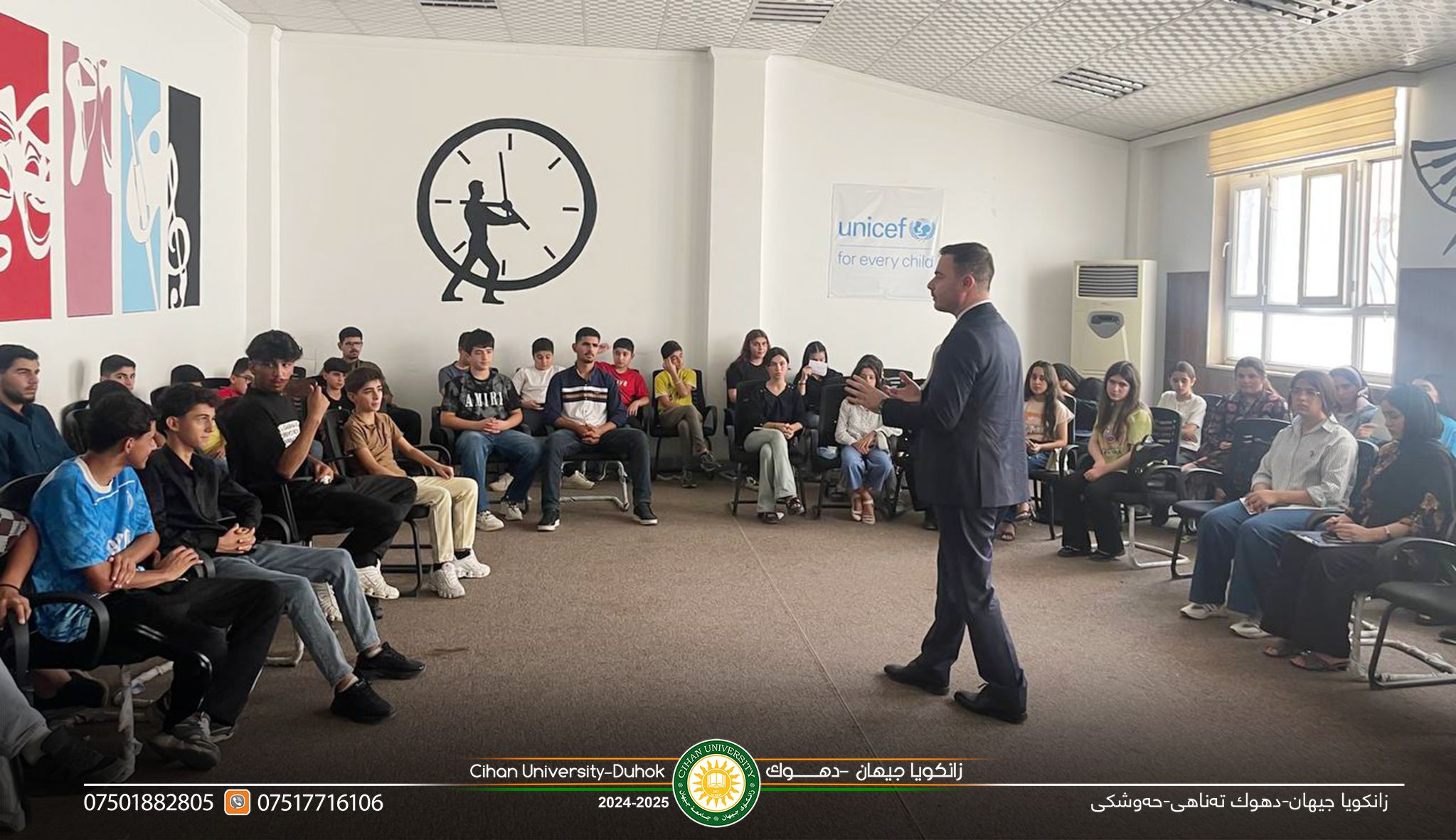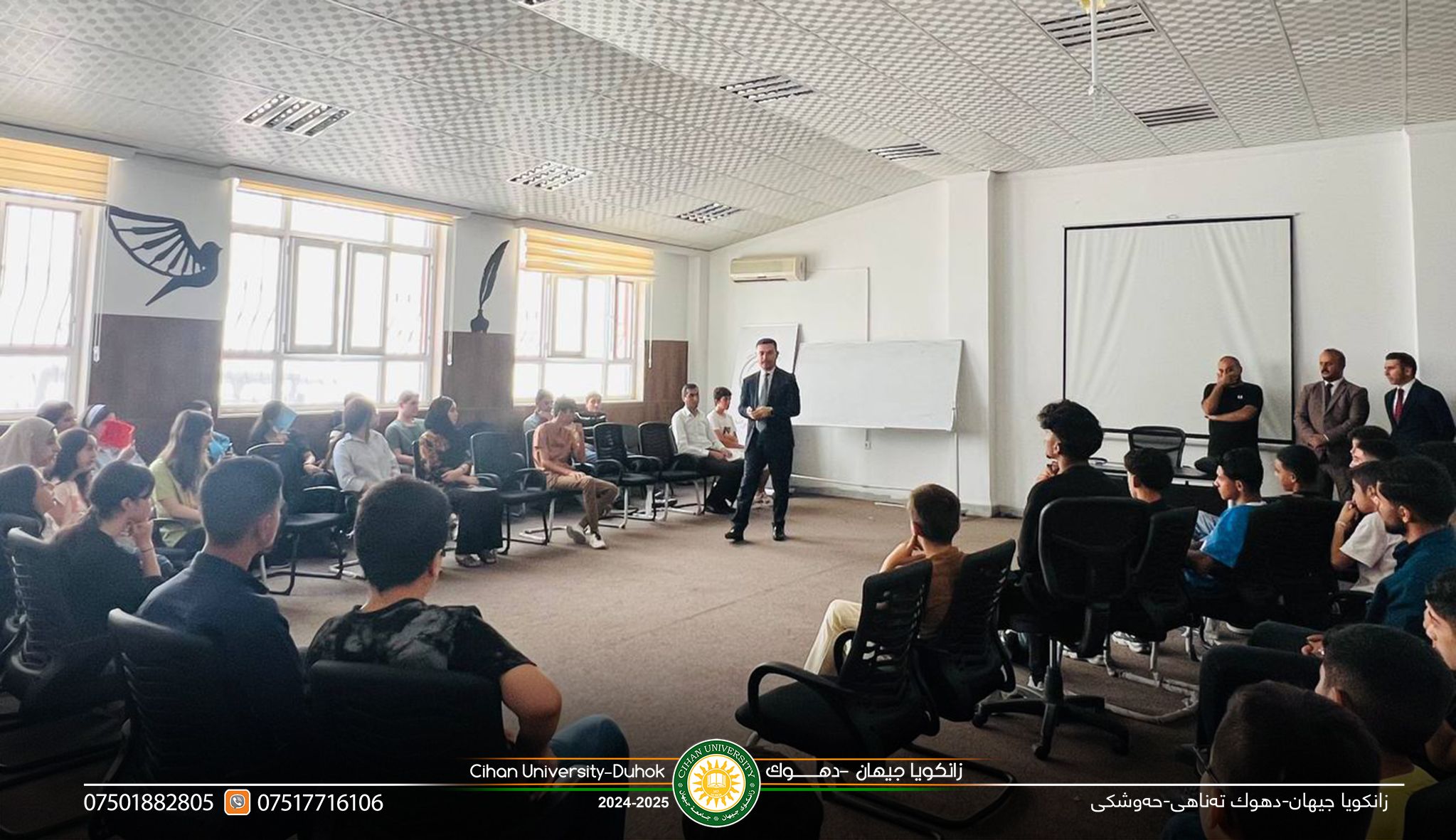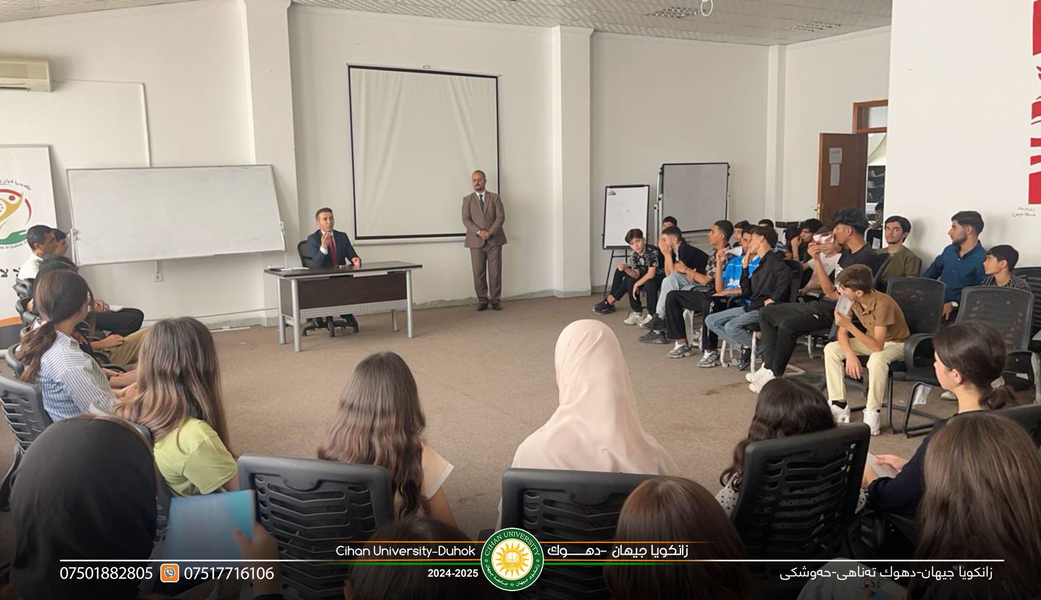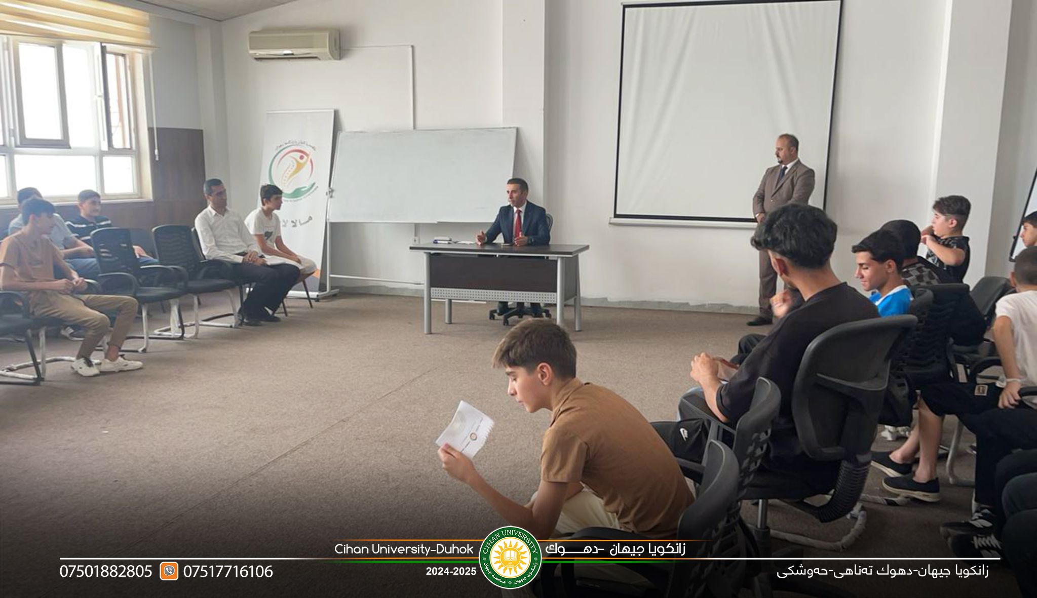دهزگایێ زهكاتا زانستى دوو سمینارێن هۆشیارىێ پێشكێشكرن د چارچووڤێ پرۆژێ بهێزكرنا شیانێن گهنجان ل دویف راسپاردێن بهرێز (پ.د.زیرڤان عبدالمحسن أسعد) سهرۆكێ زانكویێ، و د چارچووڤێ ههولێن بهردهوام یێن پێشڤهبرنا بهرنامێ هۆشیارى و پێگههاندن و رهوشهنبیریا گشتى بۆ تهخ و چینێن جودا یێن جڤاكى بتایبهت تهخا گهنجان، ل رێكهفتى (30/7/2025) دوو سمینار هاتنه پێشكێشكرن ژلایێ دهزگایێ زهكاتا زانستى ب ههماههنگى دگهل رێڤهبهریا لاوان ل پارێزگهها دهۆكێ بۆ پشكدارێن خۆلا رێك و ئامرازێن فێربوونا زمانێ ئنگلیزى ژلایێ بهرێزان: 1ـ د.دژوار احمد ژ بهشێ یاسا، ل دۆر رهوشهنبیریا یاسایى و یاسا خراب بكارئینانا ئامیرێن پهیوهندیكرنێ. 2ـ م.خالد ابراهیم ژ بهشێ زانستێن كۆمپیوتهرى/ ل دۆر شاشیێن دهێنه ئهنجامدان د ئالاڤێن پهیوهندیكرنێ دا بتایبهت تۆرێن جڤاكى ژلایێ تهكنۆلۆجیا.