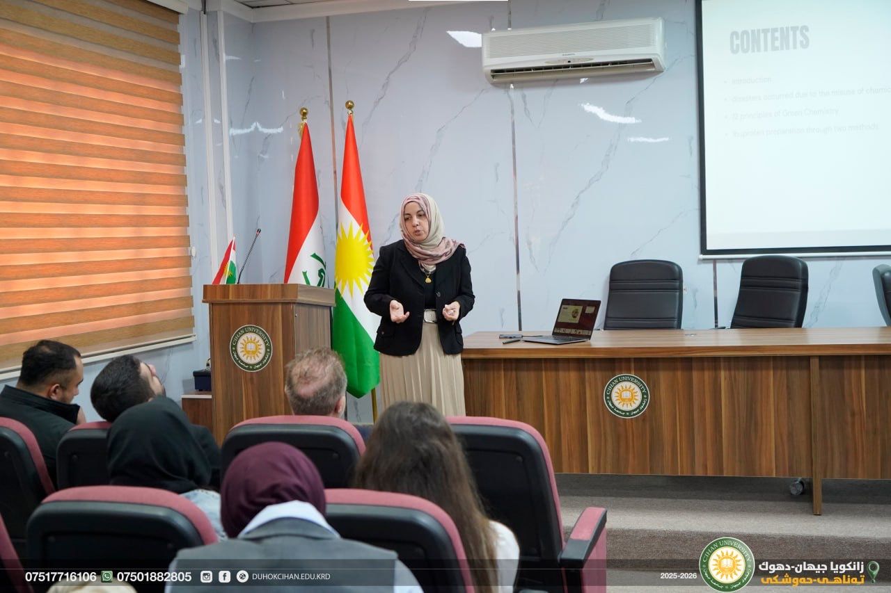 The College of Pharmacy organized a workshop entitled “Green Chemistry and Ibuprofen Preparation.” The workshop addressed the latest scientific trends in applying Green Chemistry principles within pharmaceutical industries, with a particular focus on advanced, safer, and more sustainable methods for the synthesis of Ibuprofen.