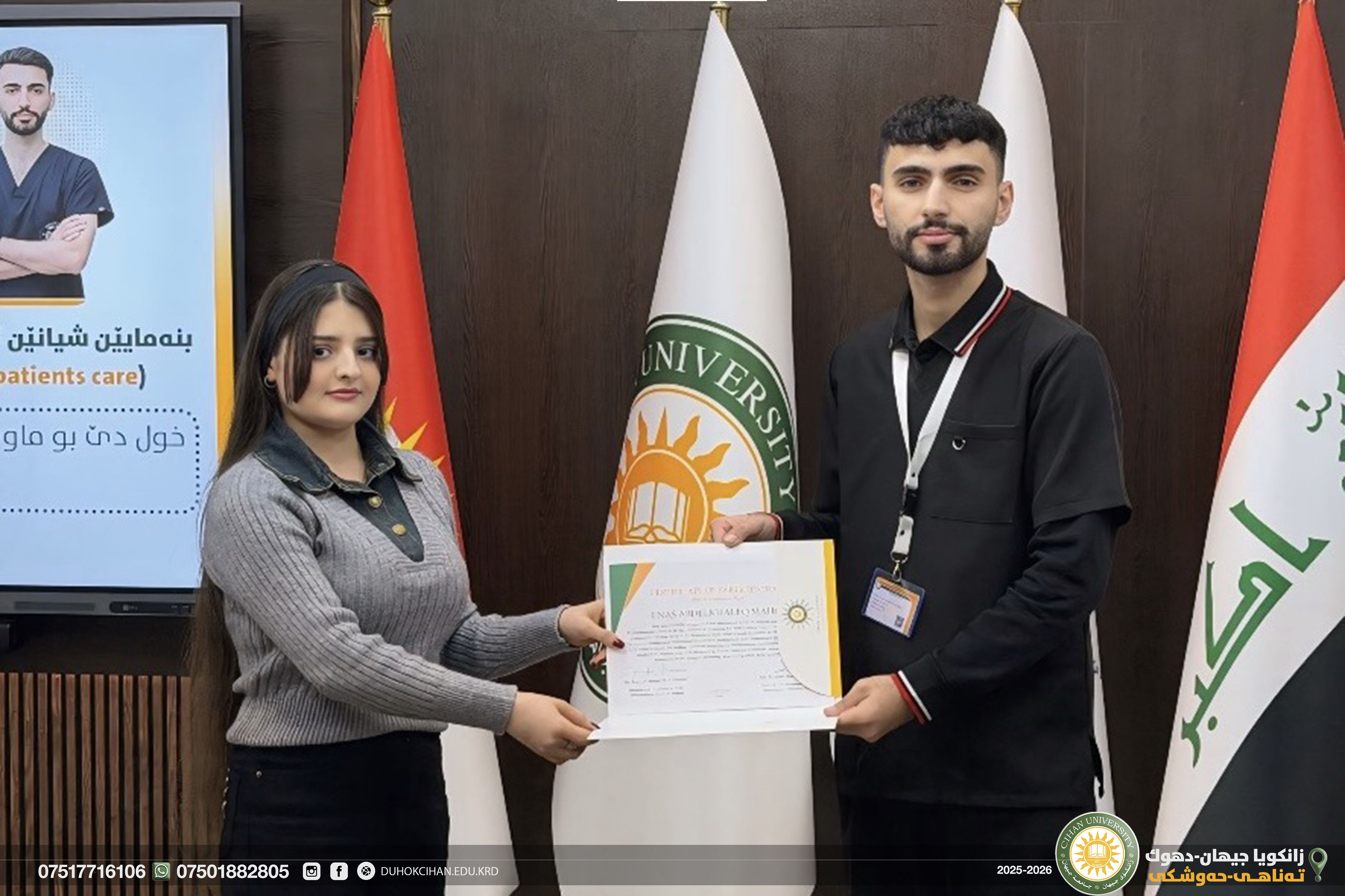 ئەڤرۆ مە سنوورێن زانستی بەزاندن! ل زانکۆیا جیهان-دهۆک، مە ب شانازی ڤە دوماهی ب خولا "پزیشکی یا پێشکەفتی" ئینا. ئەڤە نەک بتنێ خولەک بوو، بەلکو مەیدانەکا نوی بوو بۆ ئاڤاکرنا "پێشەنگێن پزیشکی". ل ژێر درۆشمێ (بەرەف لوتکەیا شارەزاییێ)، قوتابیێن مە نیشان دا کو چو لوتکە نینن ئەگەر ئیرادە هەبیت.